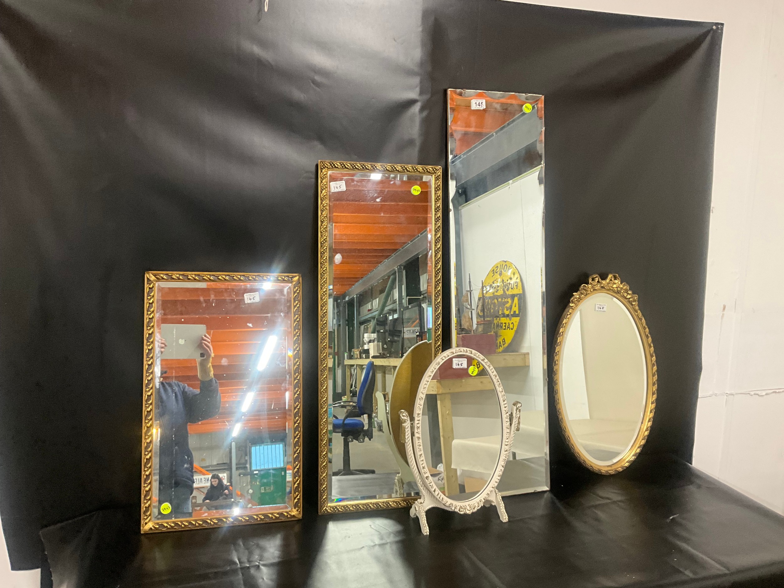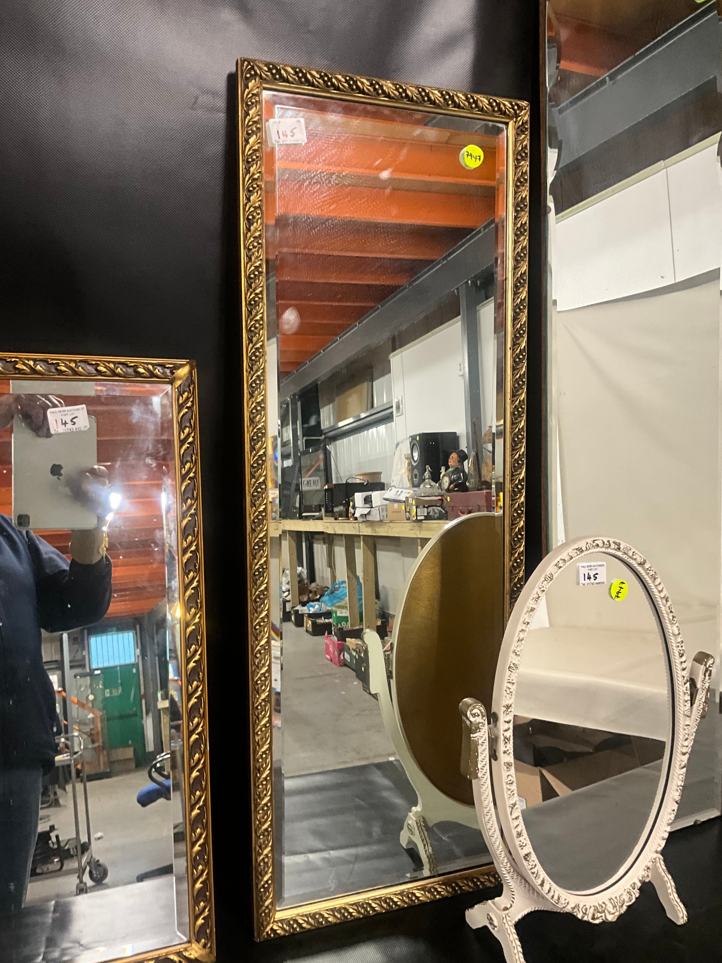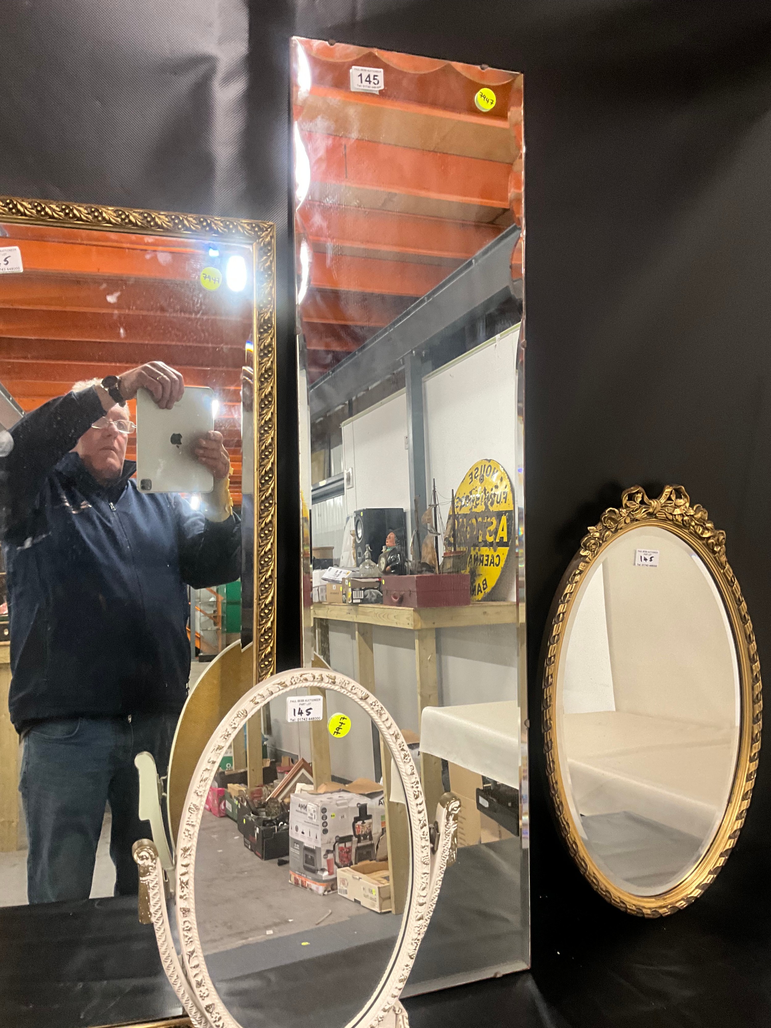 3 VINTAGE GILT FRAMED MIRRORS,HALL MIRROR AND FREE STANDING MIRROR