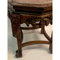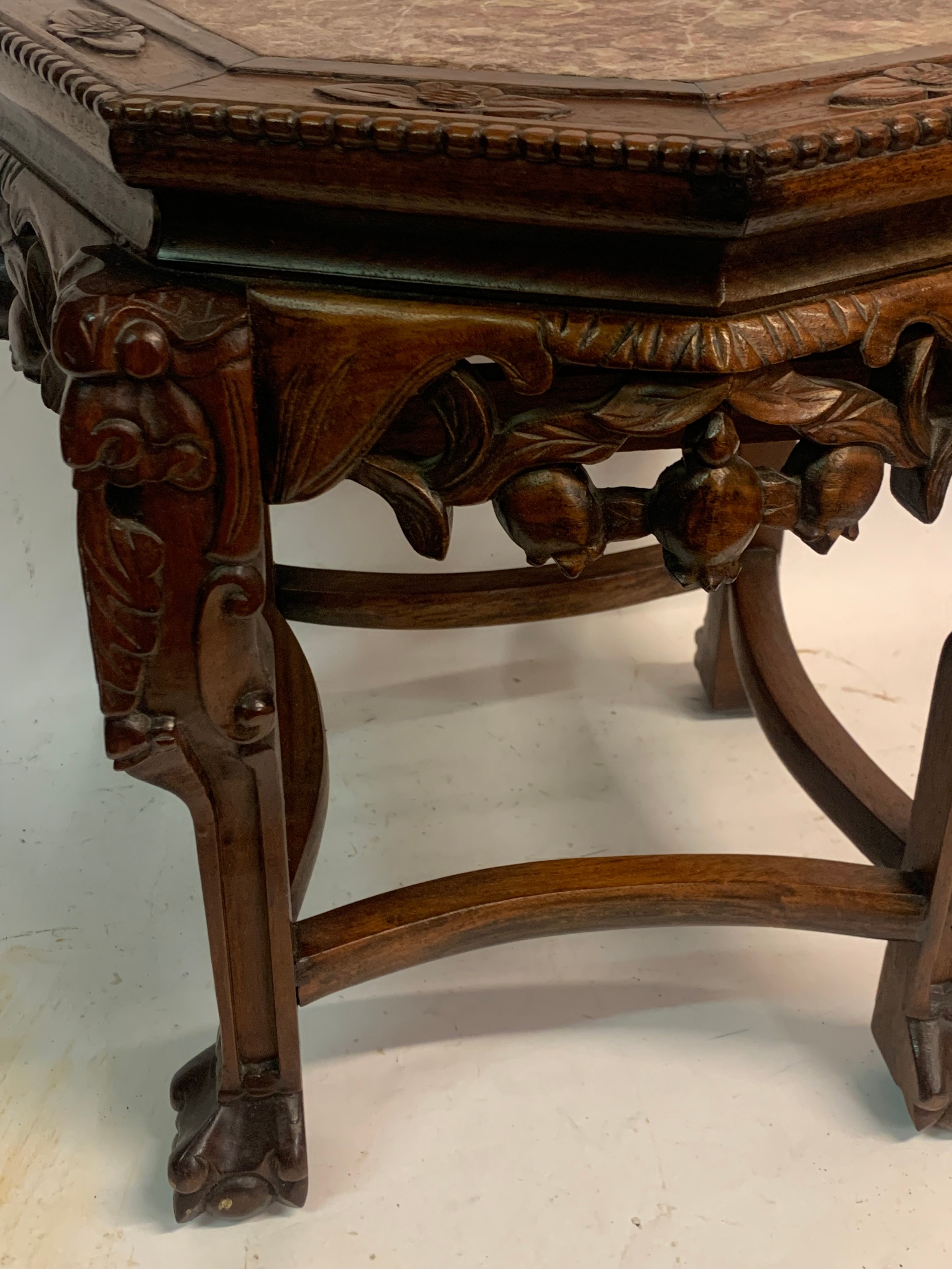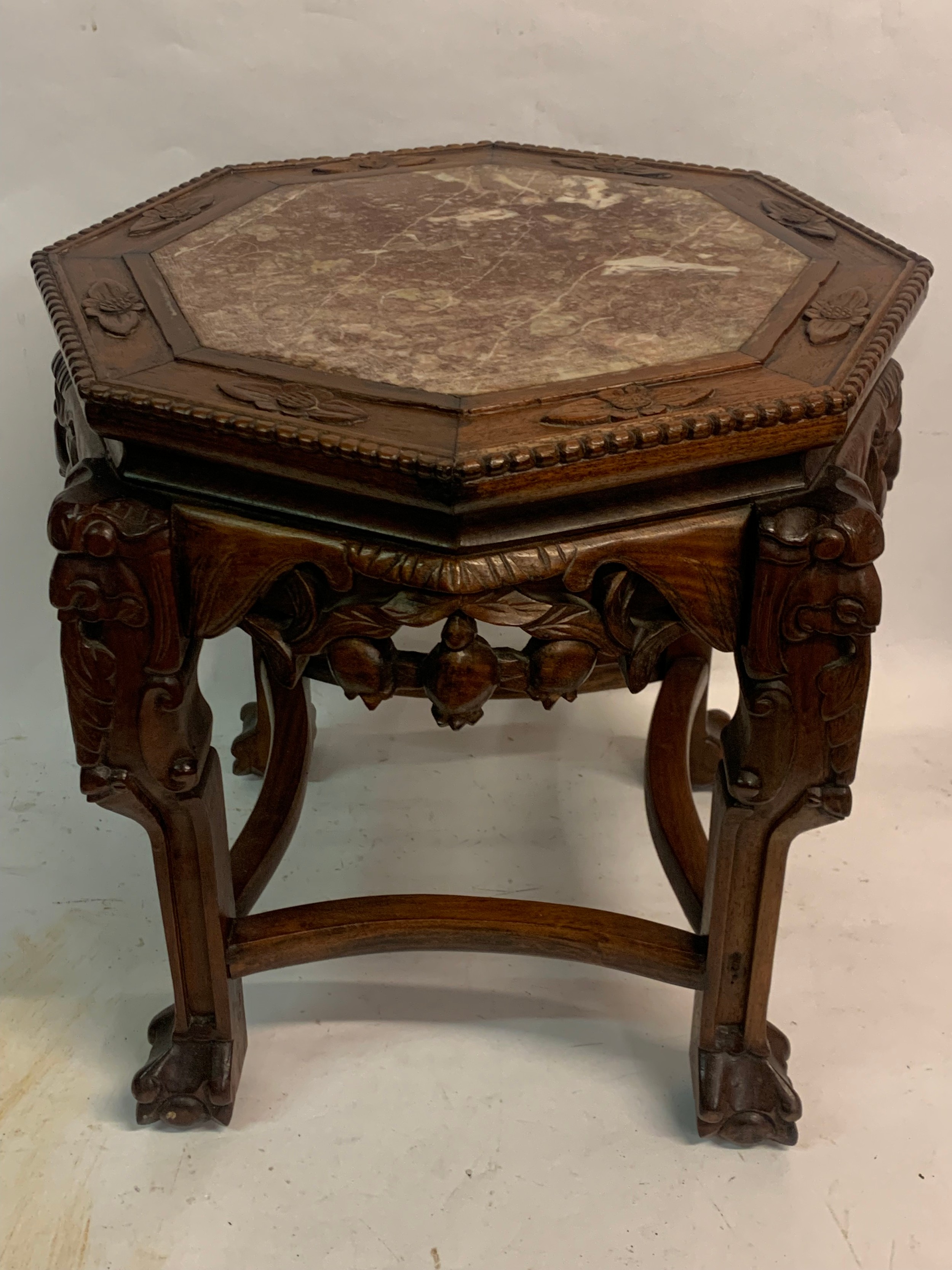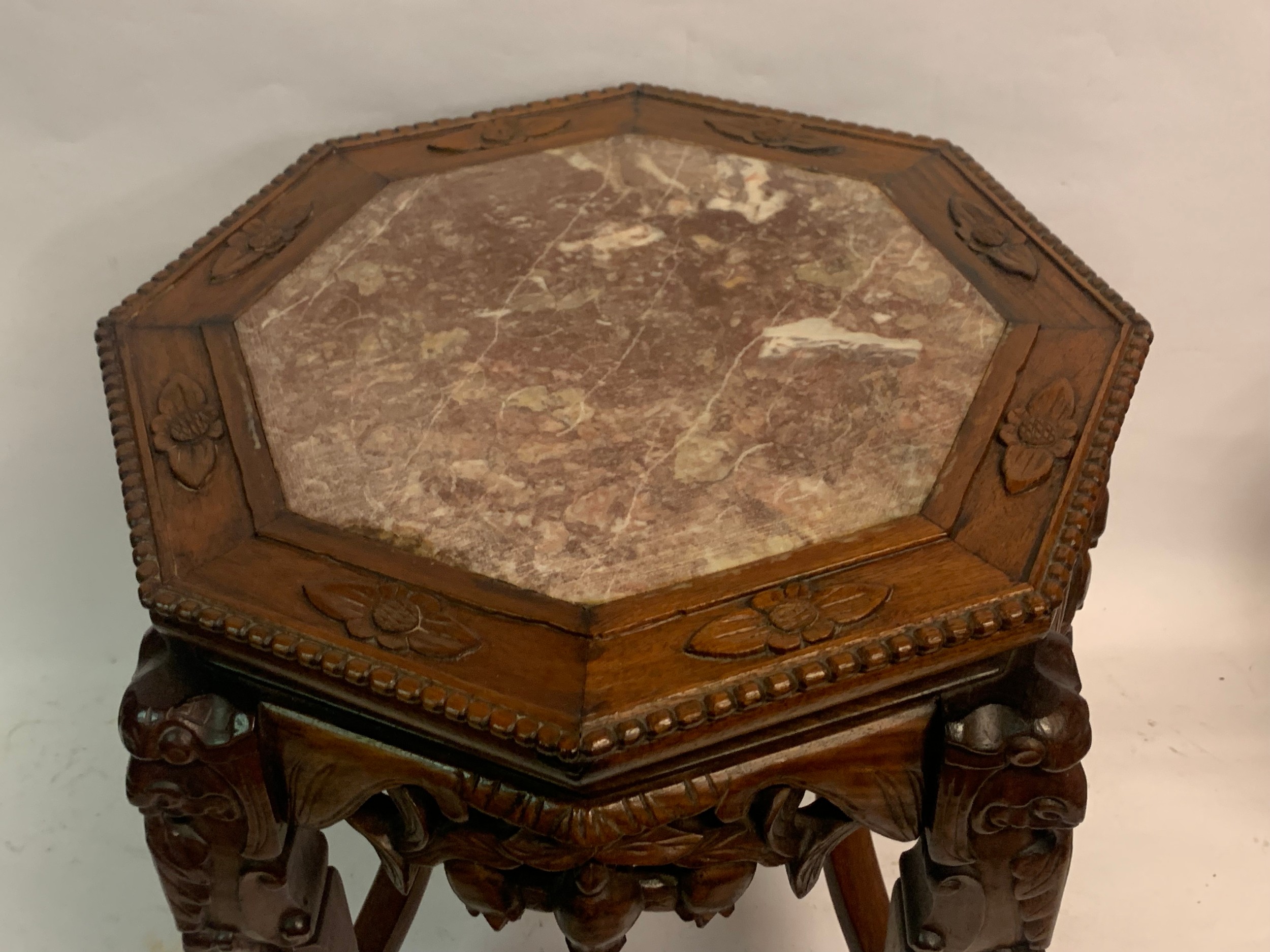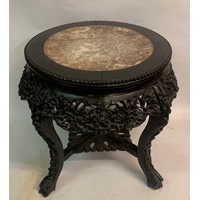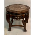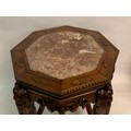 Vintage Eight Sided Carved Wood Chinese Marble Top Stand 54 x 46 cms