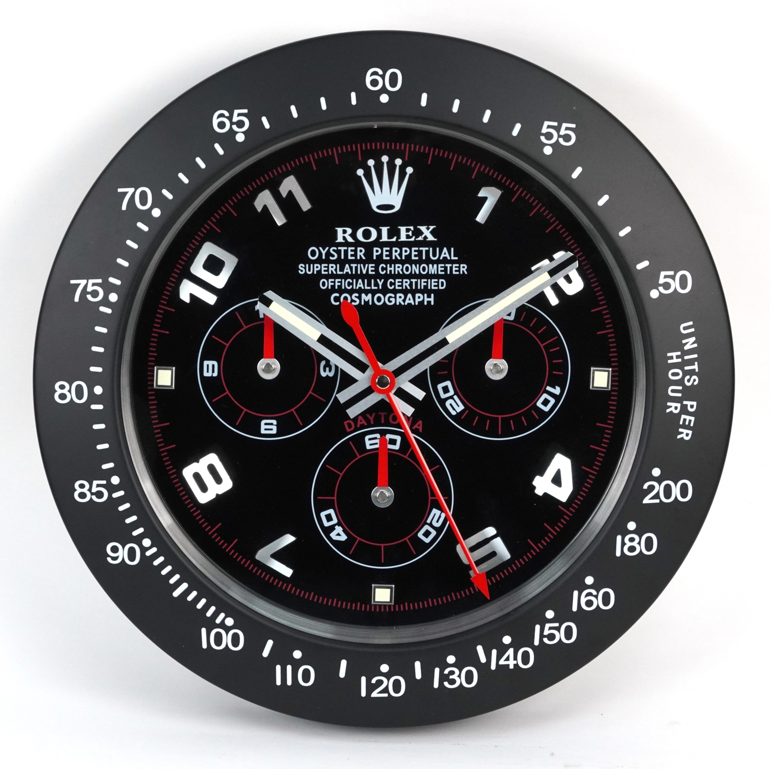 A Rolex Oyster Perpetual Daytona display wall clock, 34cm in diameter.