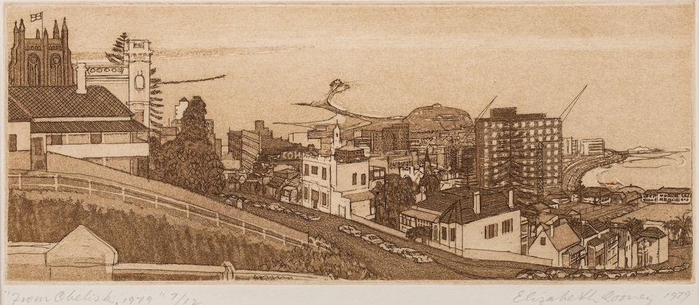 Elizabeth Rooney (1929-2016) From Obelisk, 1979 signed and dated etching 14 x 30cm