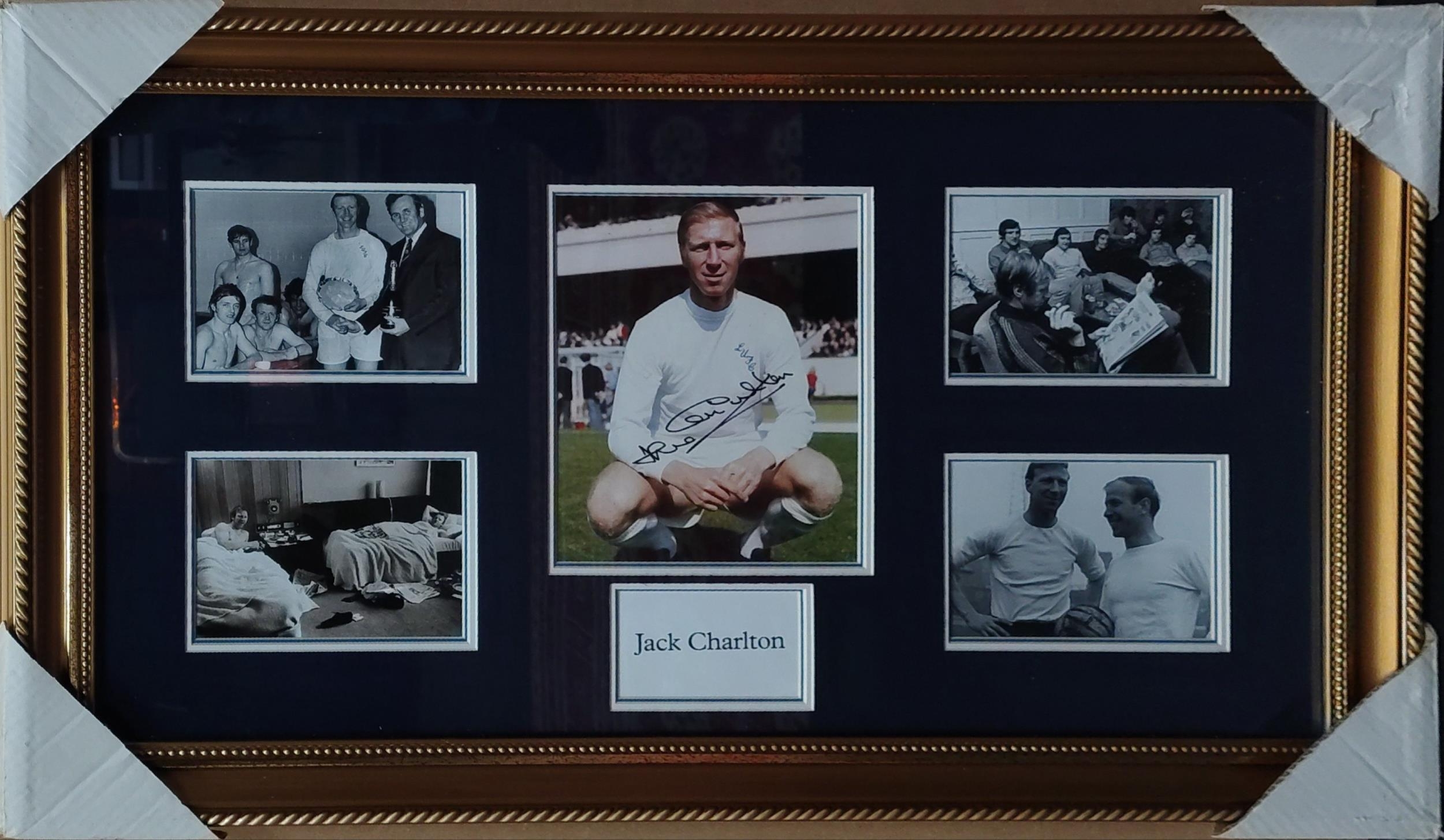 JACK CHARLTON framed presentation piece with signed photograph. 54 x 89cm approx.