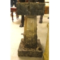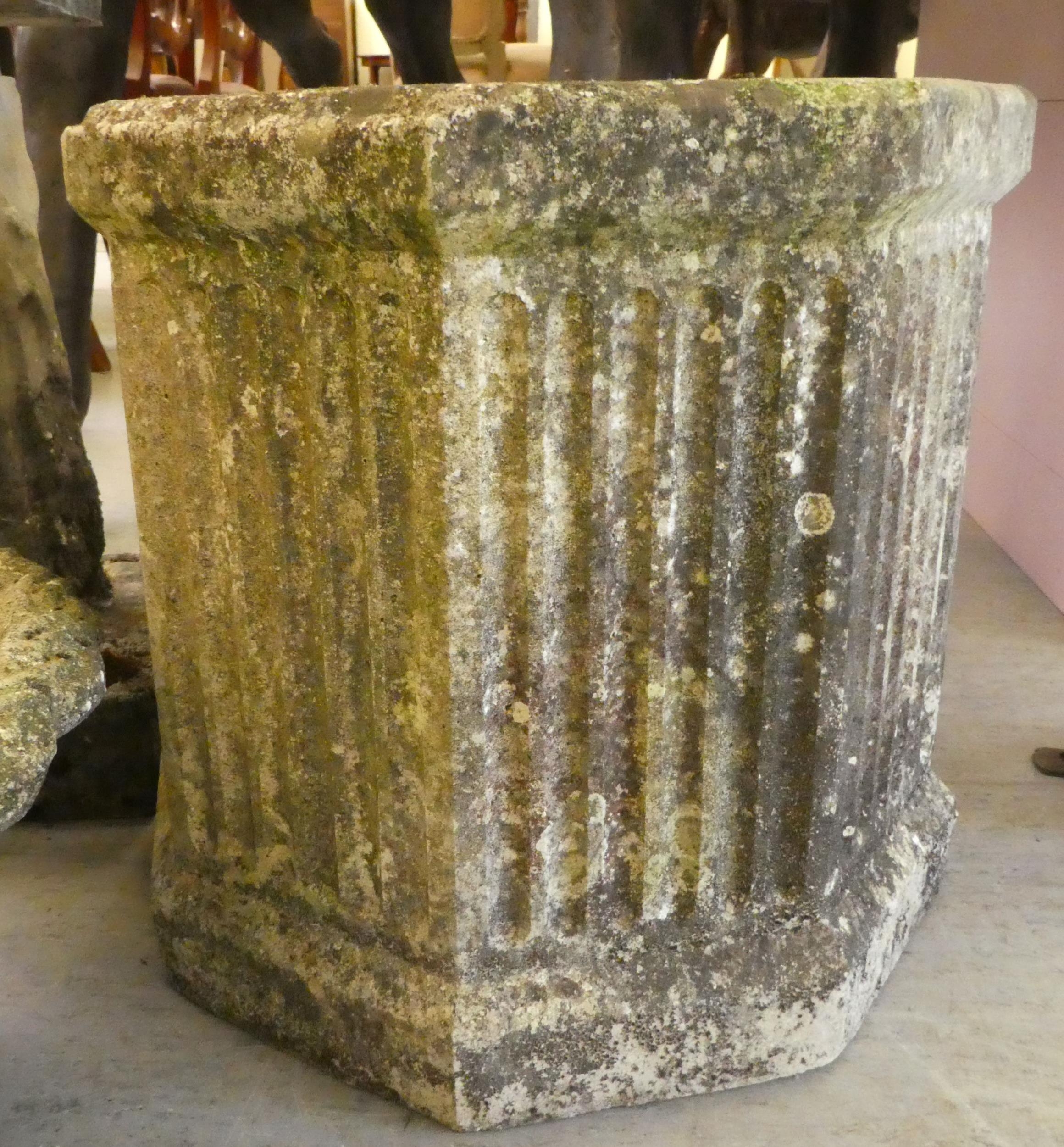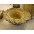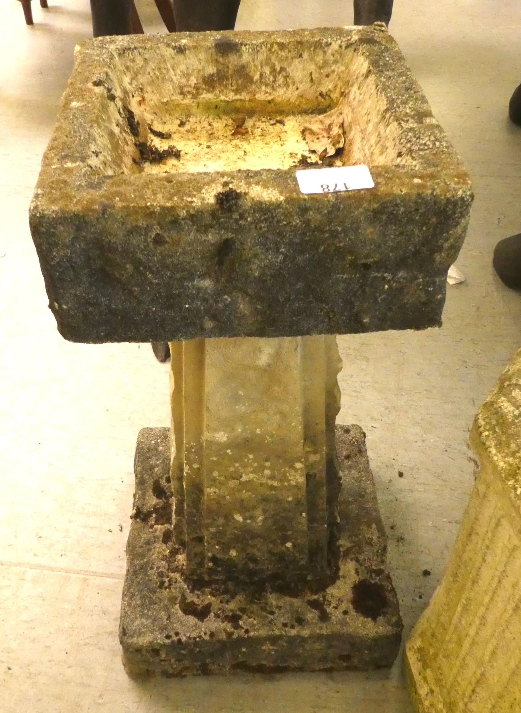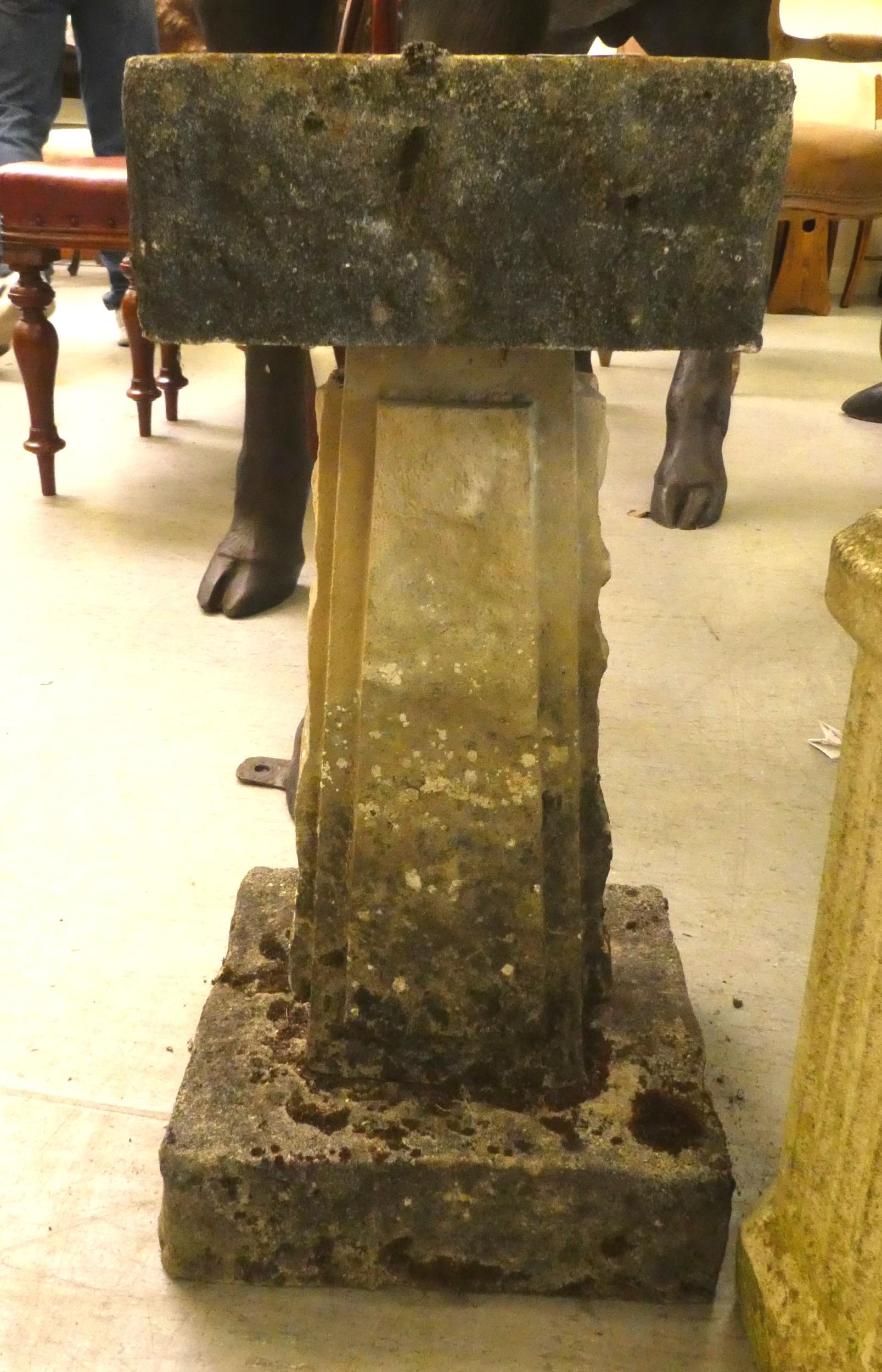 Weathered composition stone, viz. a bird table 21"h; an oval basket type planter 19"w; and one octagonal 15"h