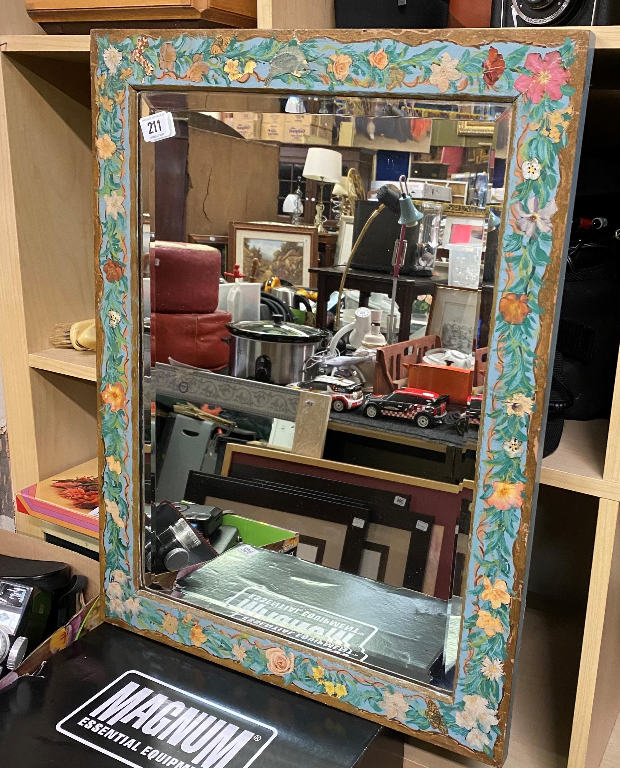 Hand painted framed bevelled glass mirror