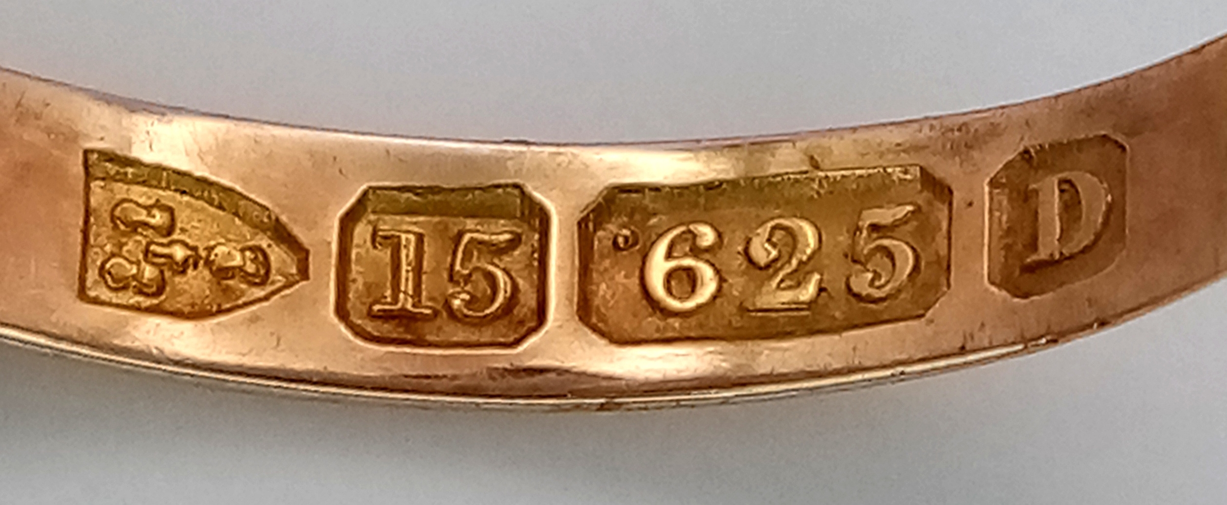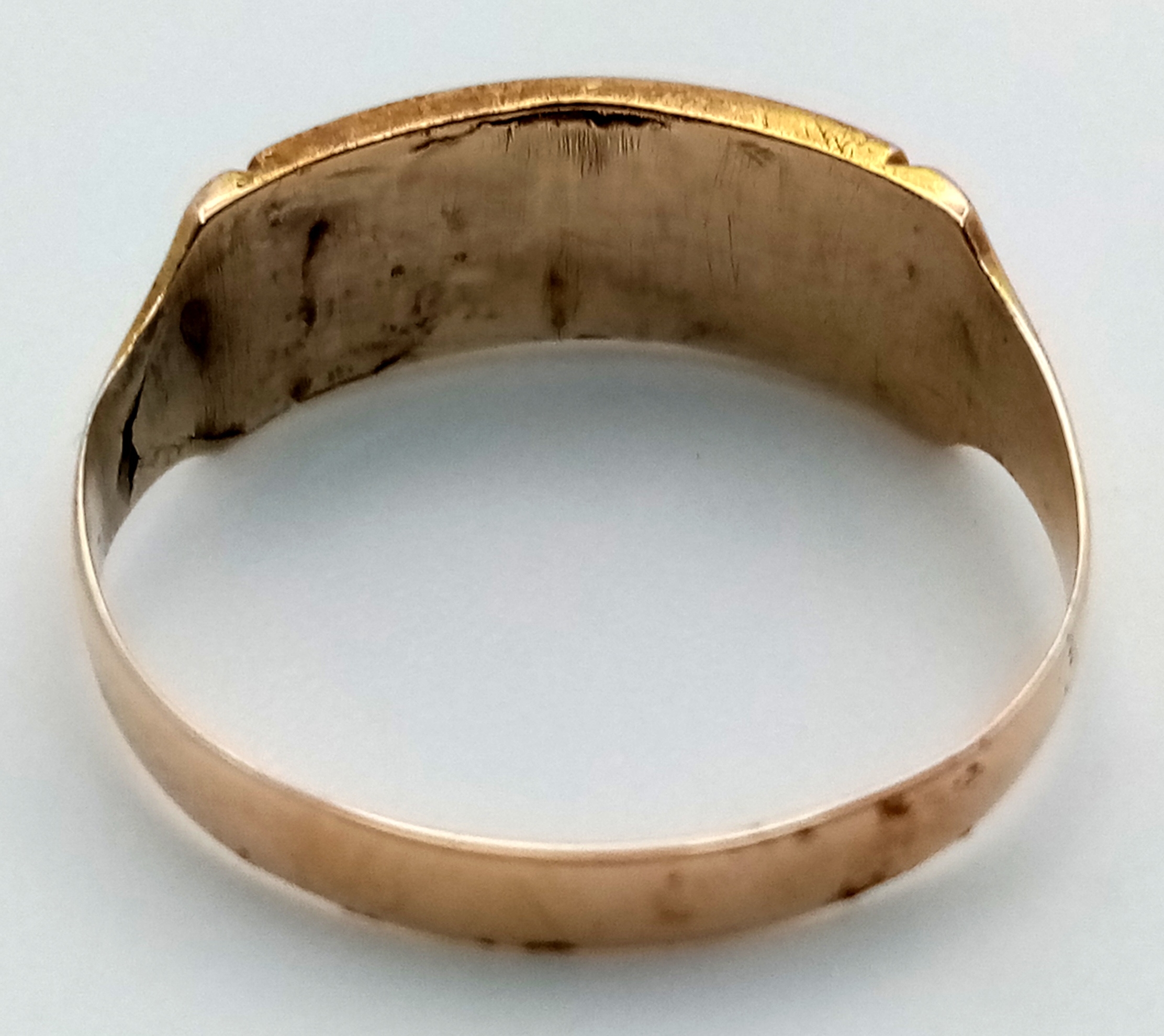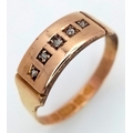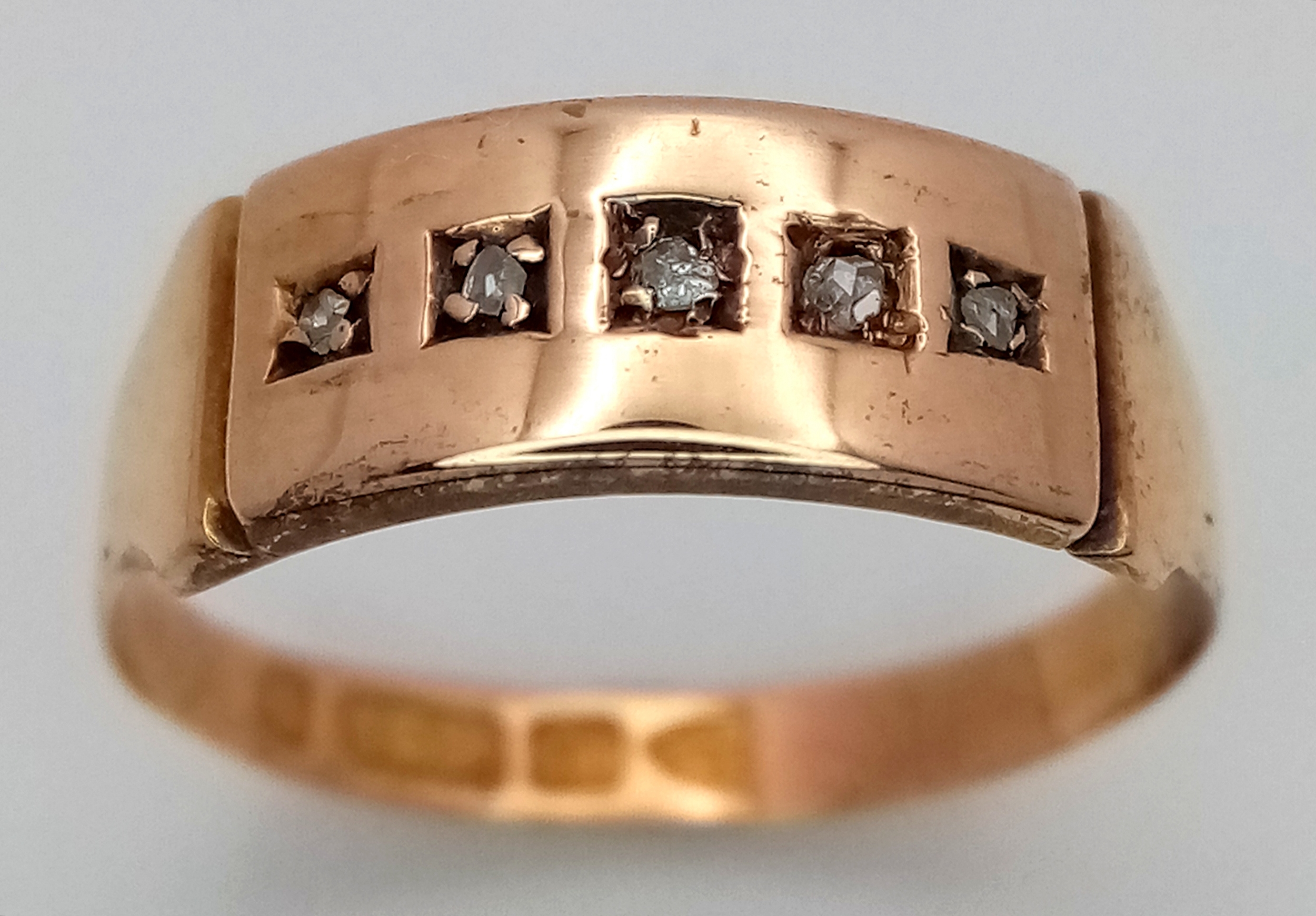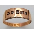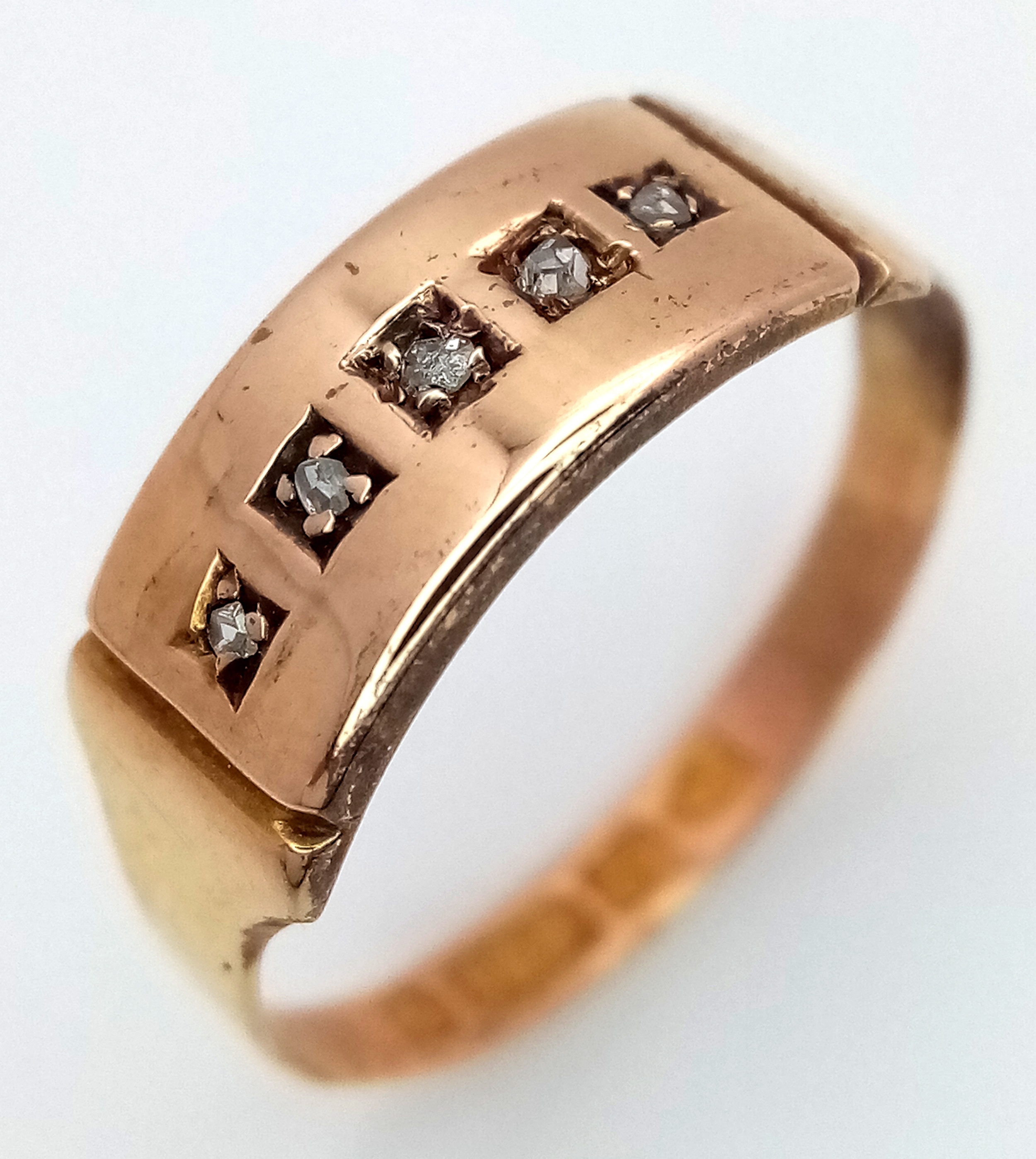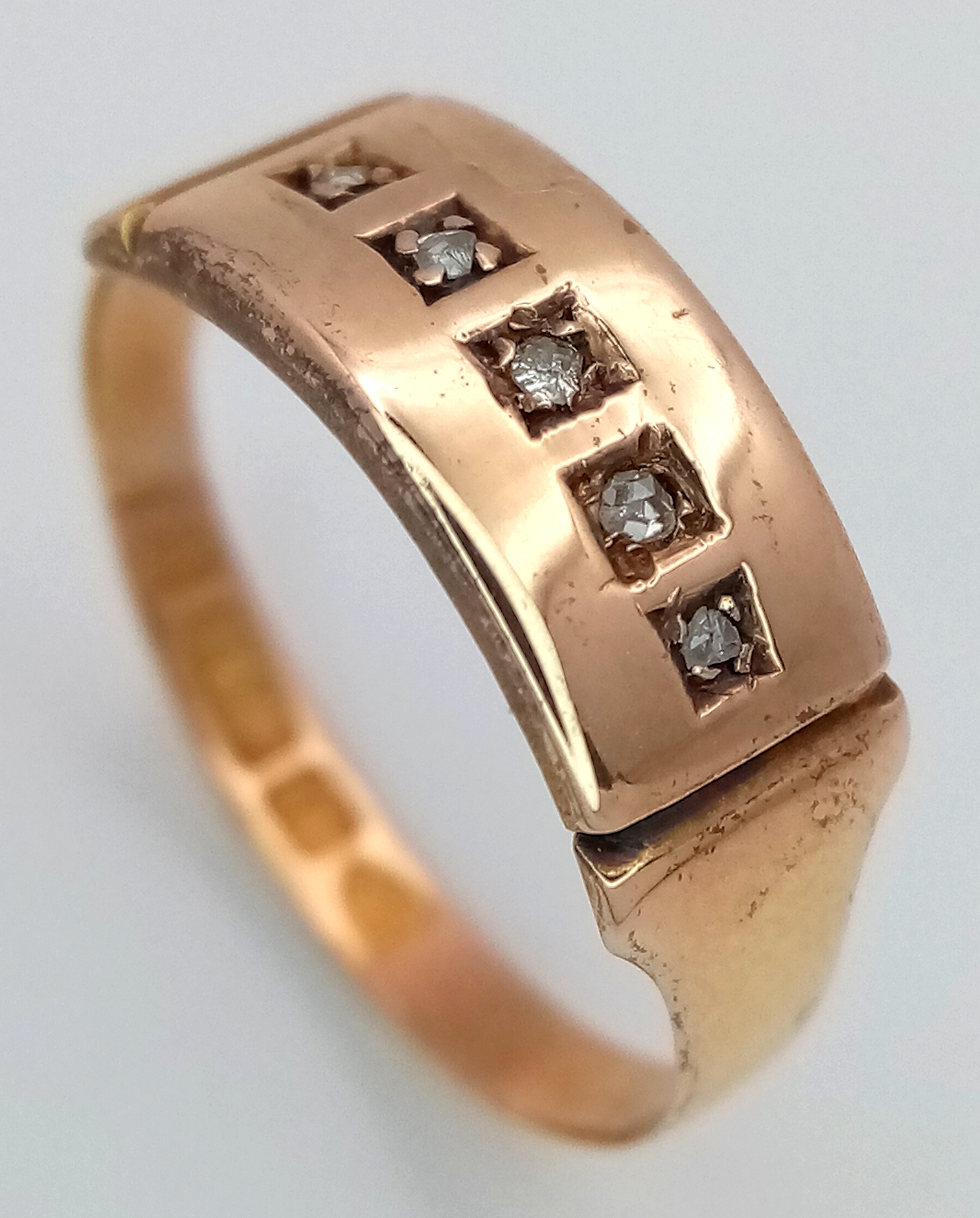 An Antique, Victorian, 15K Rose Gold Diamond Ring. Five rose cut diamonds. Chester hallmark. Size M 1/2. 1.25g