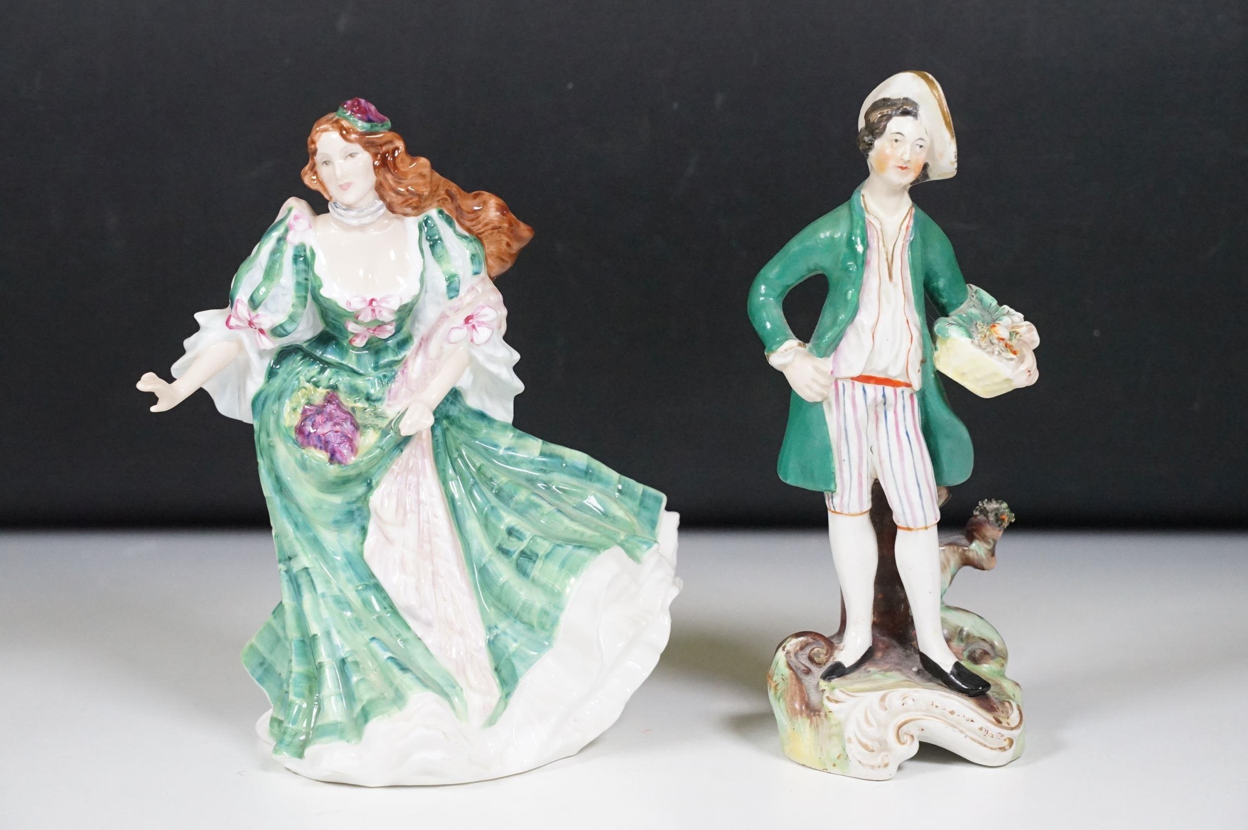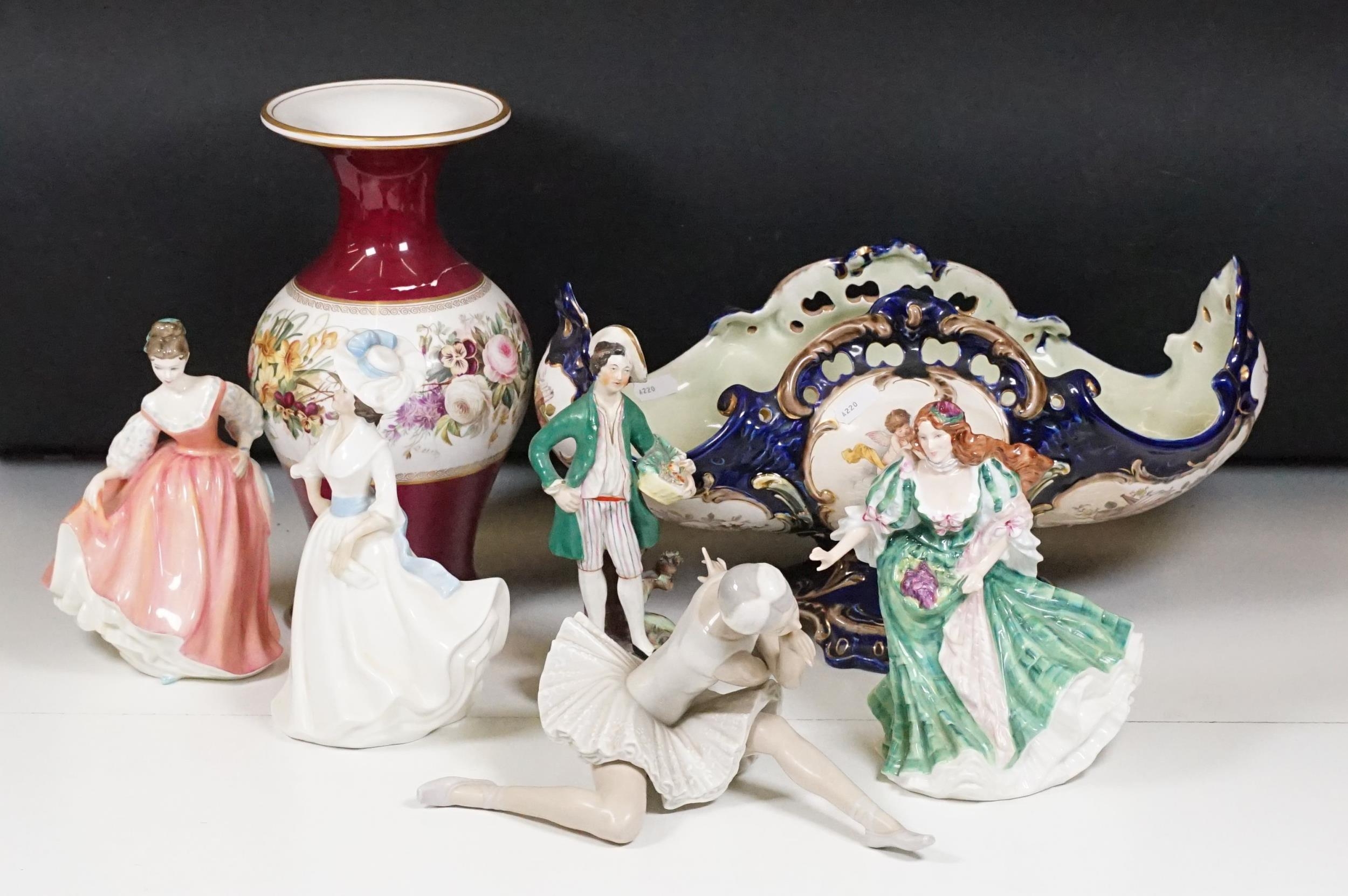 Collection of ceramics to include Royal Doulton HN2397 Margaret lady figurine, Royal Doulton HN3629 Ladies Of The British Isles lady figurine, Lladro Ballerina figurine, Staffordshire figurine, etc