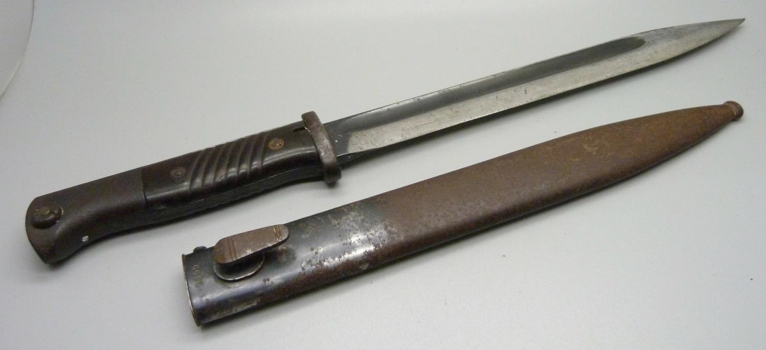 A German bayonet with scabbard, S84/98111 K98 bayonet, by Elite Diamont, matching numbers, made in 1939