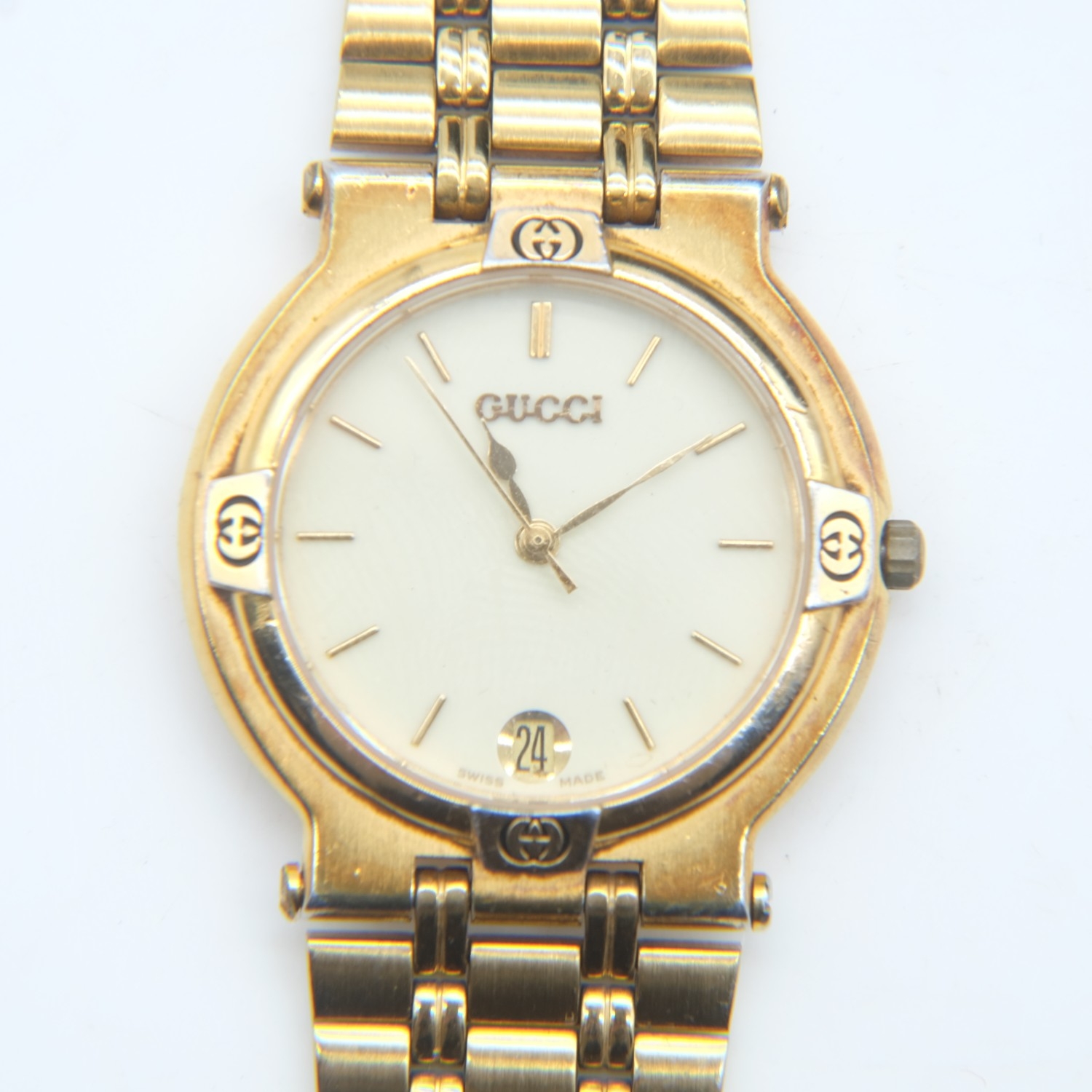 Gucci gold plated gent's wristwatch with date aperture. UK P&P Group 1 (£18+VAT for the first lot and £2+VAT for subsequent lots)