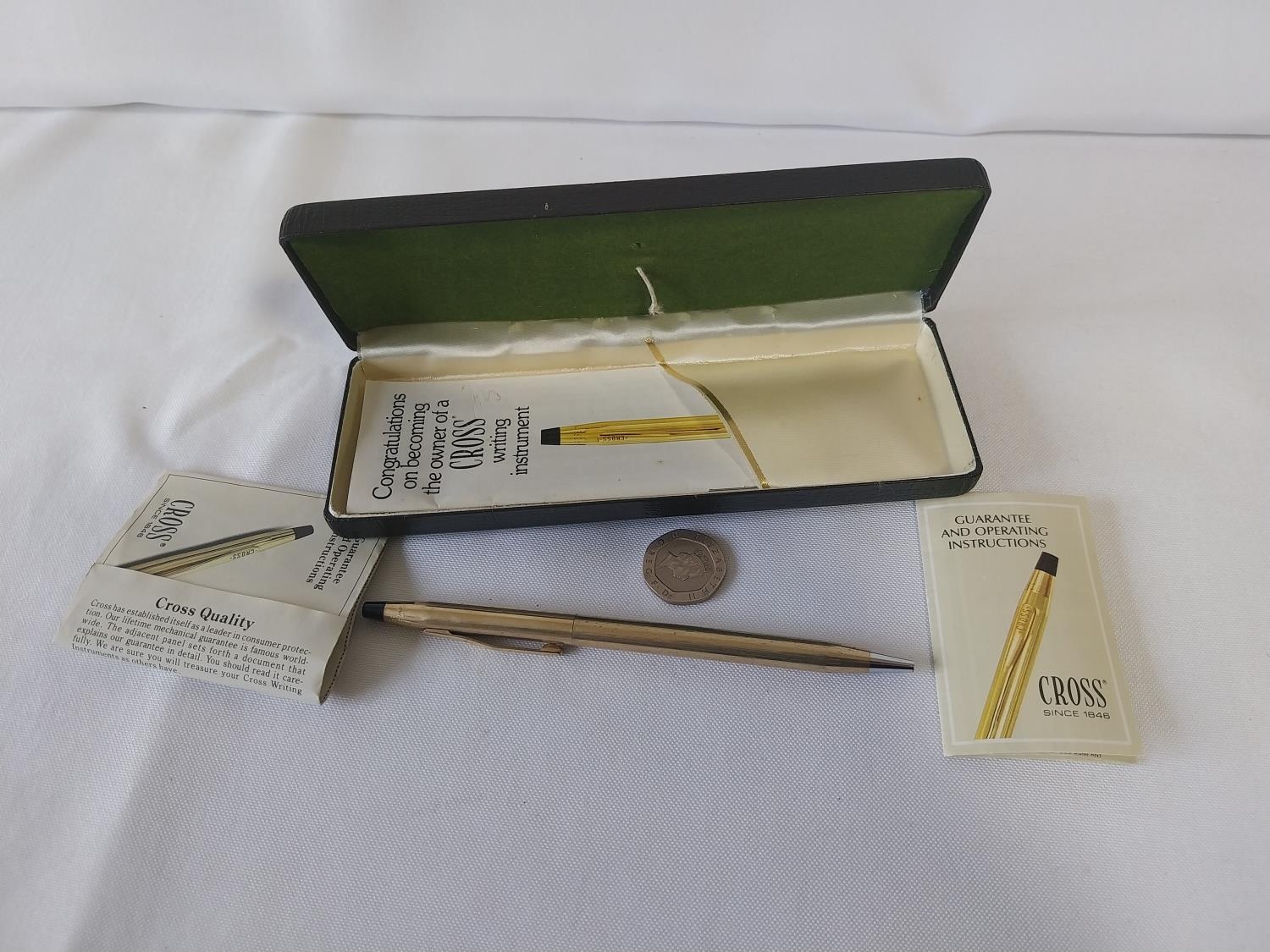 Cross pen boxed with paperwork 1/20th 10ct rolled gold