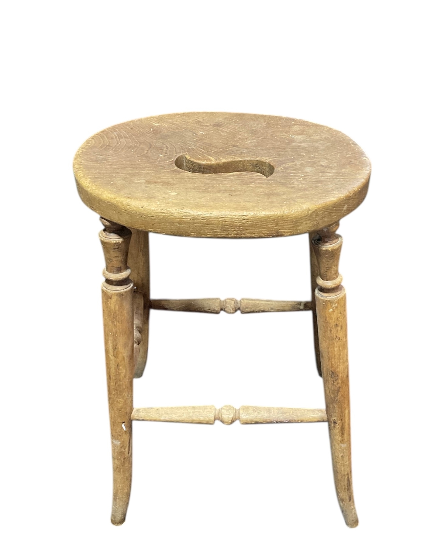 Oval Elm Top C19th Country Stool.