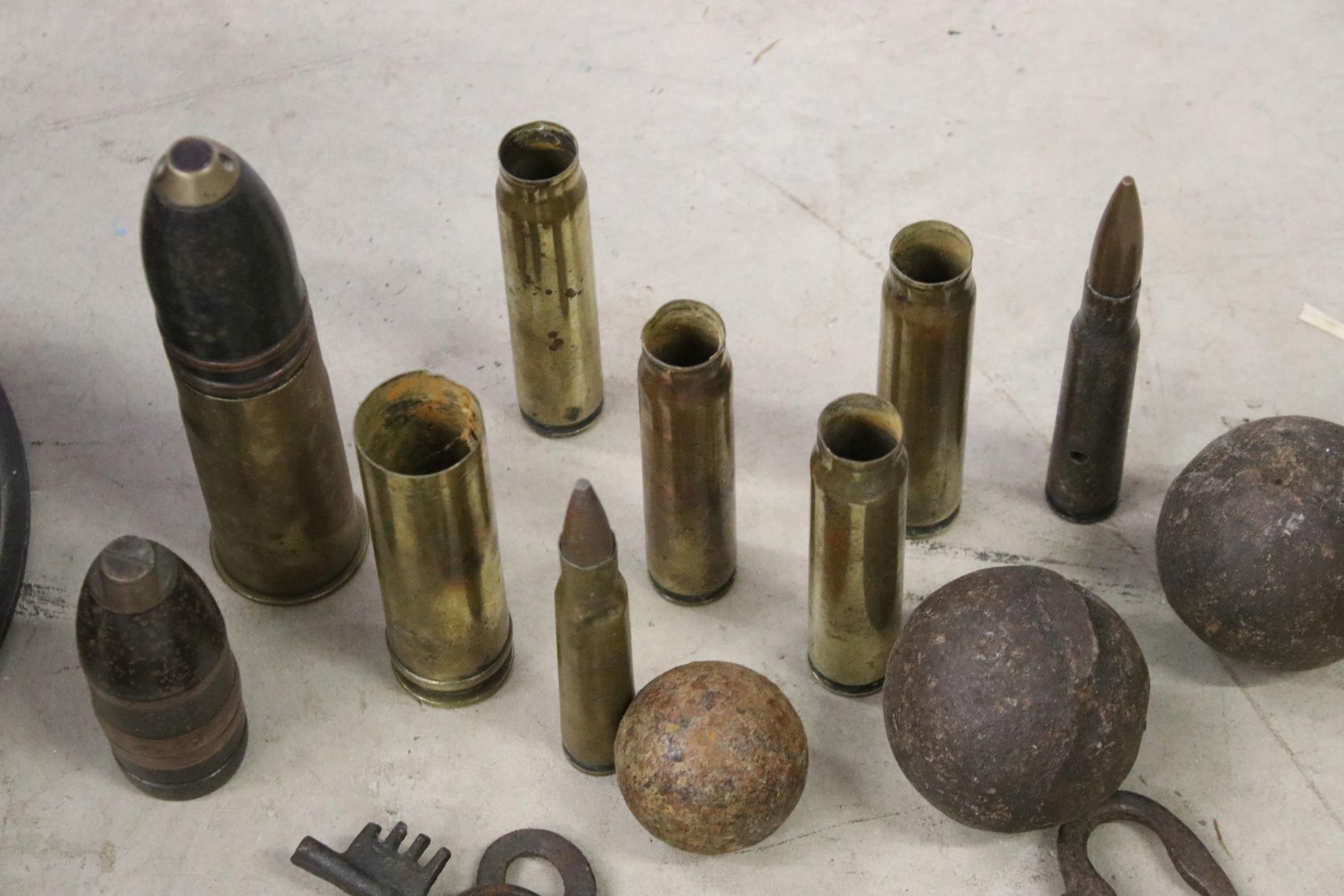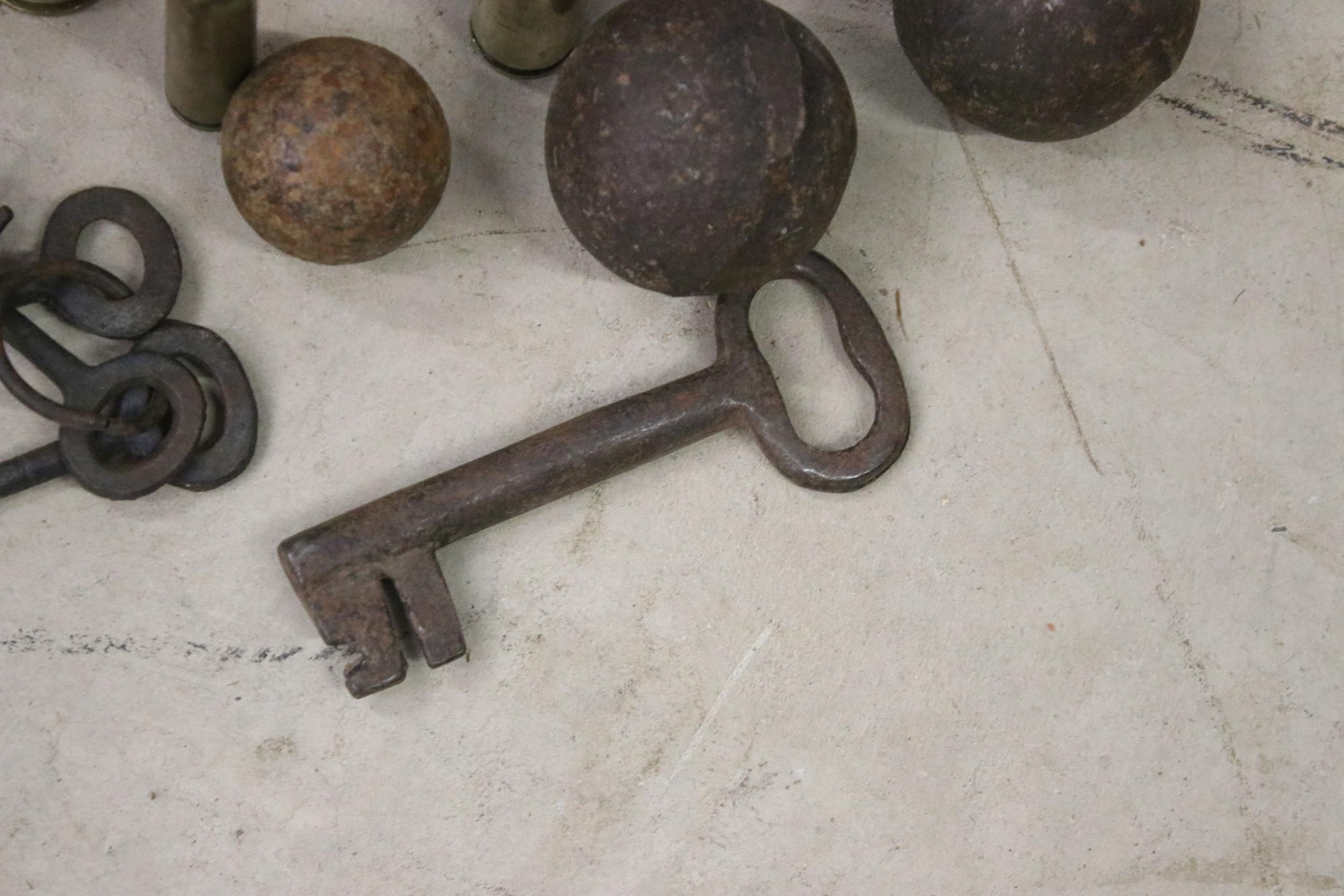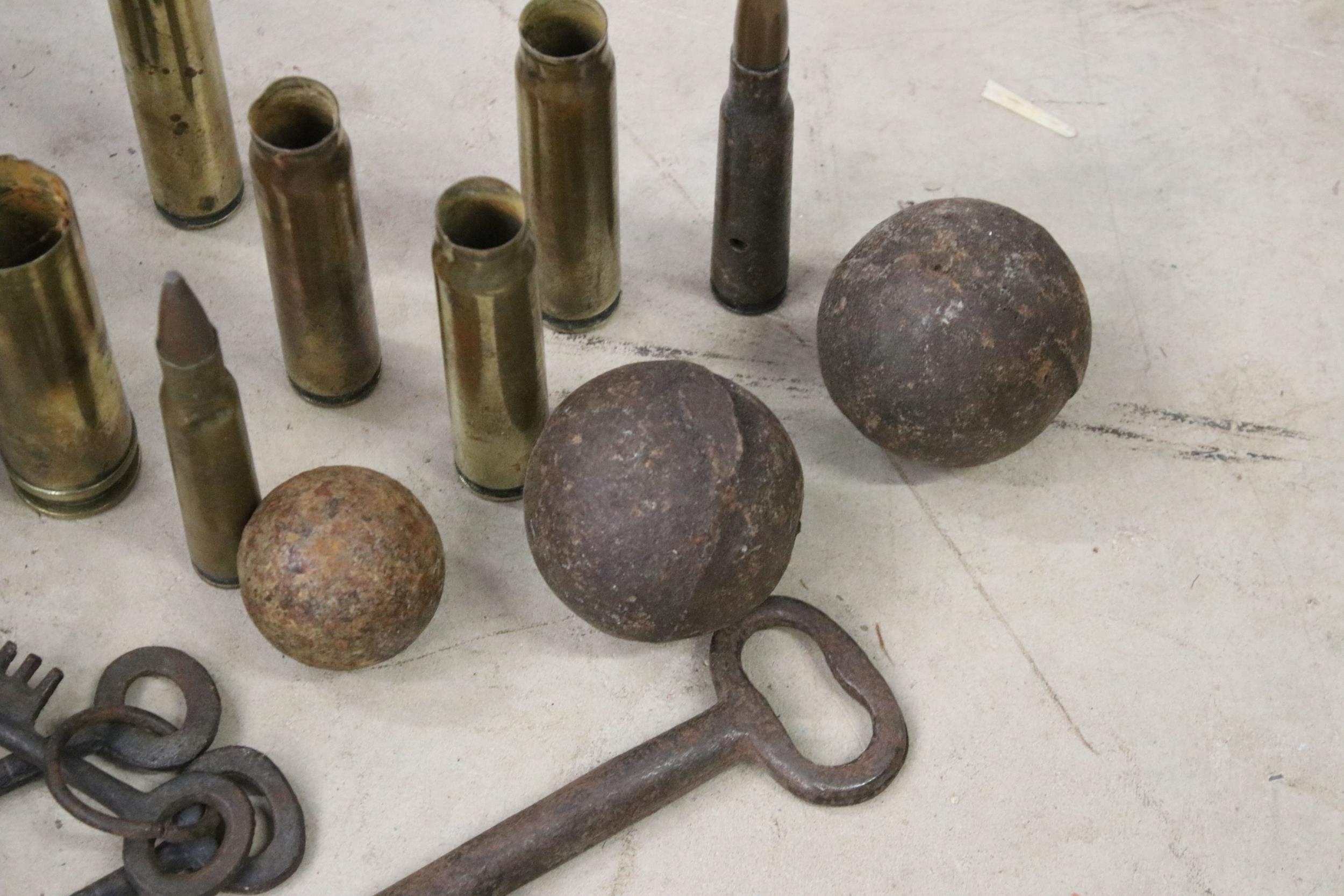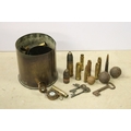 Collection of WWI shell cases and shell cartridges together with a MKIII 1941 TG.Co.Ltd London Compass and a small quantity of keys.