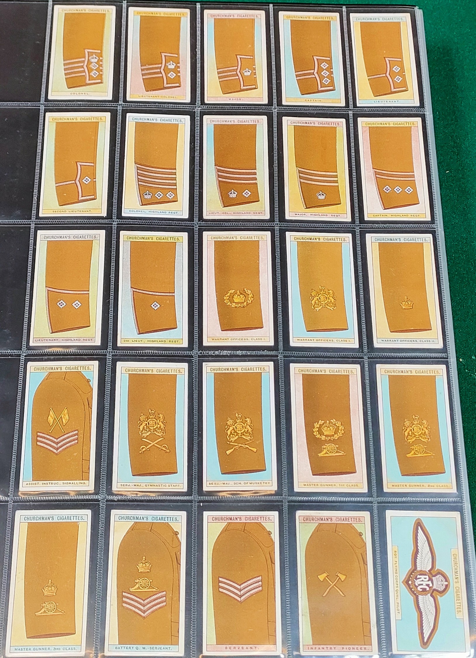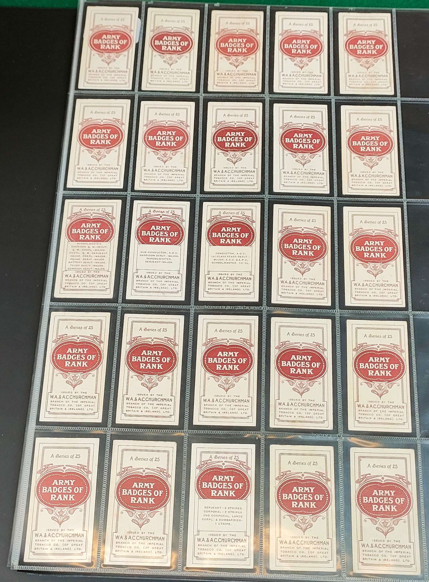Various Churchmans Army Badges of Rank cards