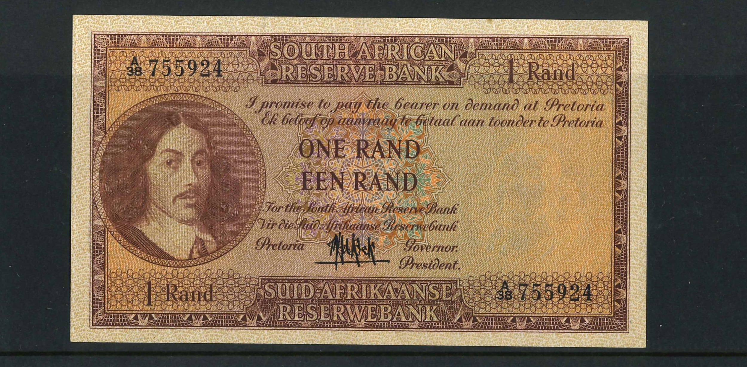 Banknotes; South Africa; 1961-65 1r signed M. H. de Kock, VF. Krause 103a.