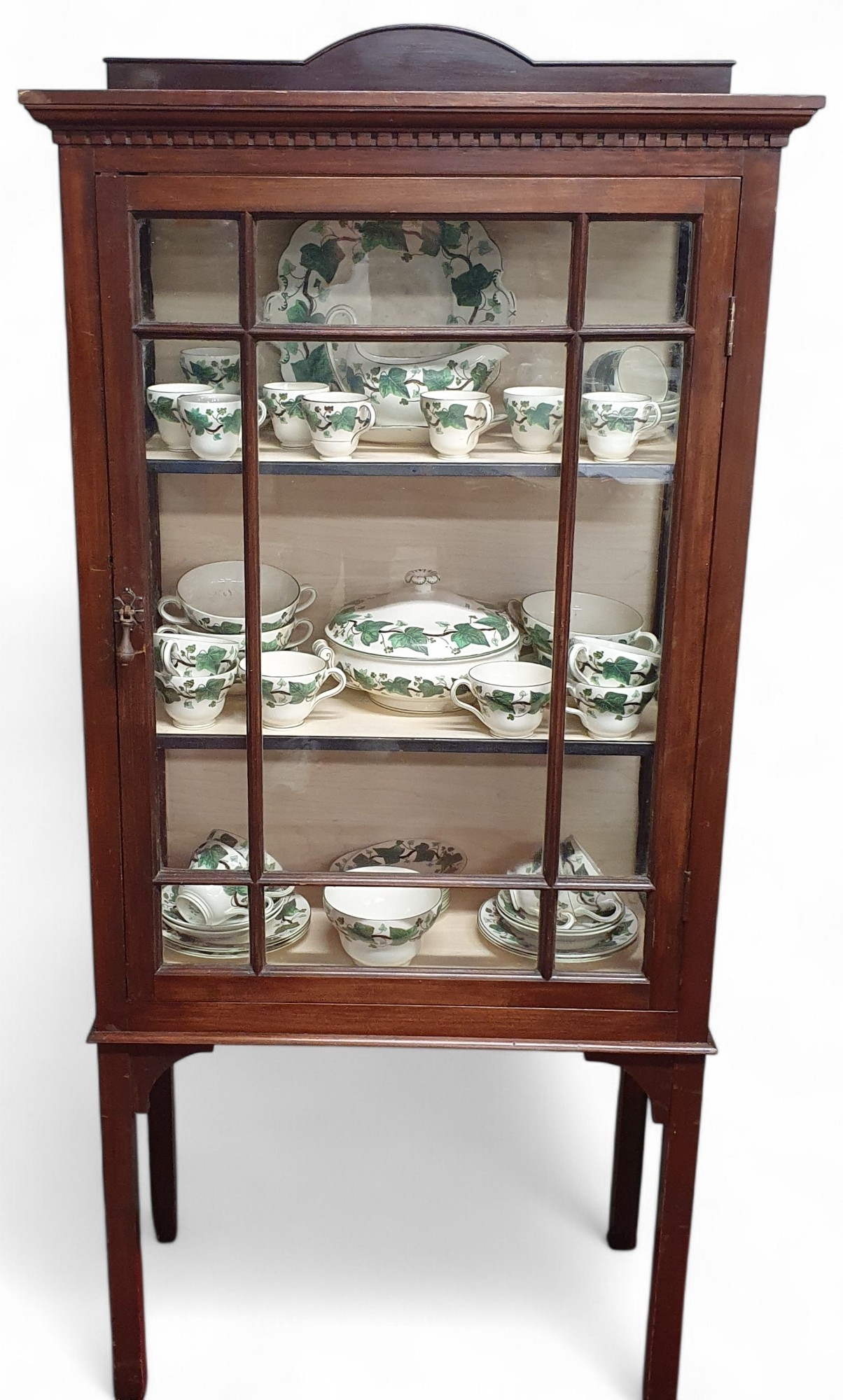 An Edwardian Mahogany single door Display Cabinet on square tapered supports with astragal glazed panel door.