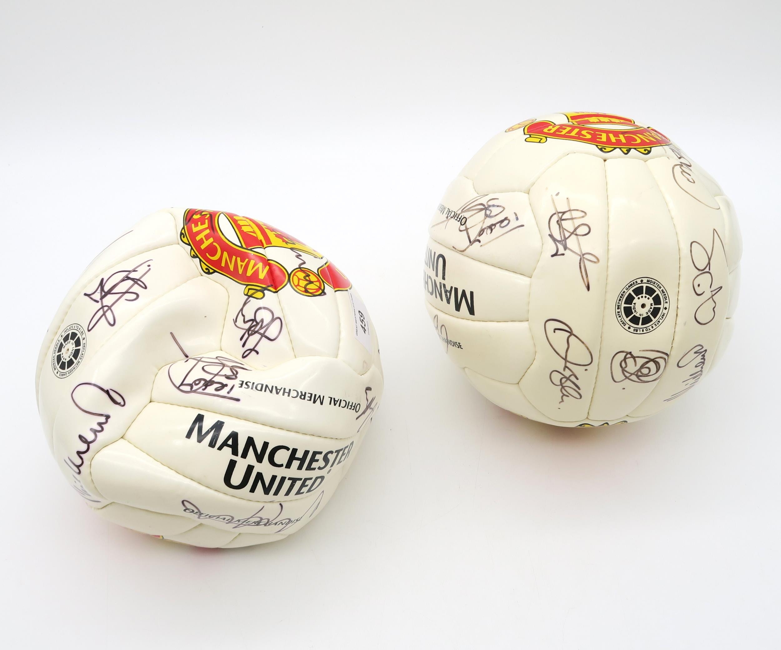 Manchester United: Two footballs, each bearing team signatures, circa-2000s