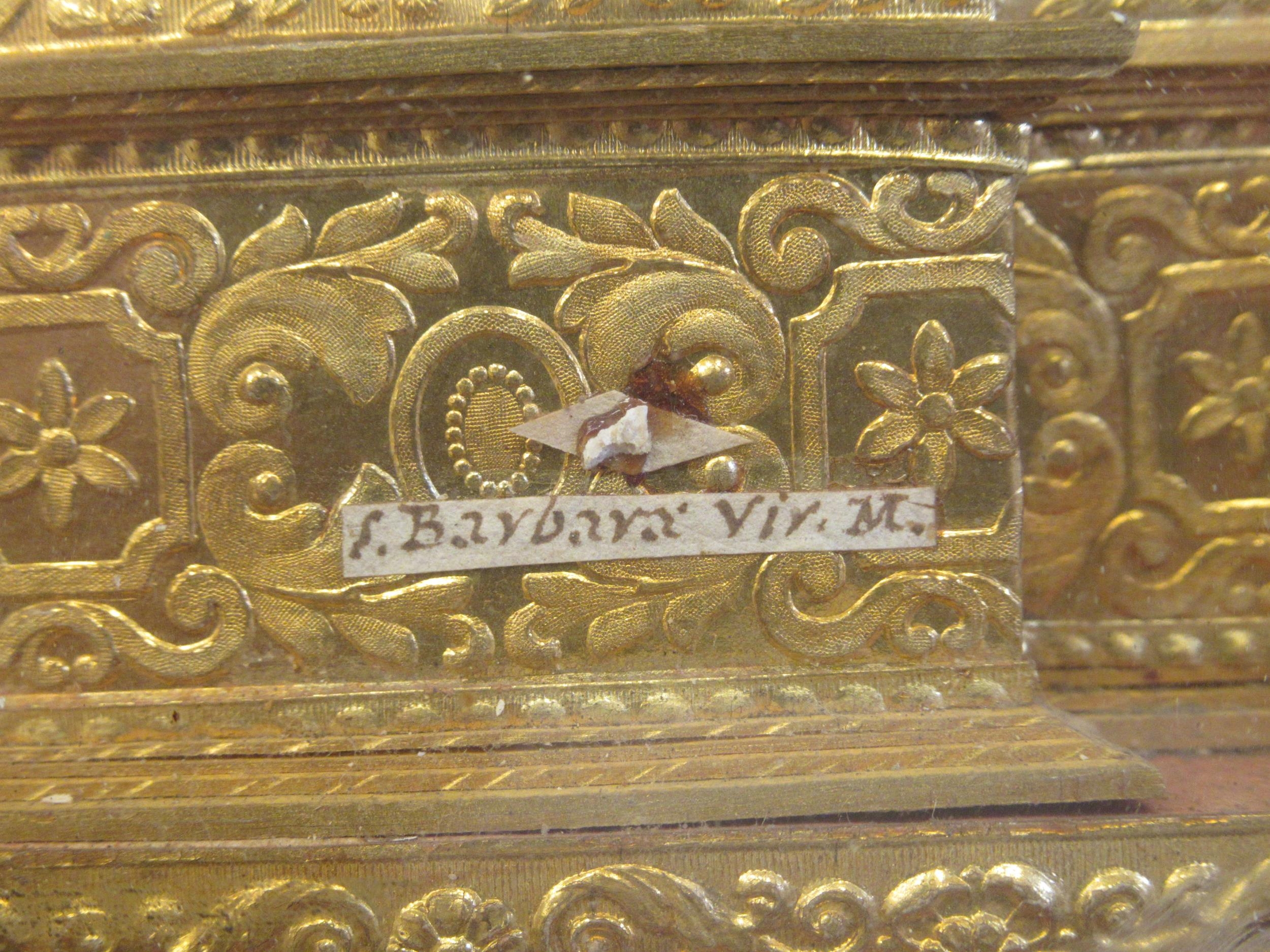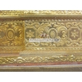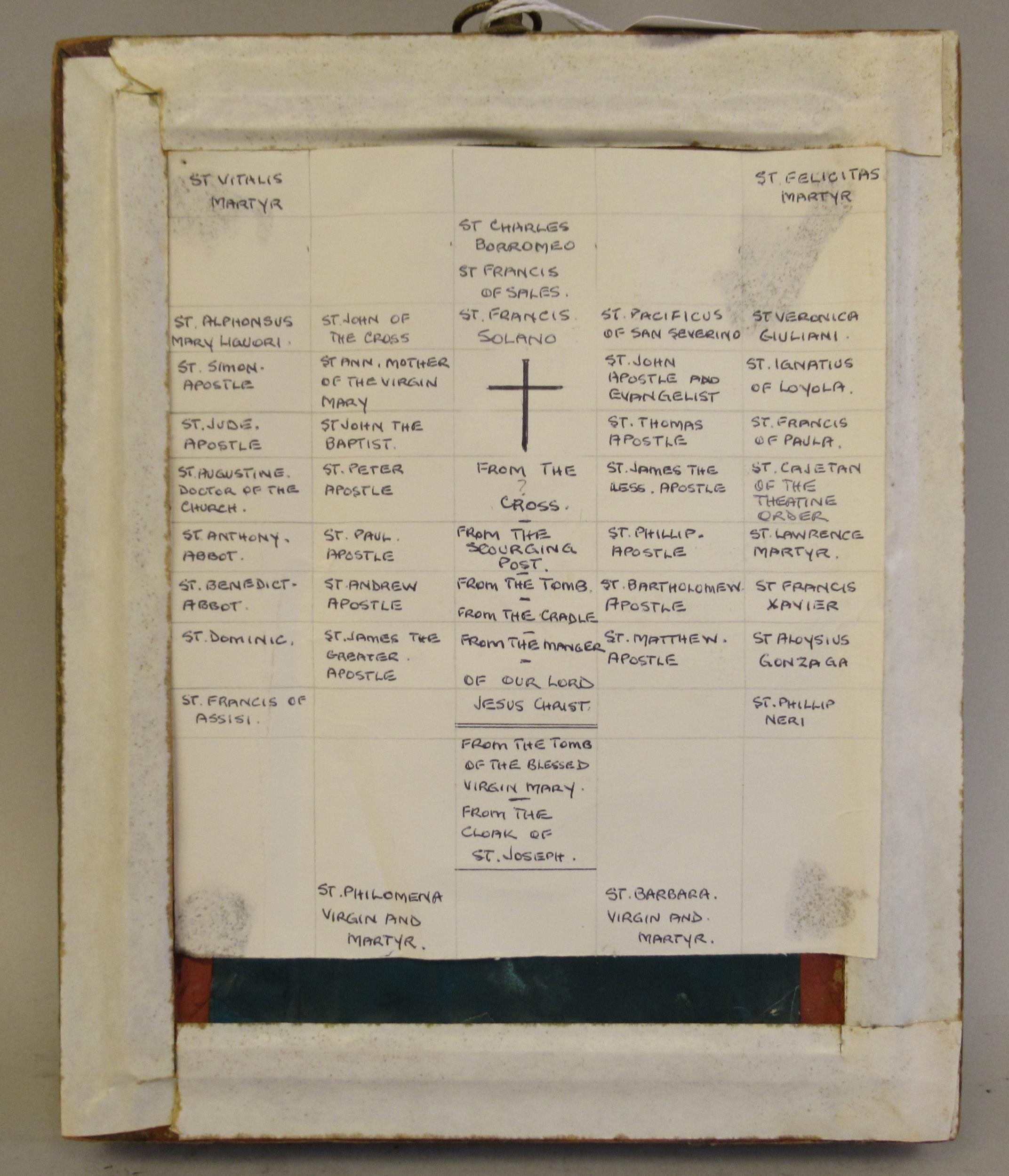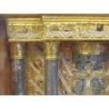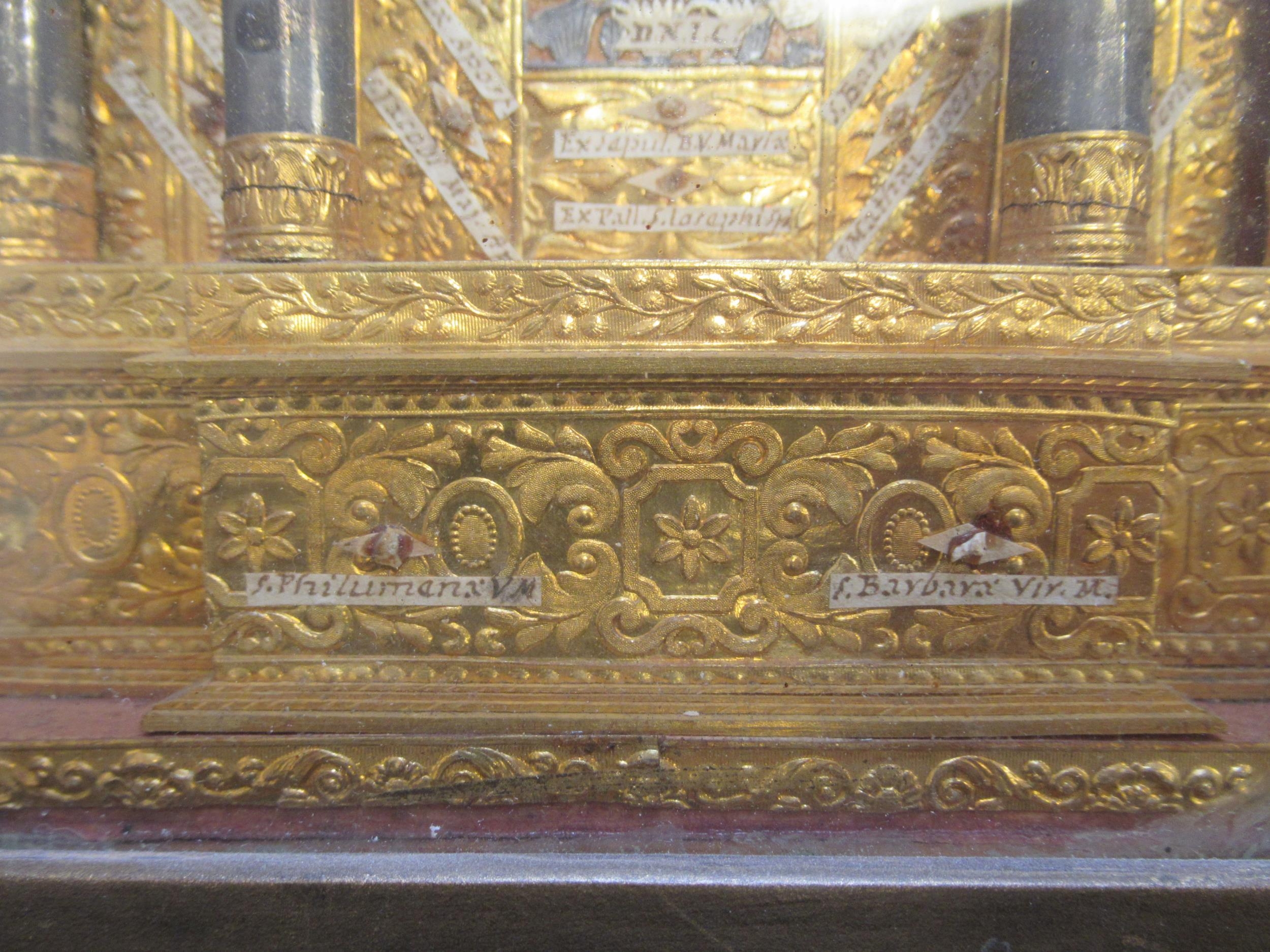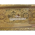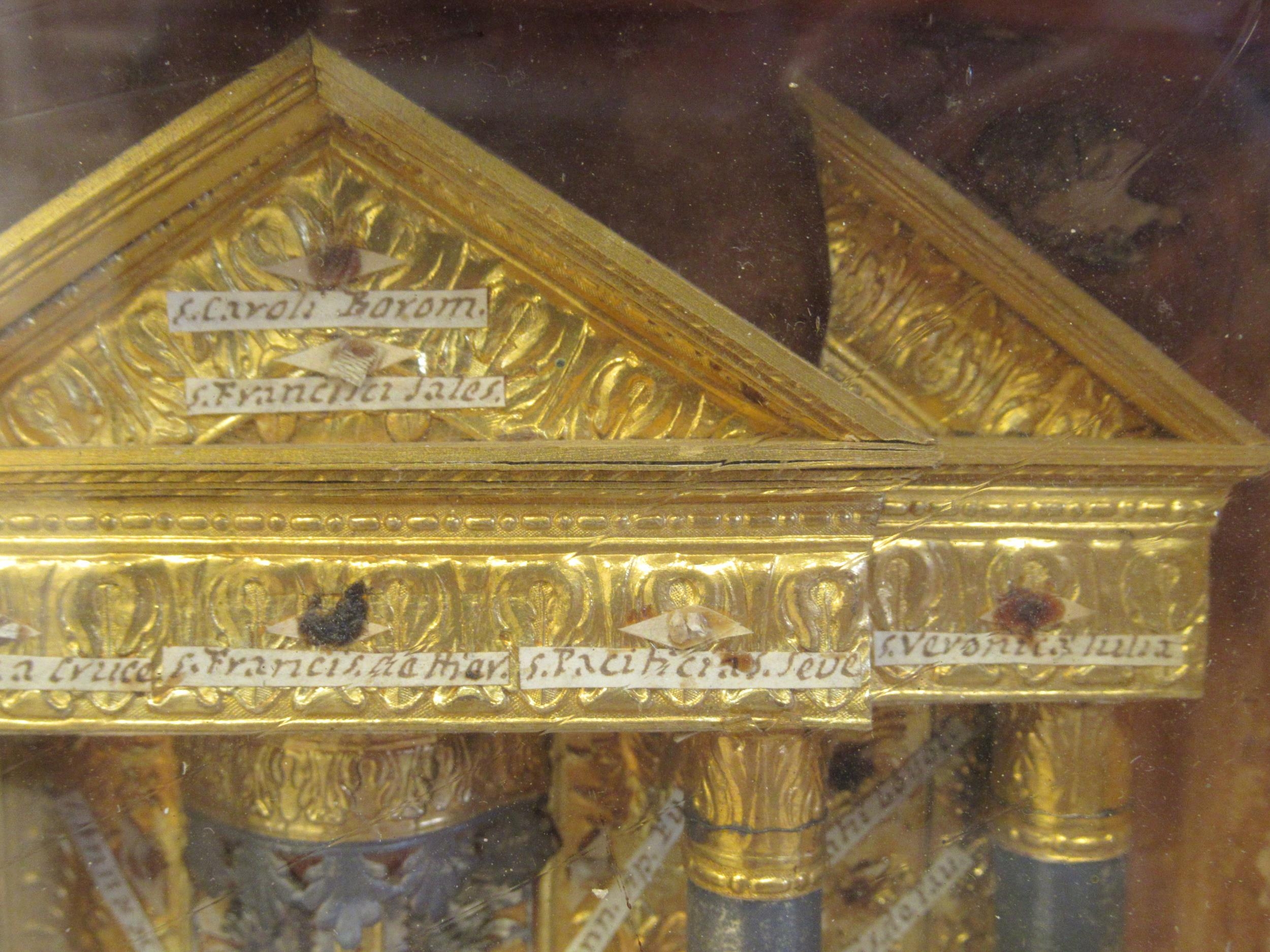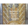 A 19thC box framed and glazed miniature gilded metal, three dimensional representation of the Tomb of the Virgin Mary with an attendant index of locations and a later explanations verso 9.5" x 7.5"