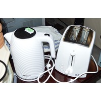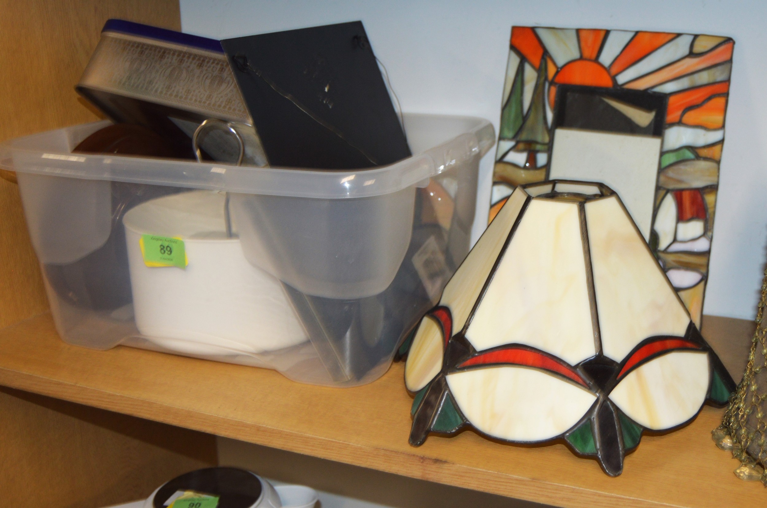 Box of Kitchenware, Tiffany-style Lampshades etc