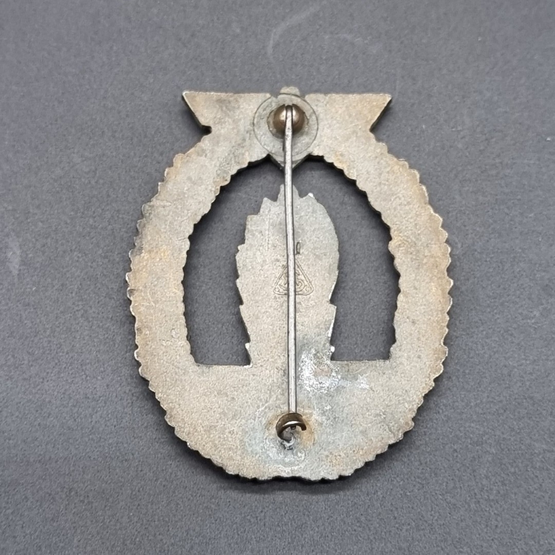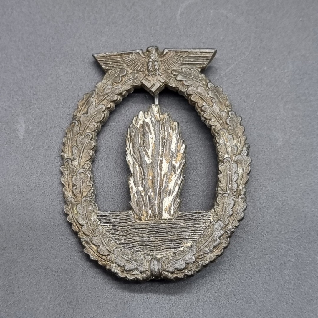 A WWII German Minesweeper badge, by Adolf Scholze, Gablonz, 57mm high.