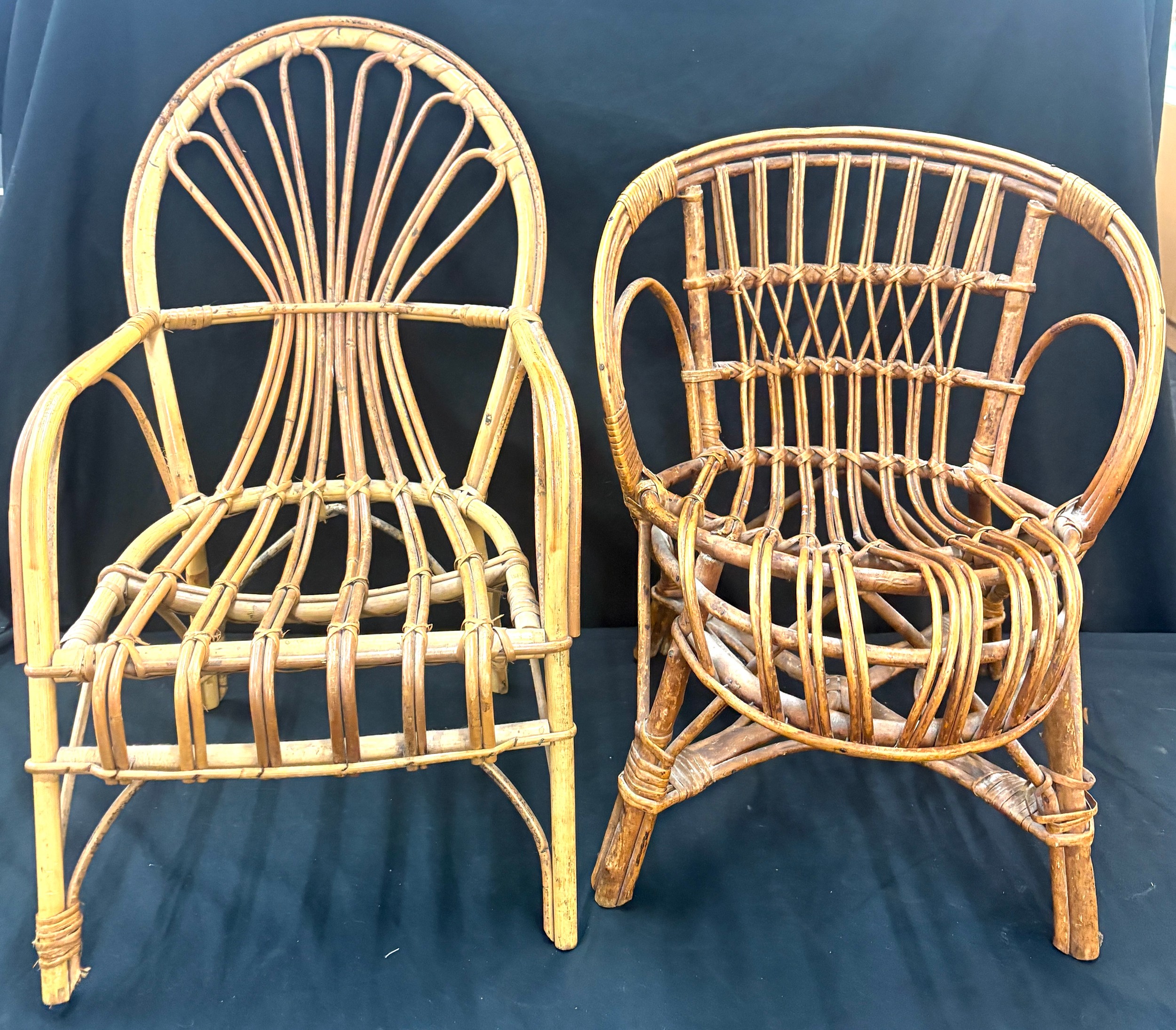 2 Vintage children's cane chairs 22 inches tall