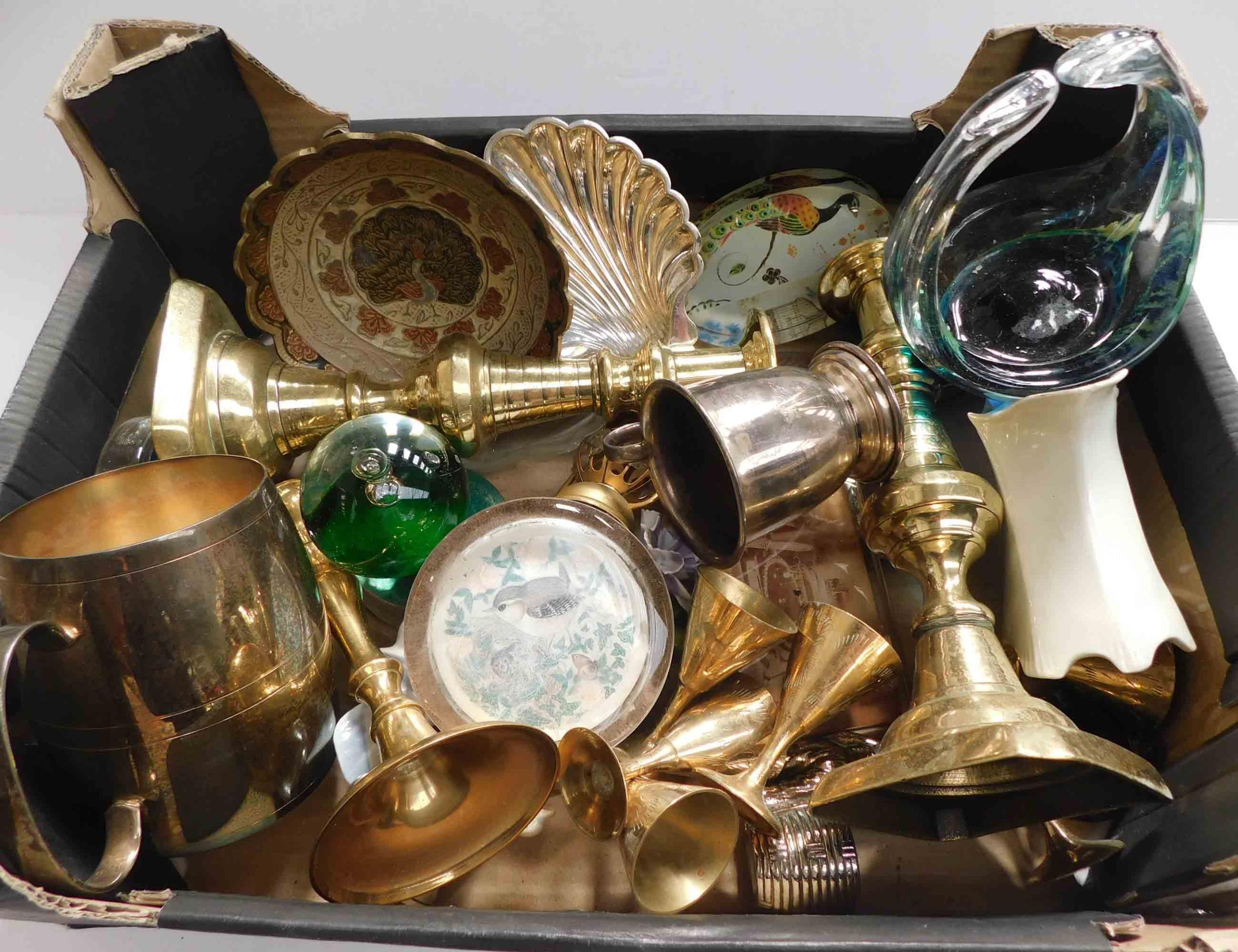 Mixed items including - vintage brass & paperweights
