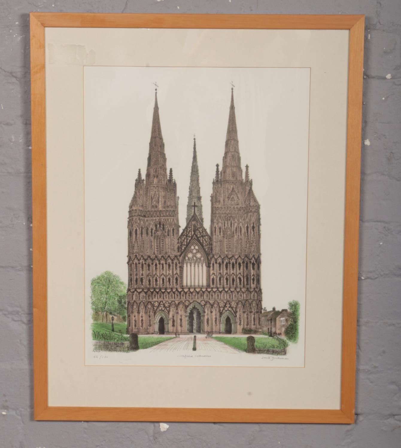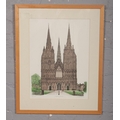 A David Gentleman framed limited edition lithograph print, Lichfield Cathedral, signed in pencil 66/150.