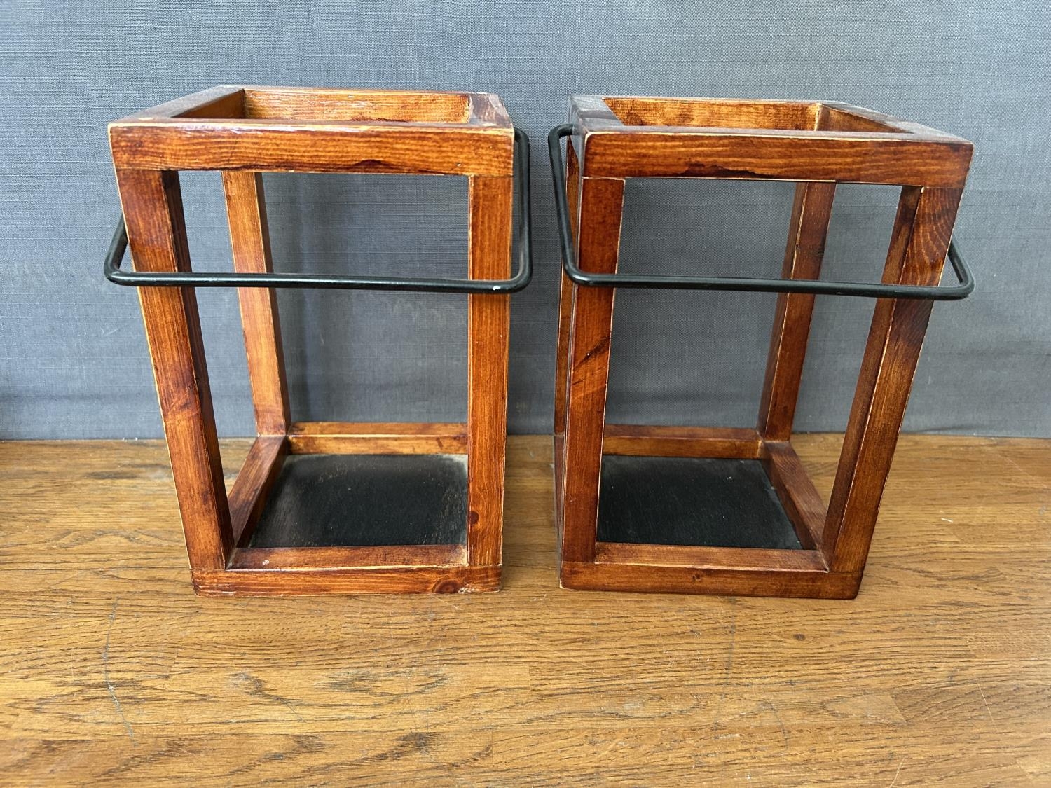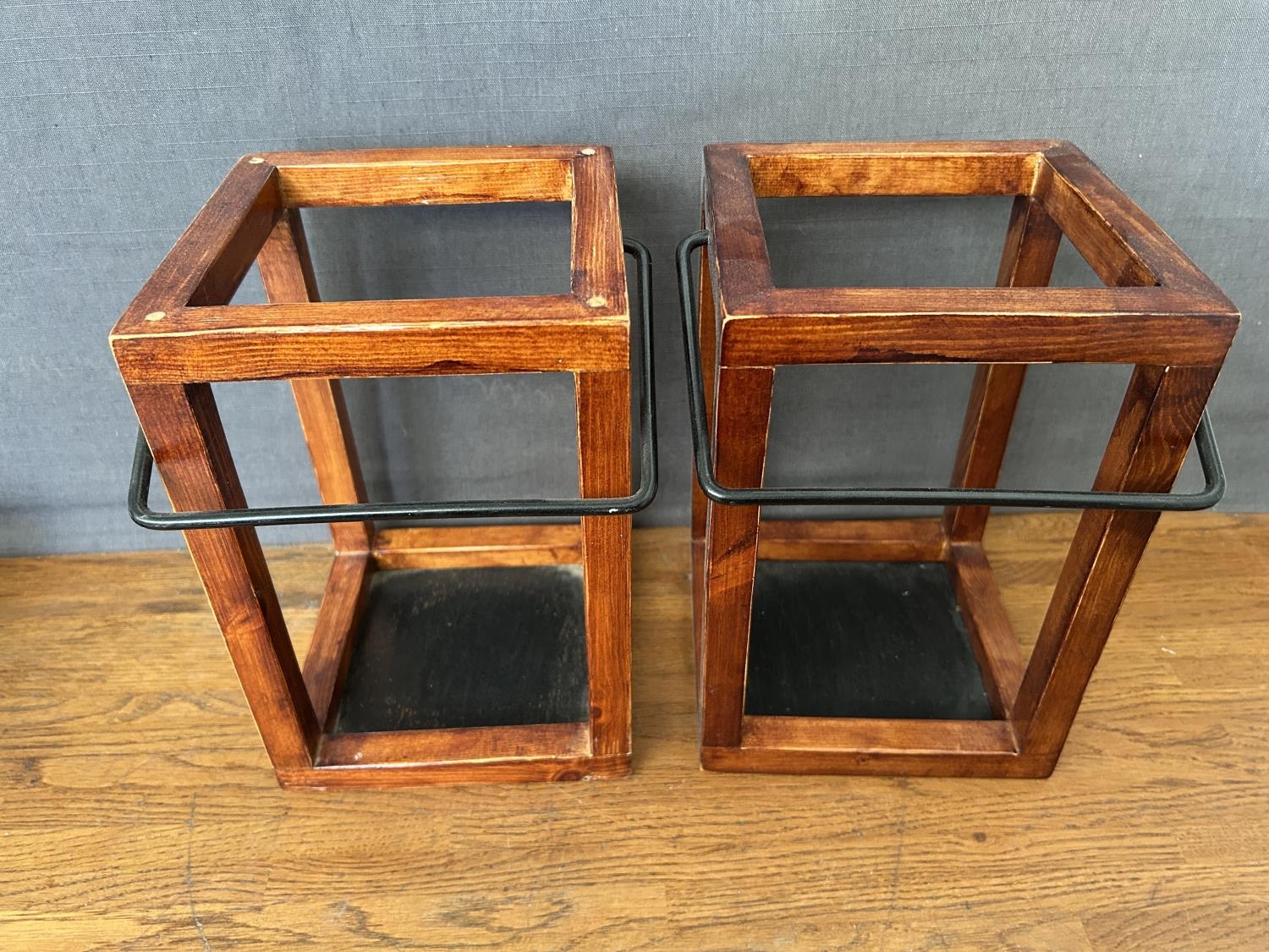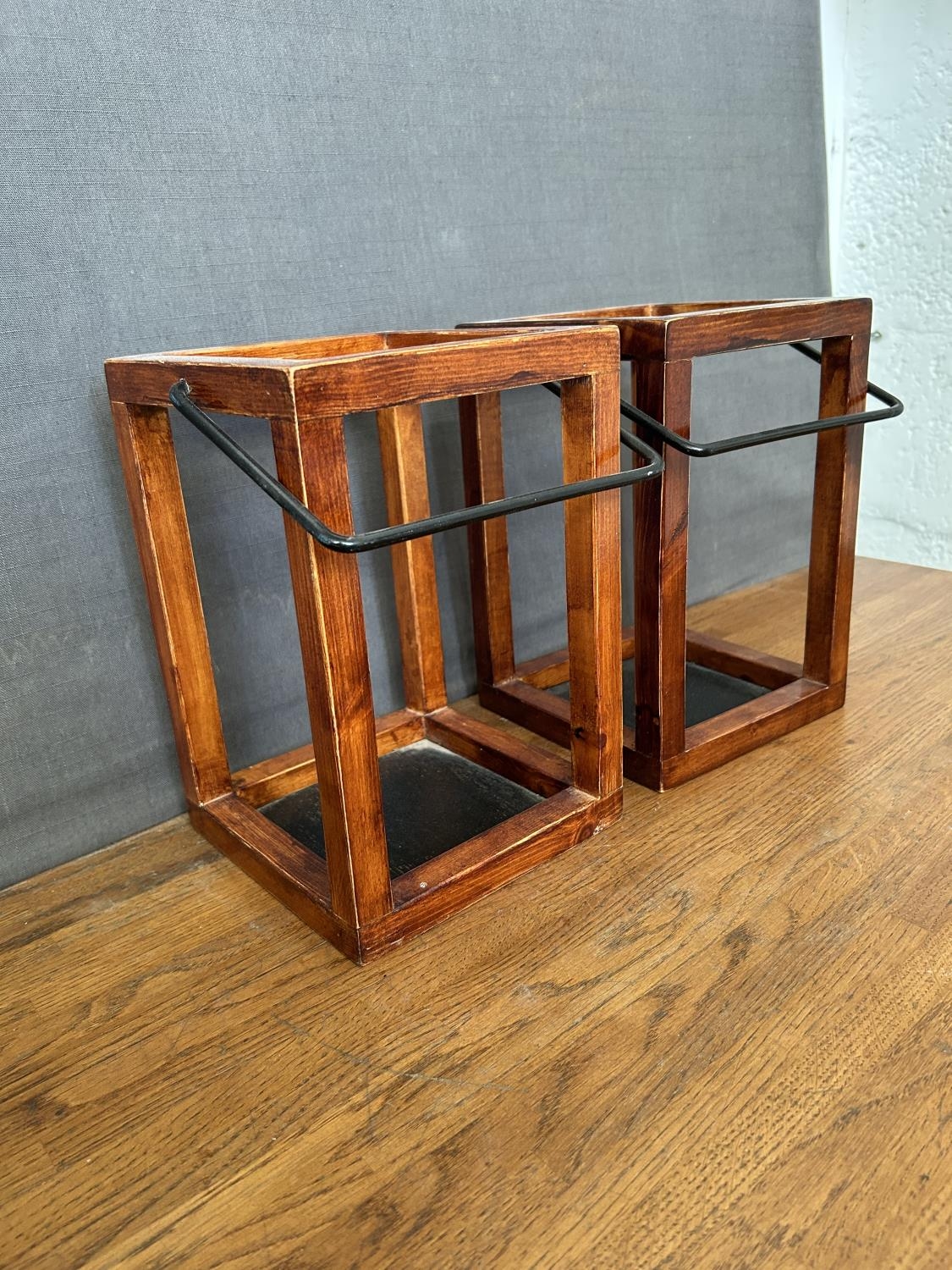 x2 Vintage Rustic Wooden Lanterns with a Metal Handle/ Candle Holders