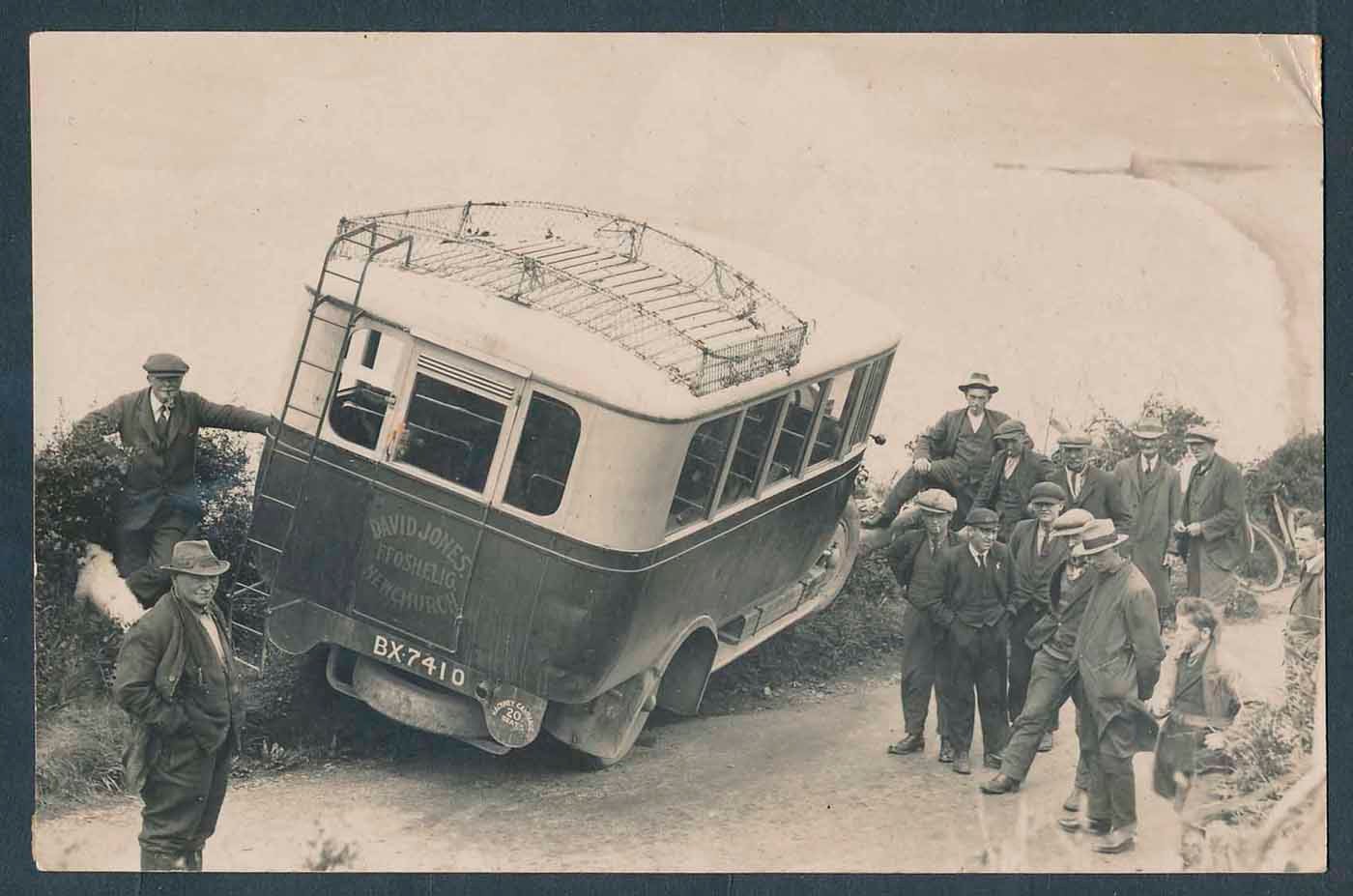 Wales. Misc. coln. filed in 21 flip top photo albums. Comprehensive coln. of Rheidol valley area, incl. RP and ptd. street scenes at Goginan, Territorials at Aberystwyth, Dolypandy camp, Penllwyn incl. P.O., Capel Bangor, Lovesgrove camp, Llanbadarn, Penparke, floods, Ponterwyd, Devils Bridge incl. P.O., general views etc. Aberath RP and ptd. street scenes, Pennant, Cross Inn, Llanon etc. Aberayron incl RP visit of General Booth (6), visit of Lloyd George, bus accident (see photo), Lampeter and Aberayon light railway incl. RP station at Aberayaon, opening of railway, some photos noted. RPs and ptd. Llanon, opening of Llansantffraid school etc. Ystwyth valley incl. RPs Clogfawr lead mine, Ysbytty Ystwyth, Llanafan, Crosswood etc. Few photos noted. Qty. approx. 1800 (2B)