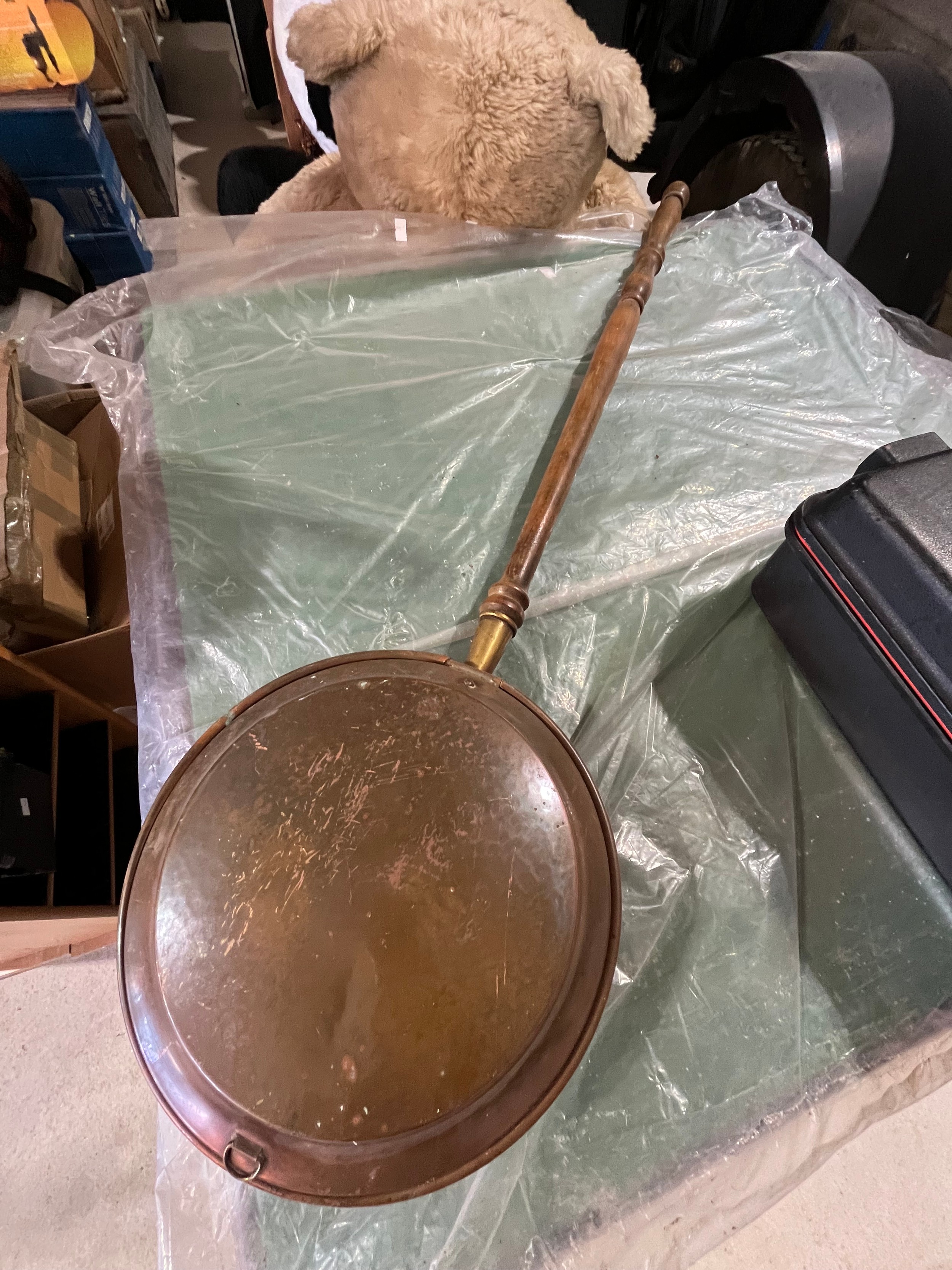 Antique copper Victorian bed warming pan