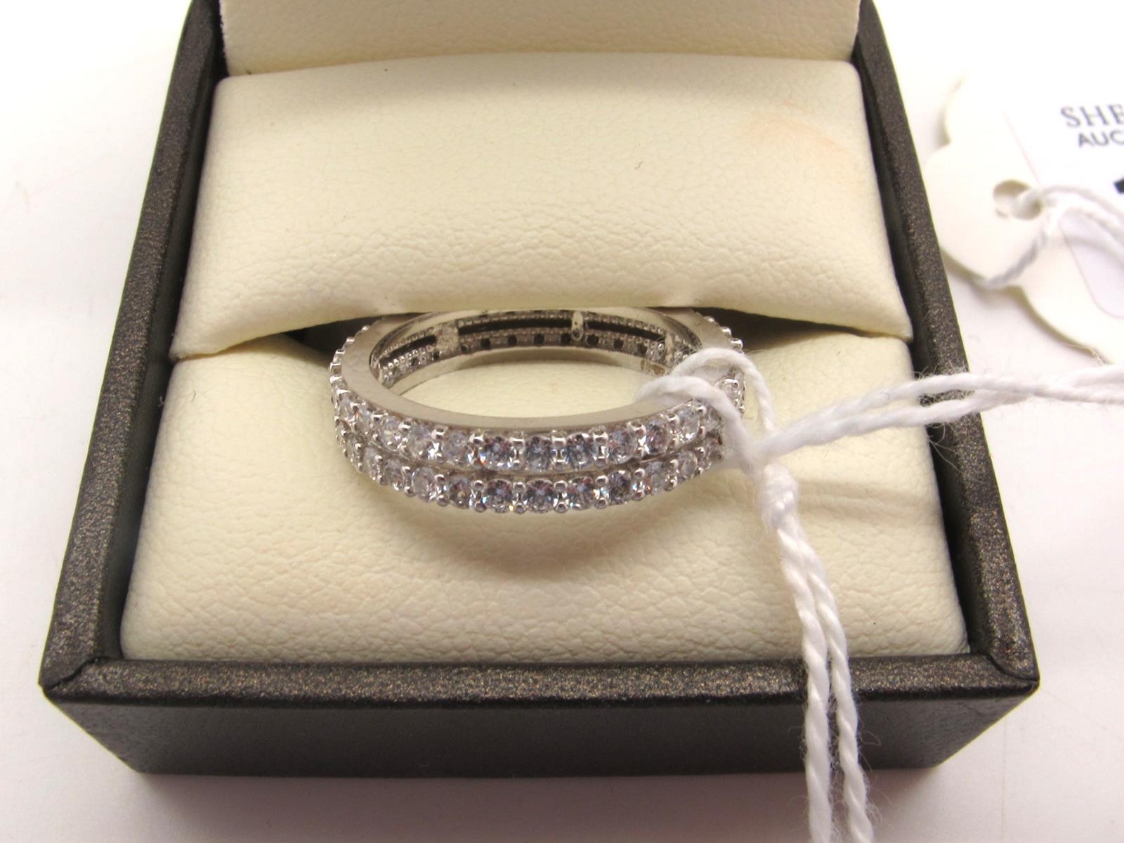 A Modern 18ct White Gold Two Row Band, claw set throughout (finger size L1/2).