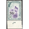 1961 50c on 5s with Type III surcharge, lower marginal with frame plate 1a, unmounted o.g.  A rare stamp of which just six sheets were printed, with a plate number example being exceptional.  BPA Certificate (2001).  SG 75b, £