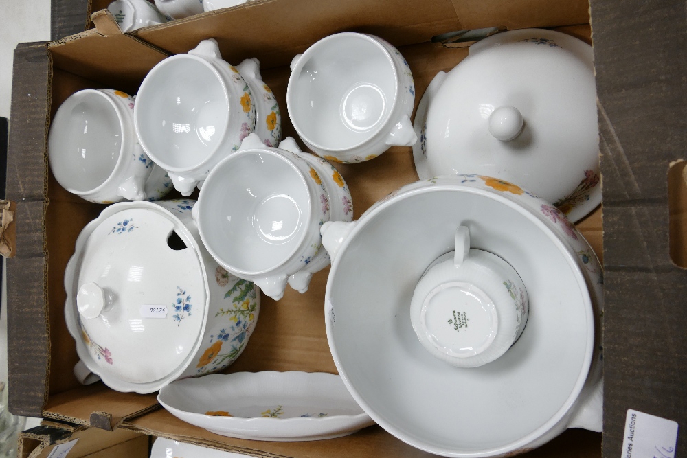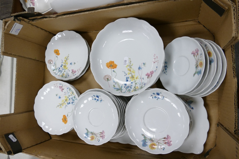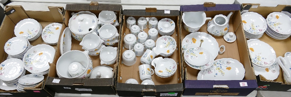 A very Large Collection of Seltmann Weiden Bavaria Floral decorated Tea & Dinner ware to include: dinner plates, tureens, soup bowls, tea set coffee pot etc 117 pieces in five trays