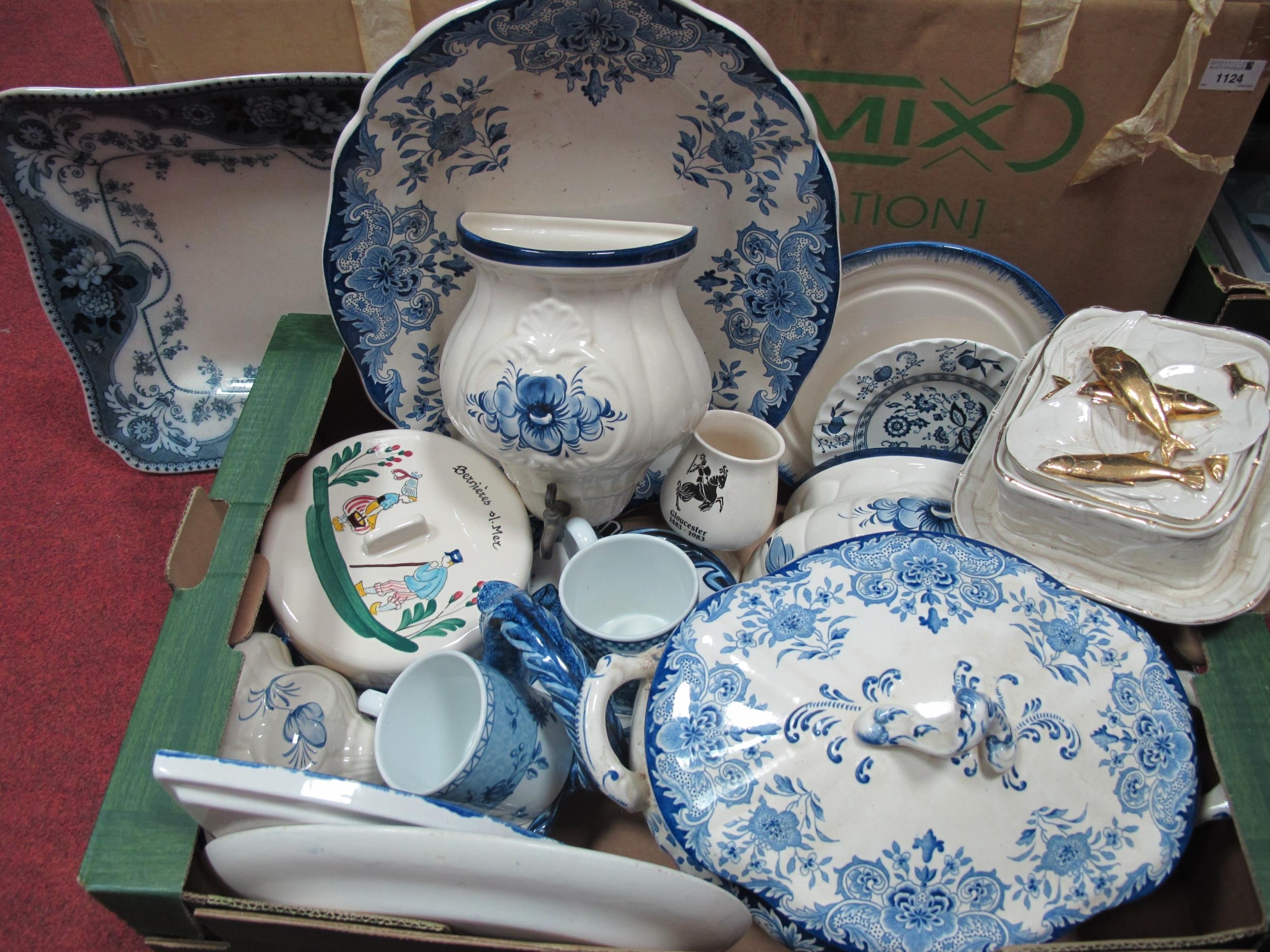 Blue-White Tureen, XIX Century meat plate, sardine dish, etc:- One Box.