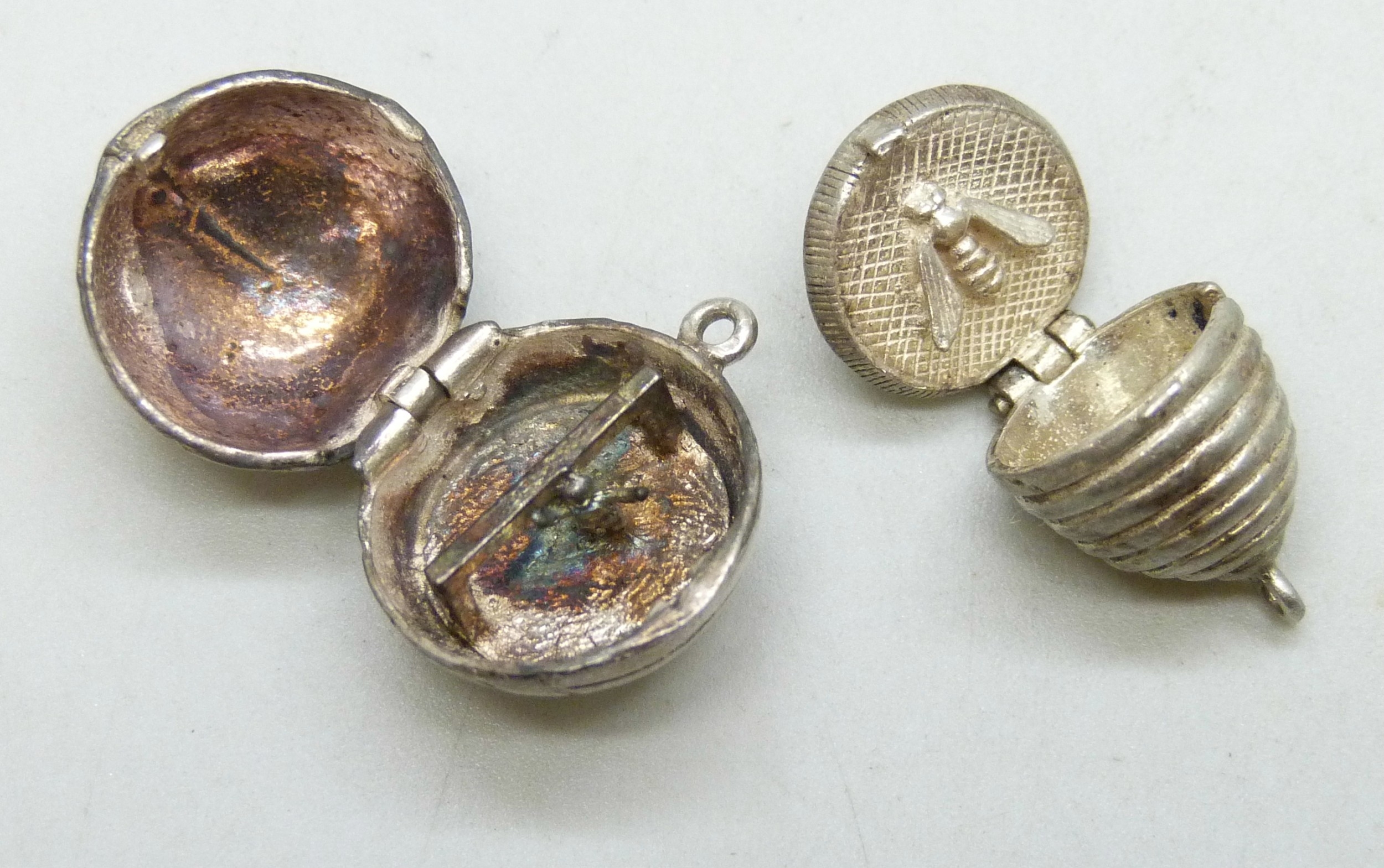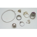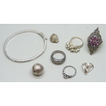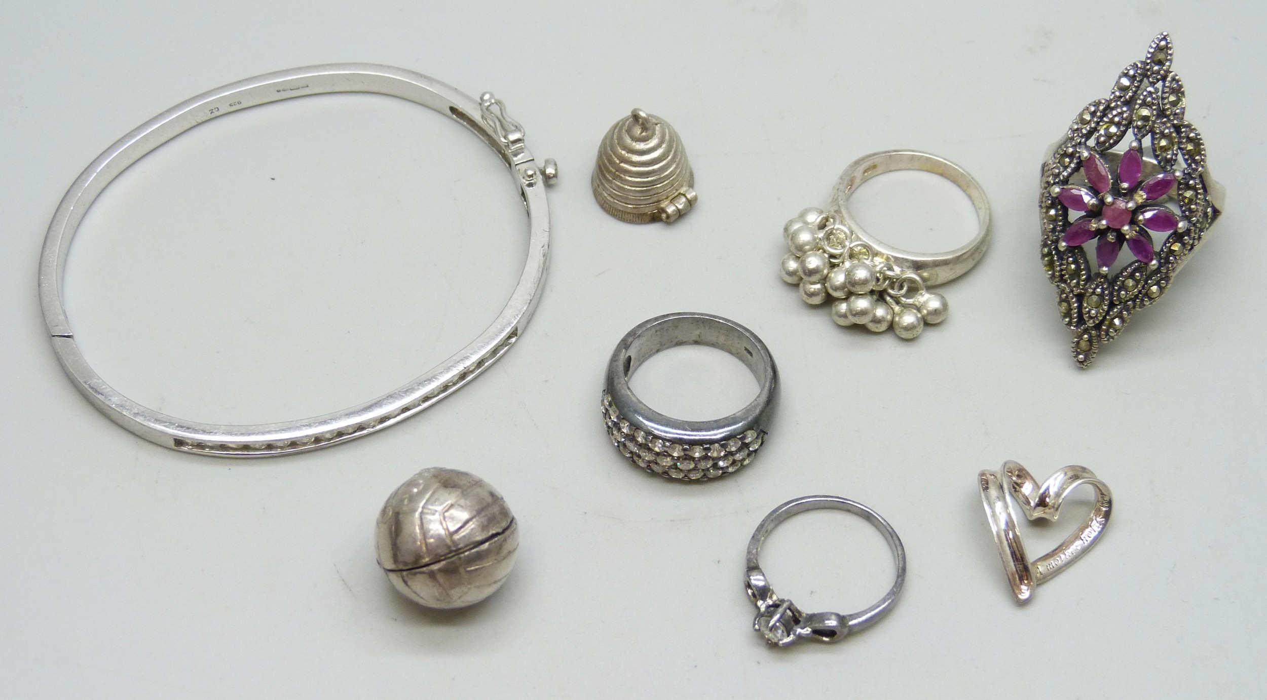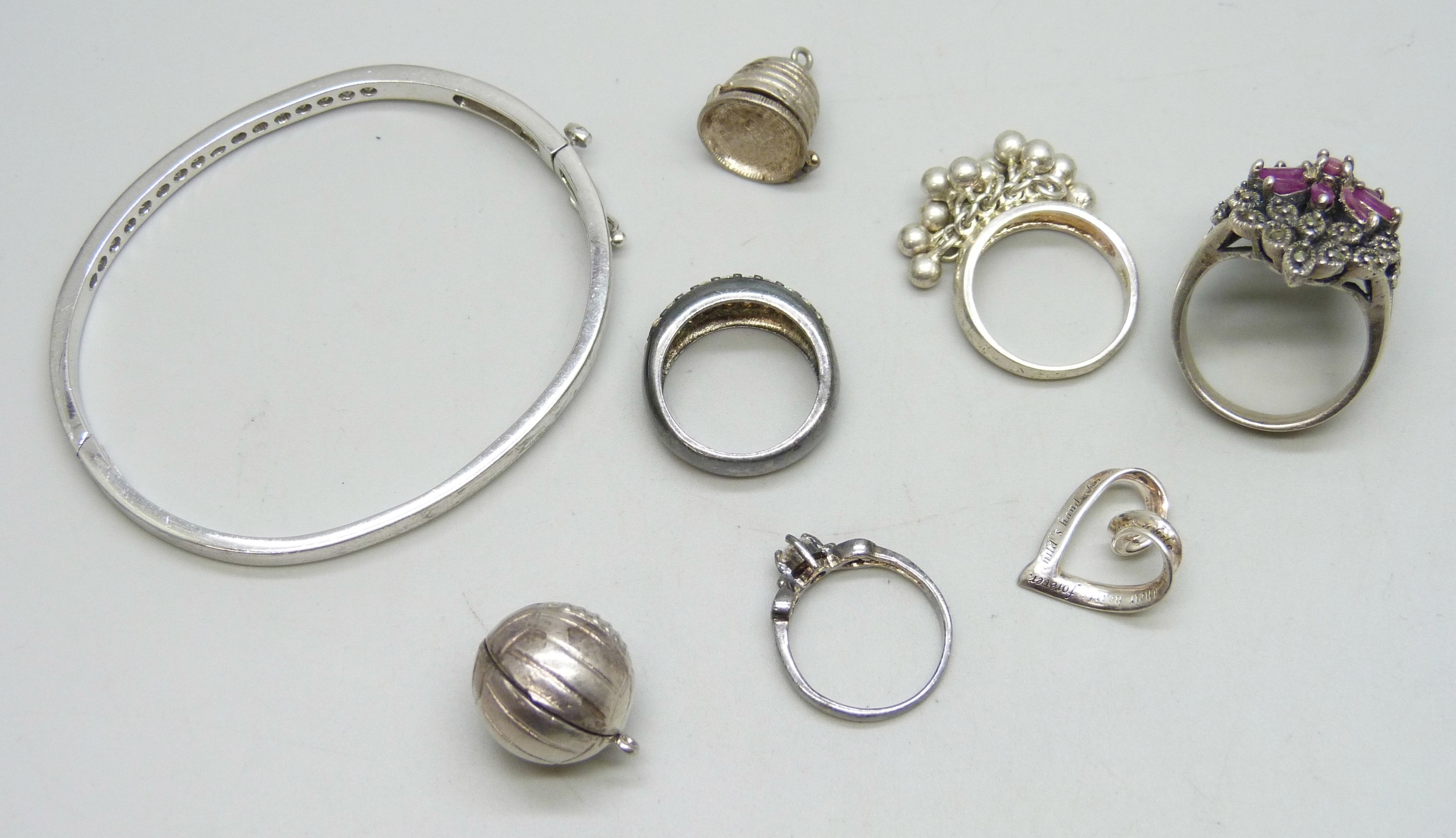 A collection of silver jewellery, and a white metal pendant in the form of a football (opens), 56g total