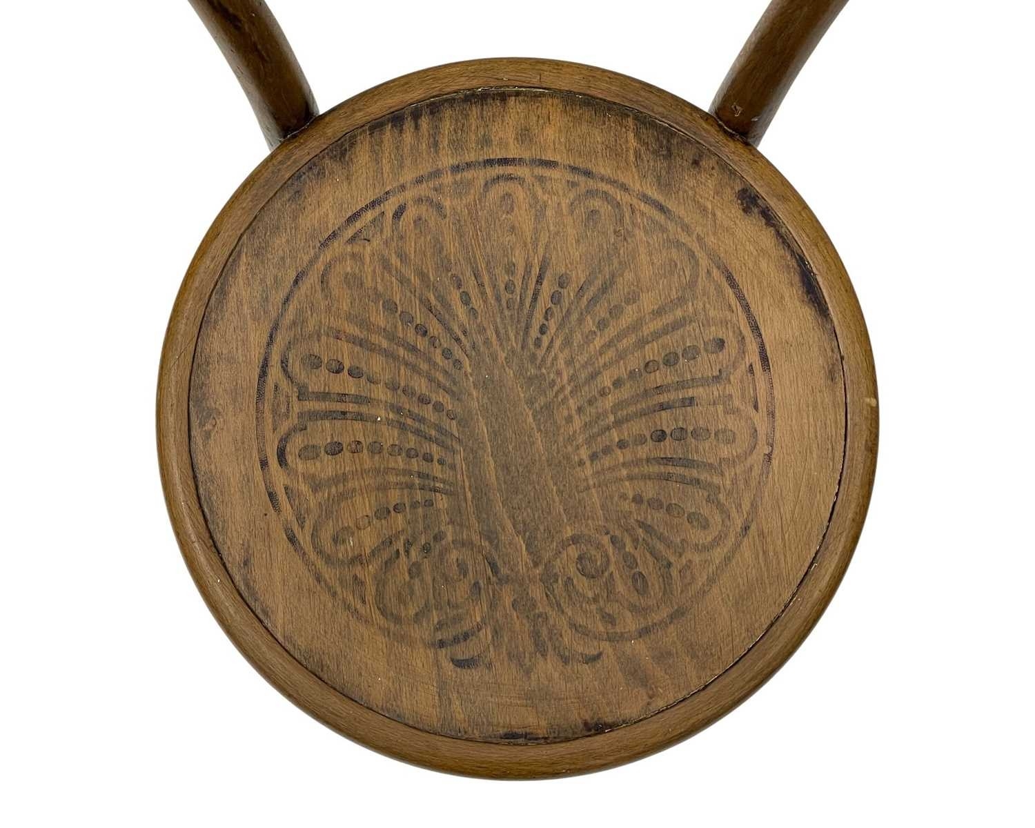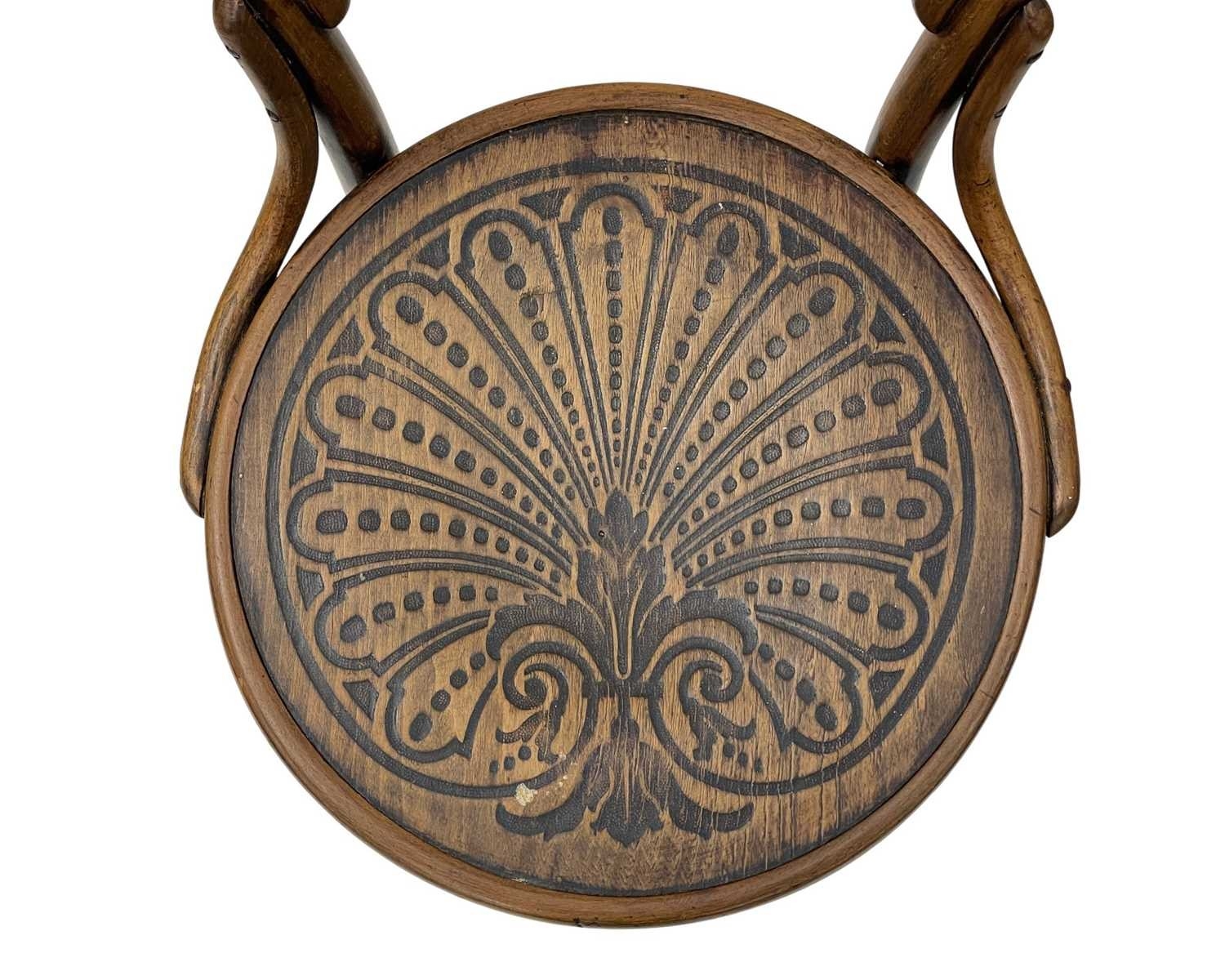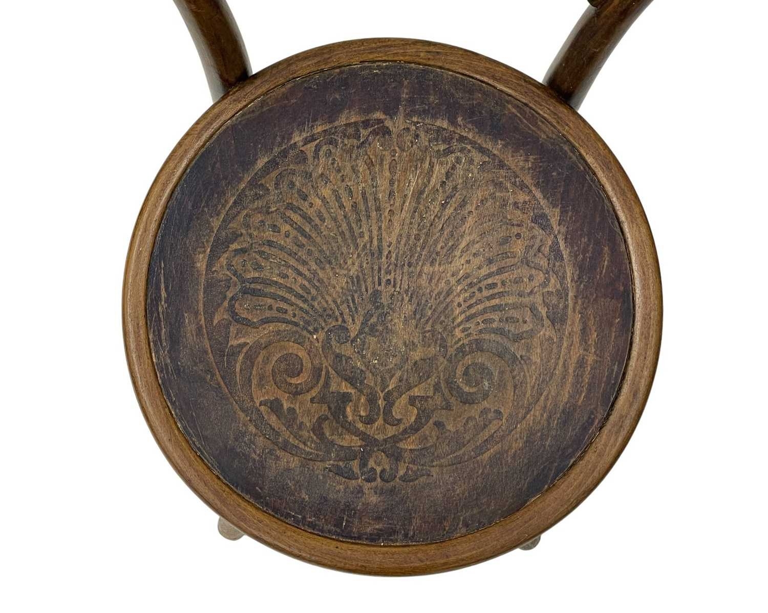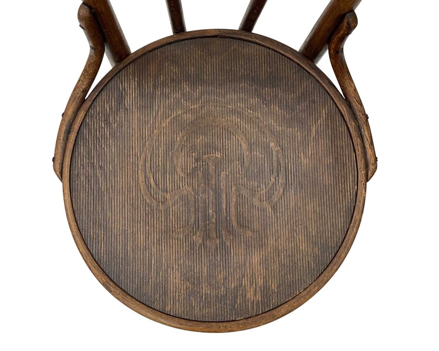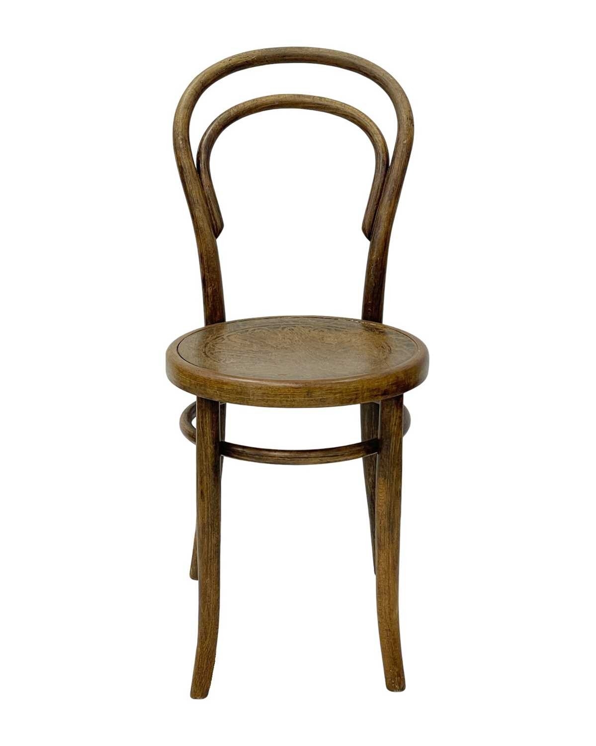 A set of seven bentwood bistro chairs. Thonet style, early 20th century, with double hoop backs and anthemeon stamped circular seats, height 89cm, width 44cm, depth 45cm, together with one other similar chair (8).