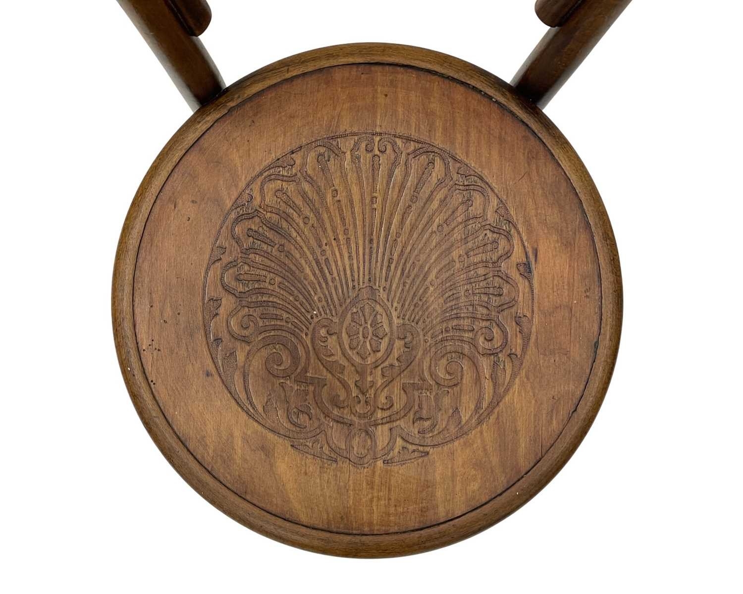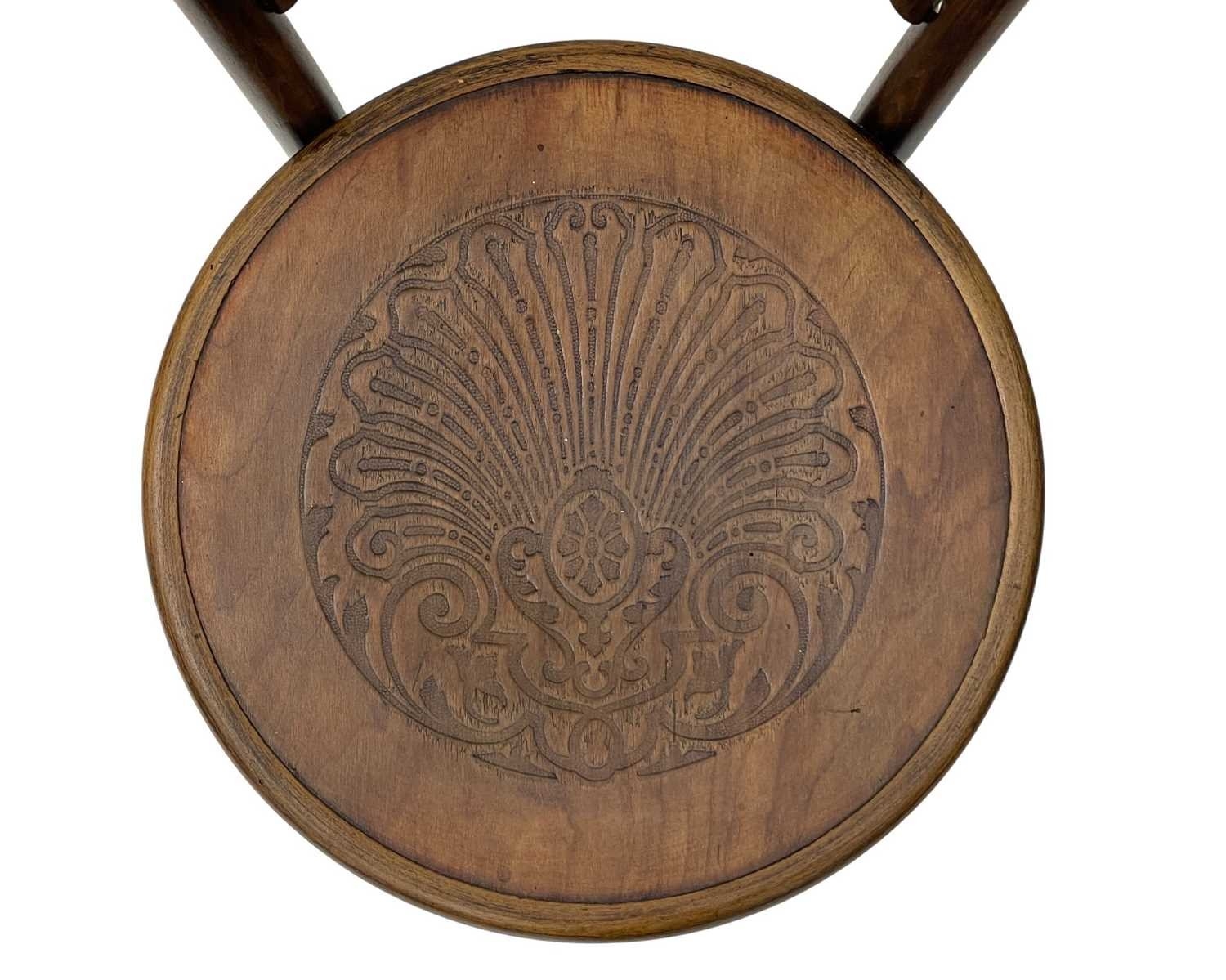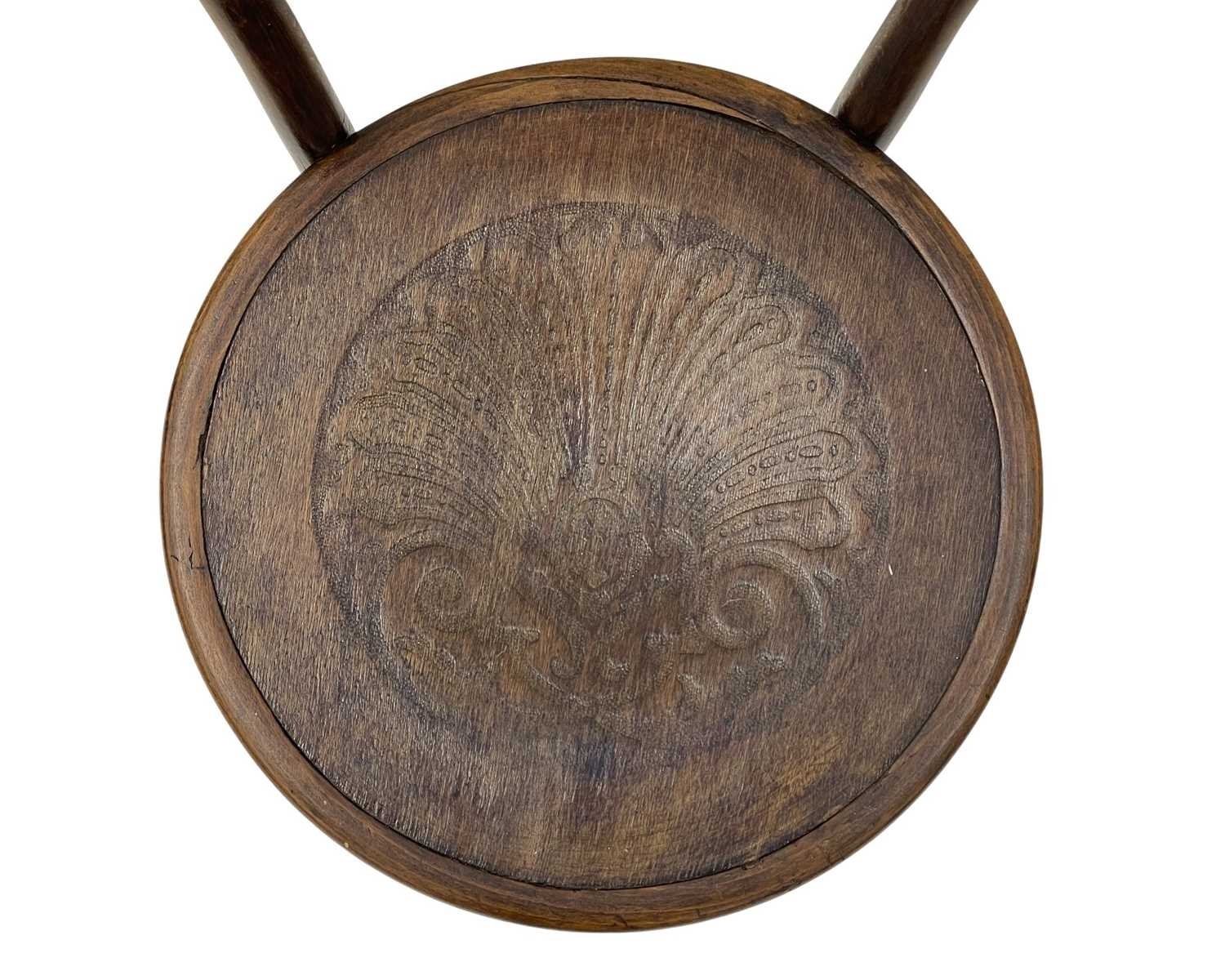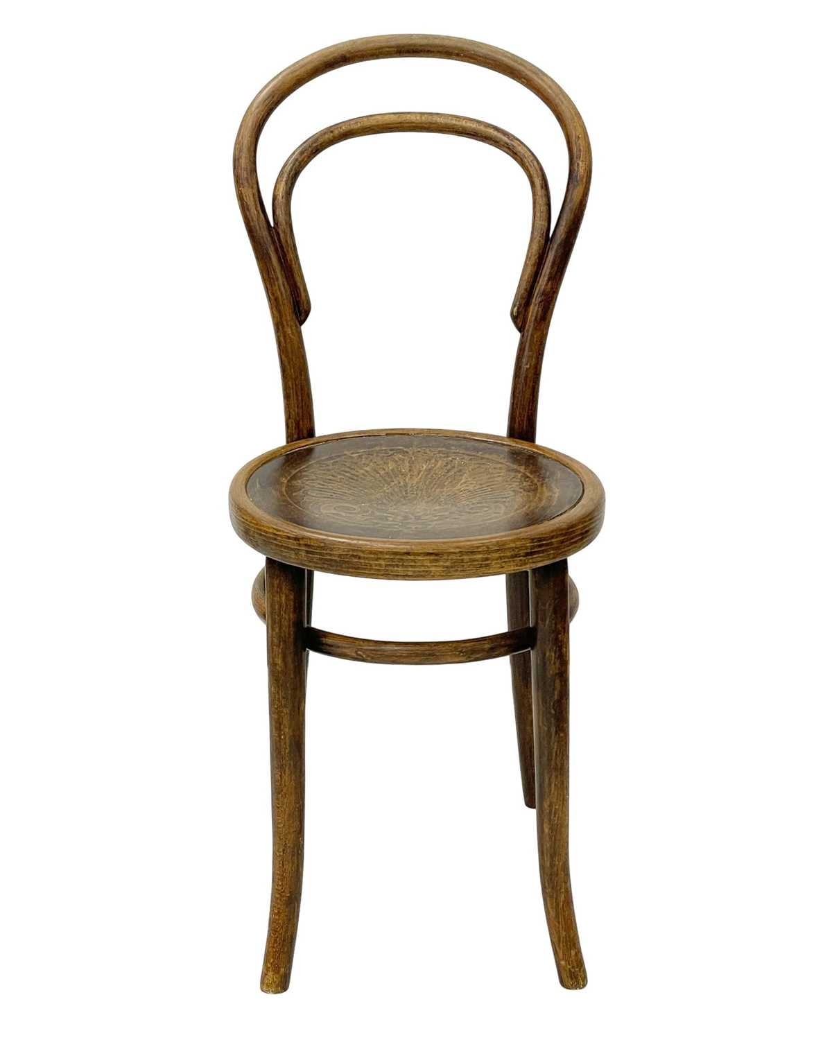 A set of seven bentwood bistro chairs. Thonet style, early 20th century, with double hoop backs and anthemeon stamped circular seats, height 89cm, width 44cm, depth 45cm, together with one other similar chair (8).
