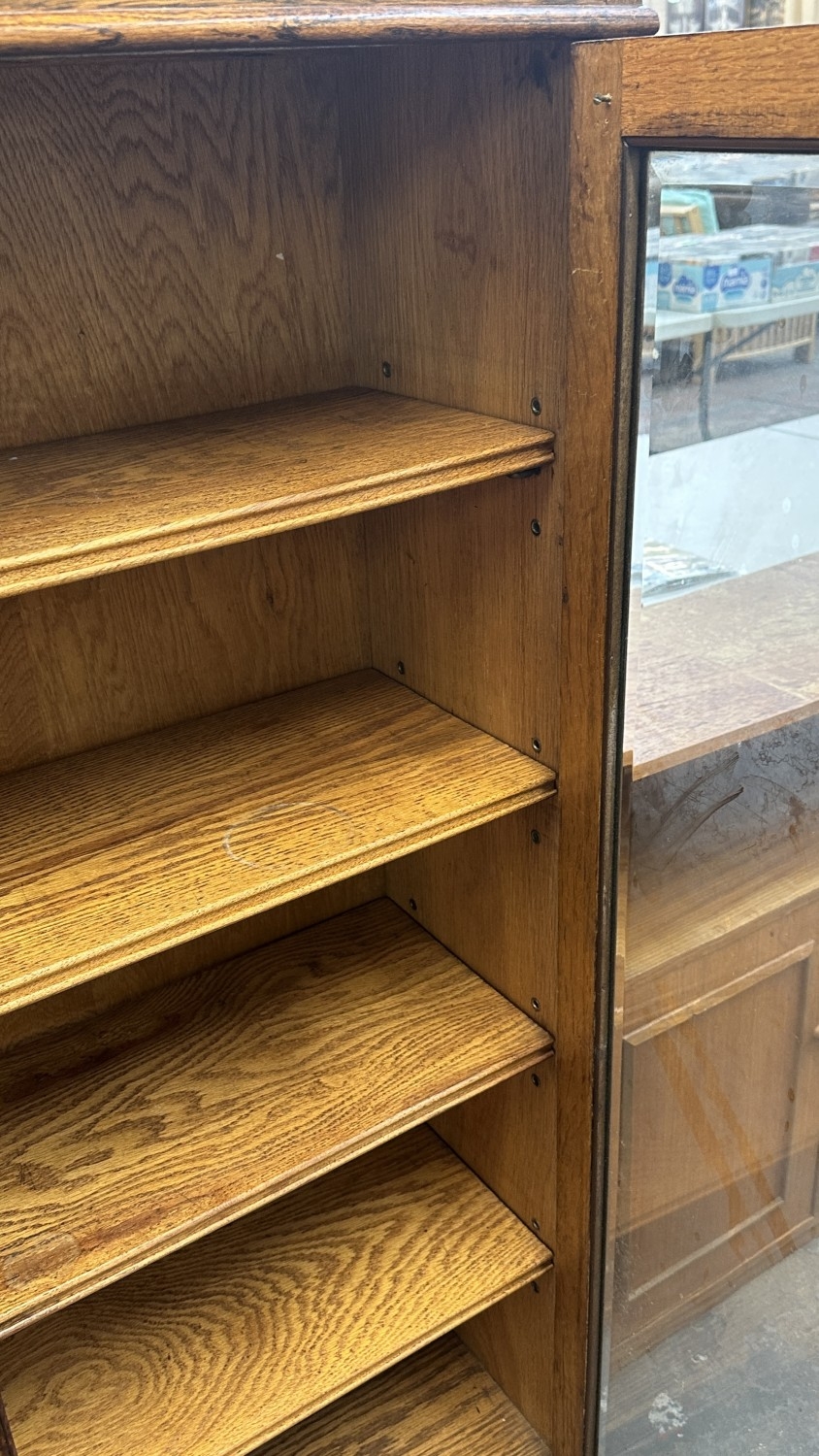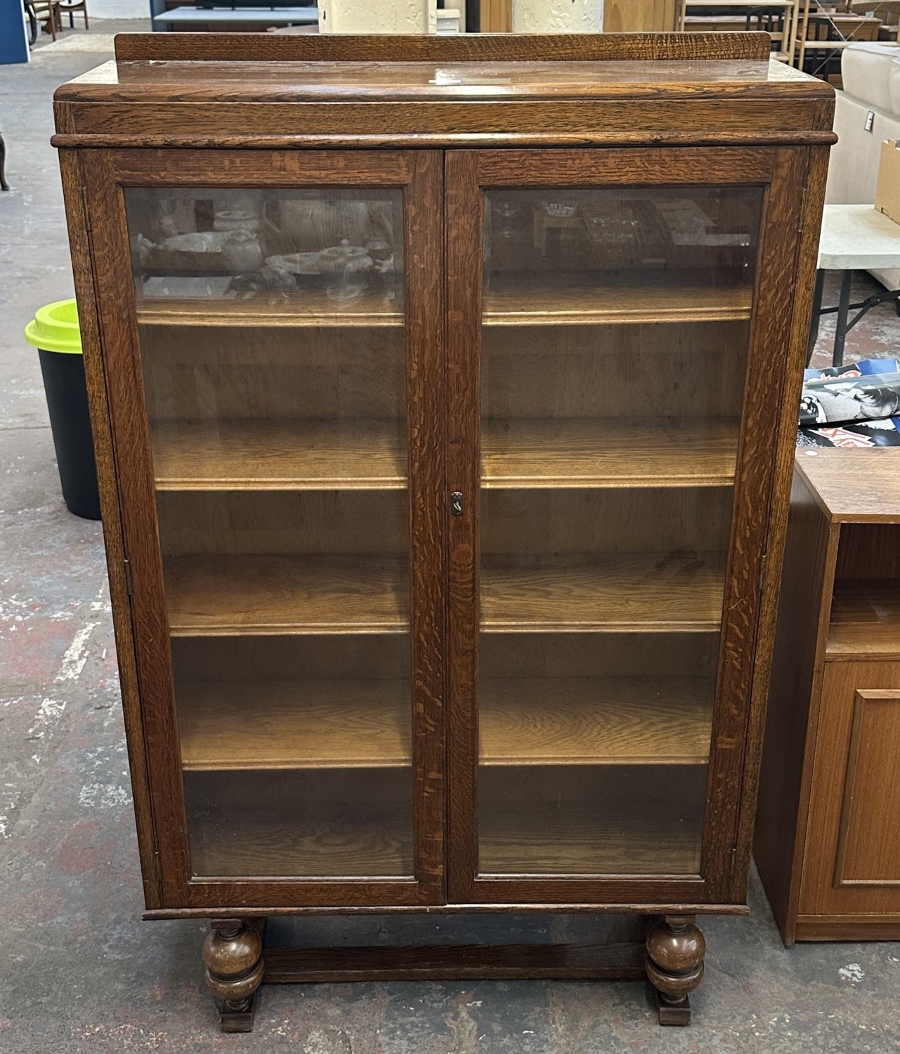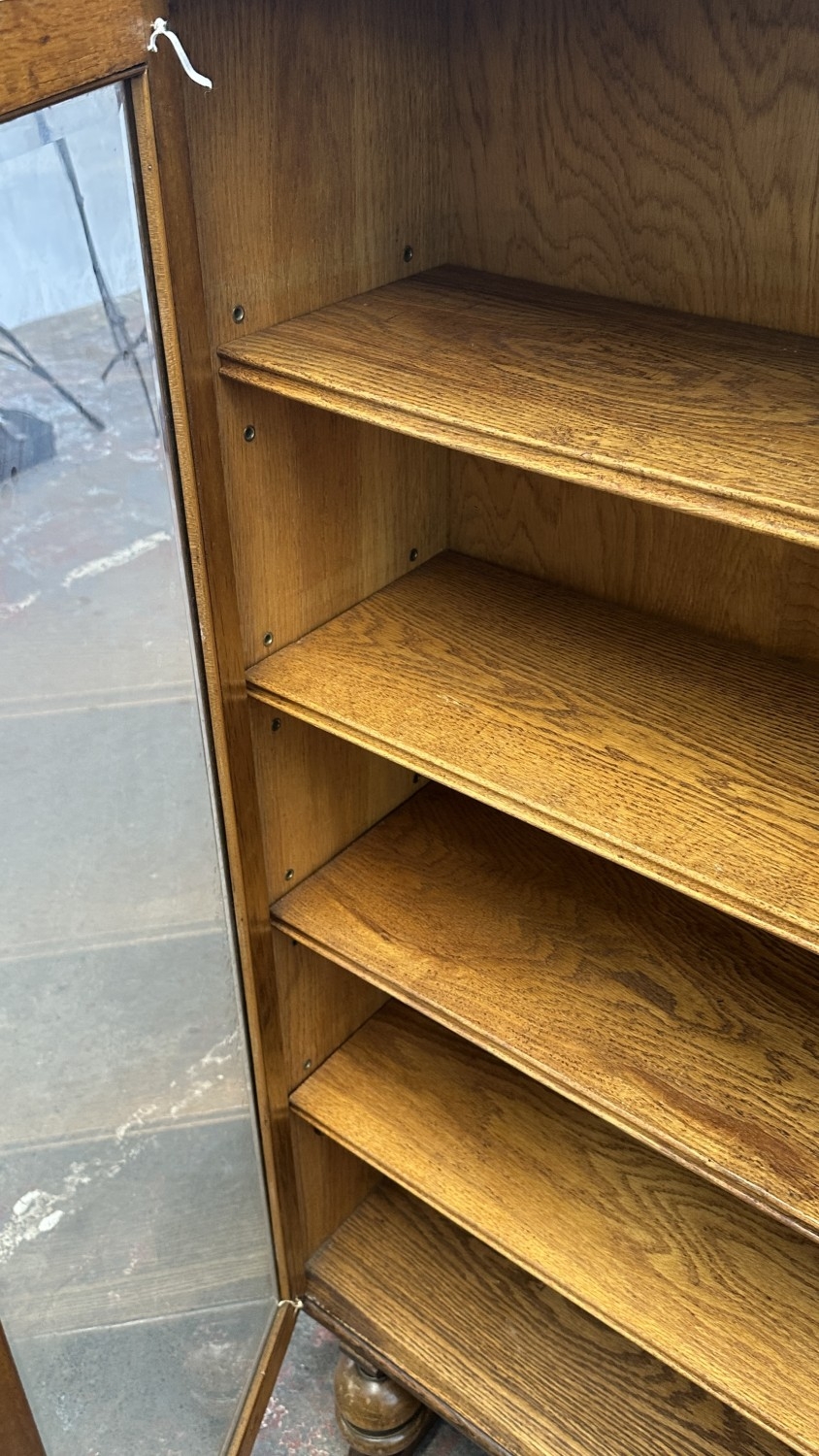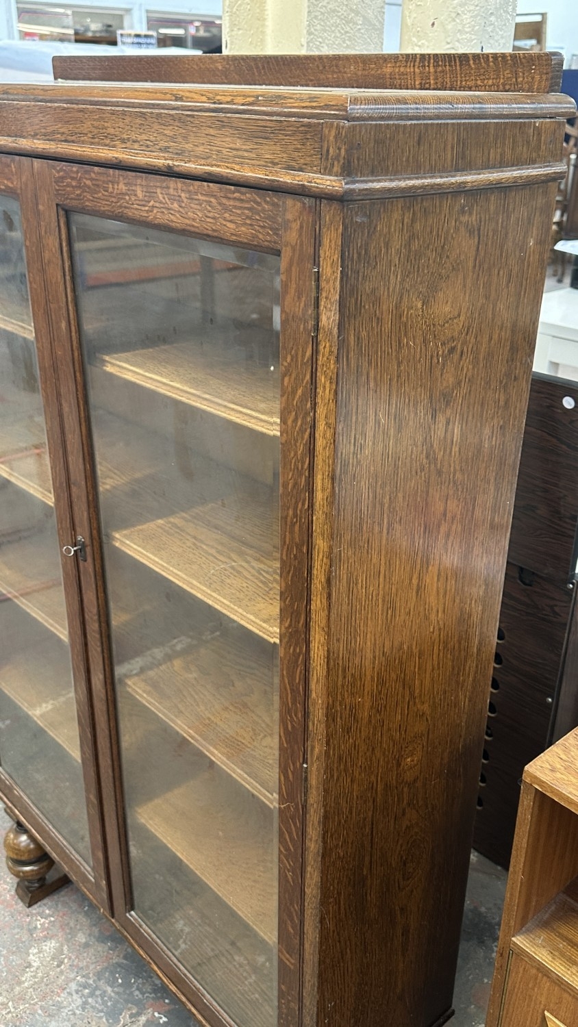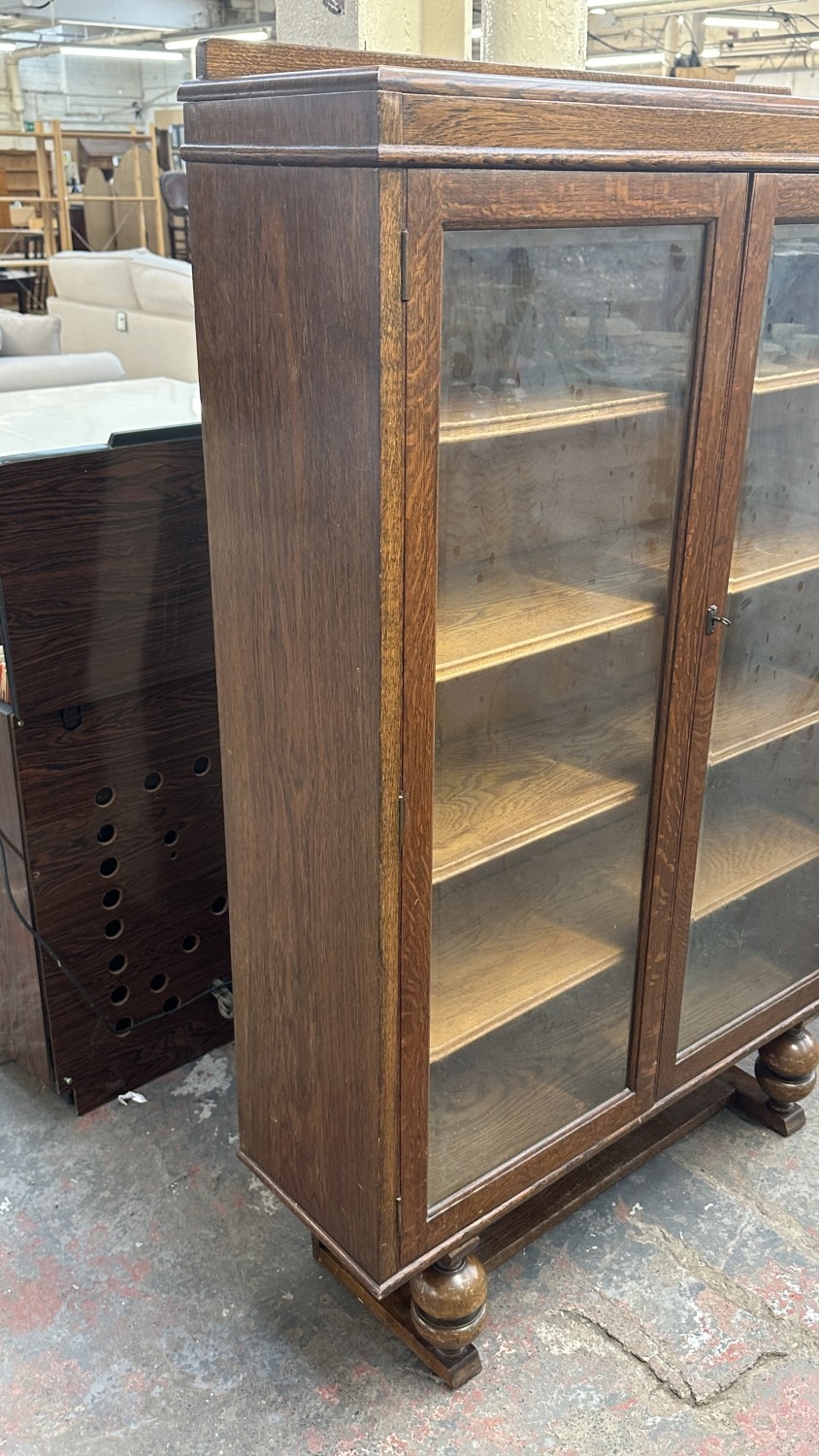 A 1920s/30s oak glazed bookcase on baluster supports - approx. 149cm high x 95cm wide x 30cm deep