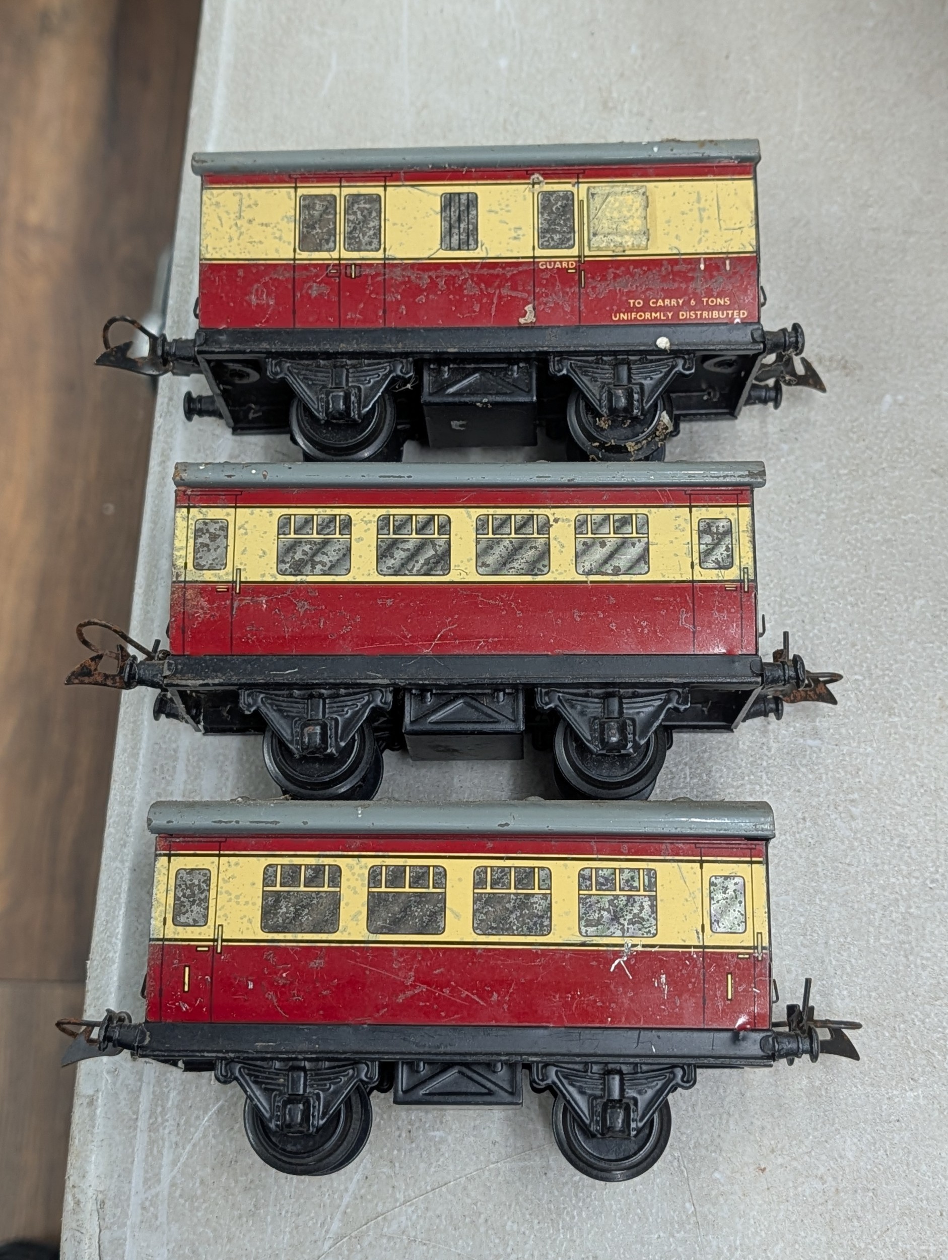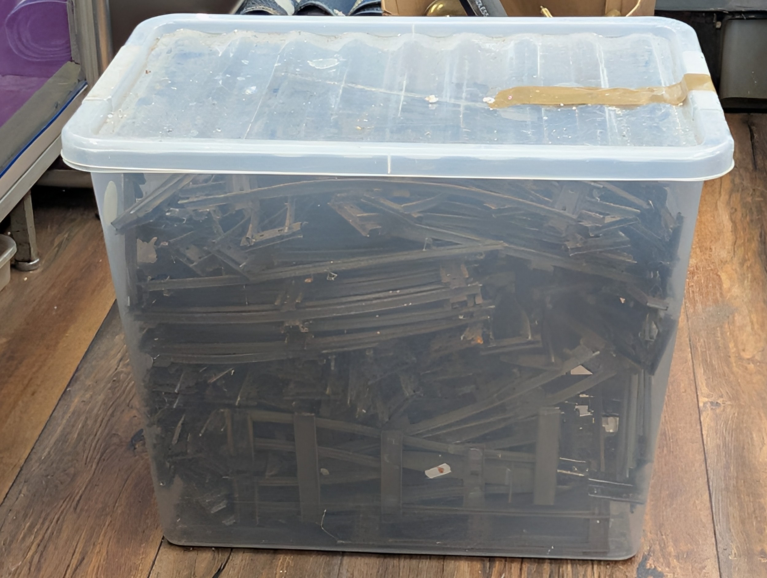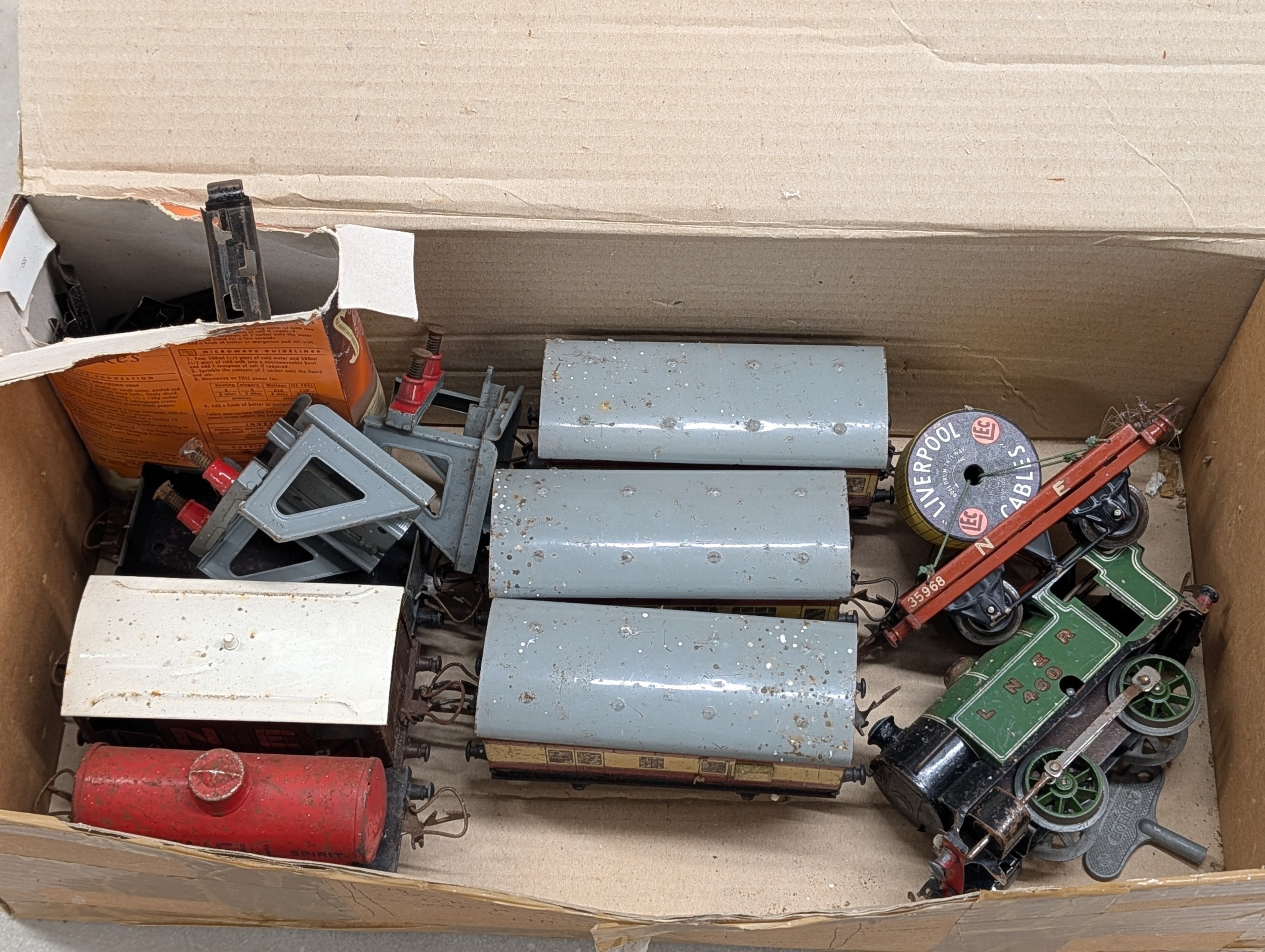 A Collection of Hornby O Gauge Tinplate Clockwork Trains and Accessories, Plus Large Storage Tub Of Track