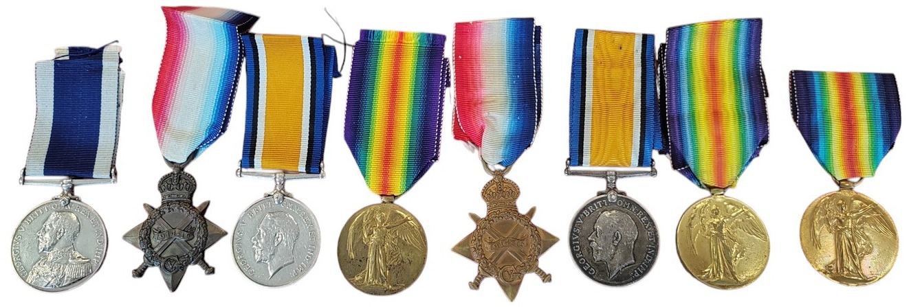 plus 1914-15 Star, BWM (2), Victory Medals (9) and Mercantile Marine War Medal (2) to various, mixed condition, includes some copies of medal rolls etc., viewing recommended. (½B)