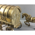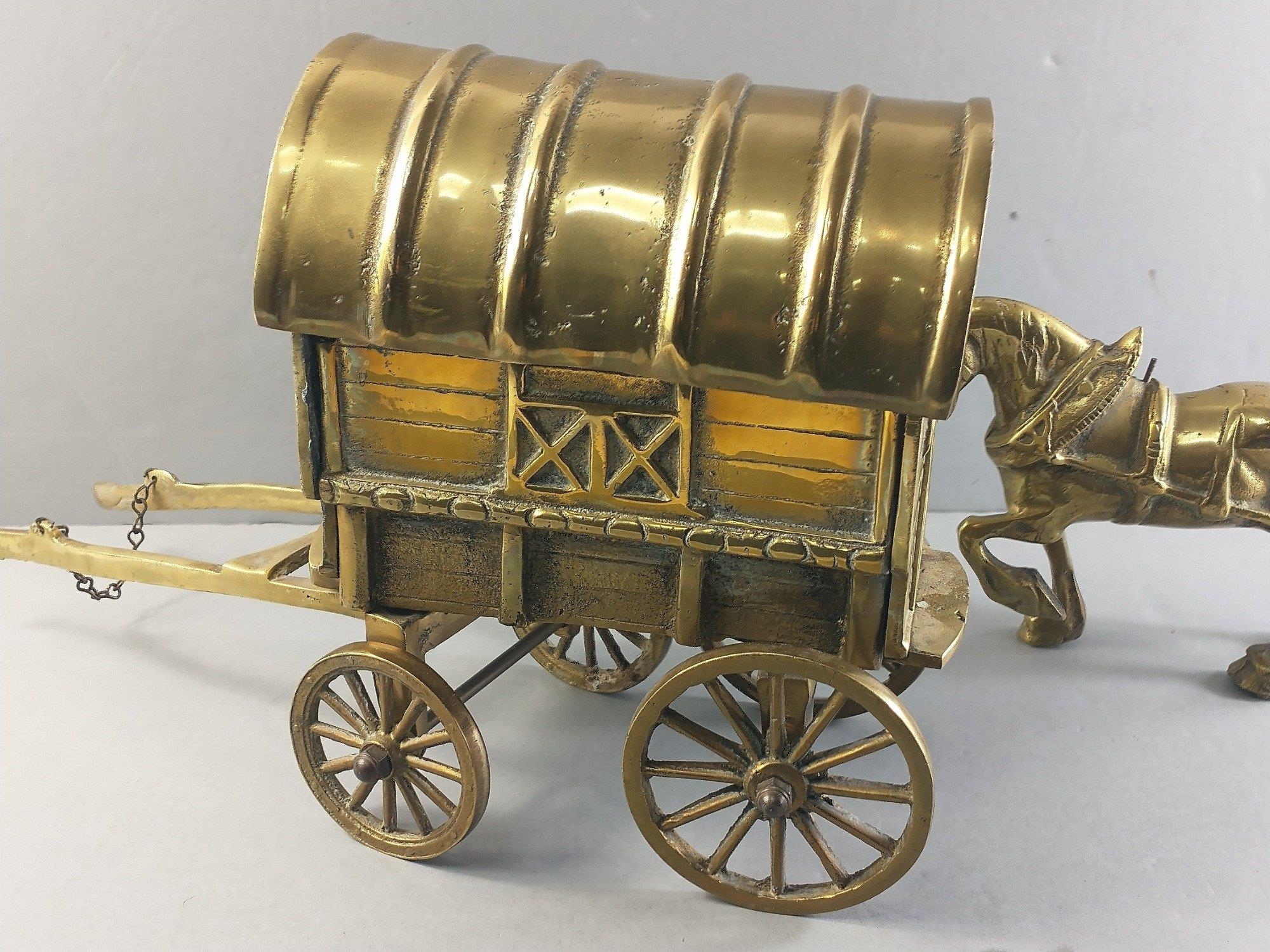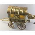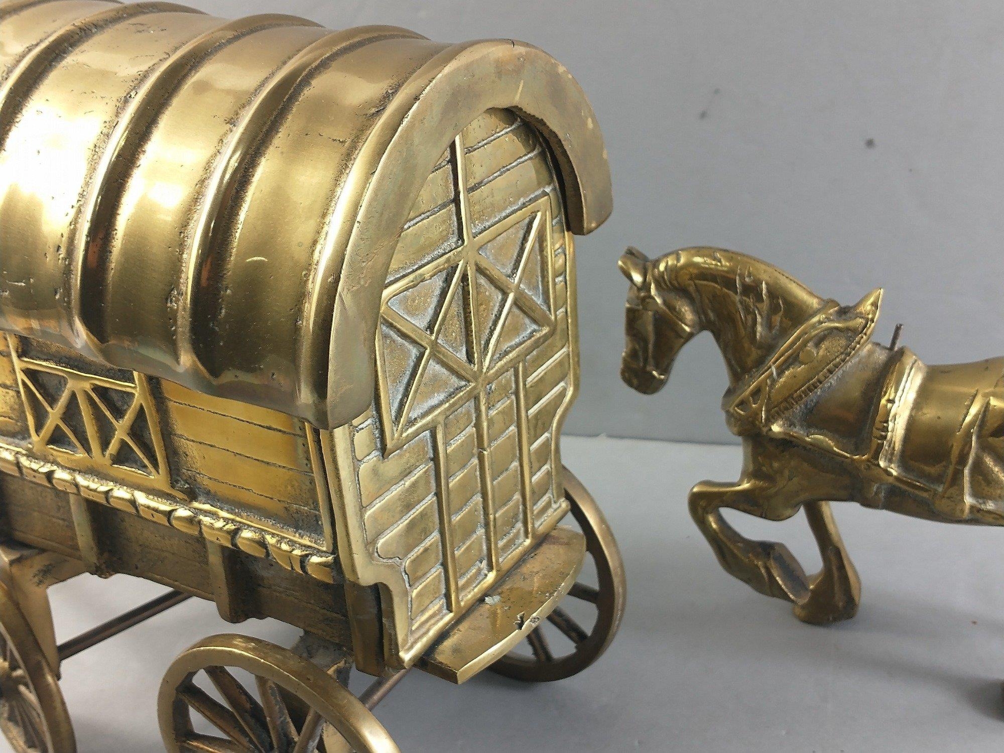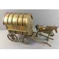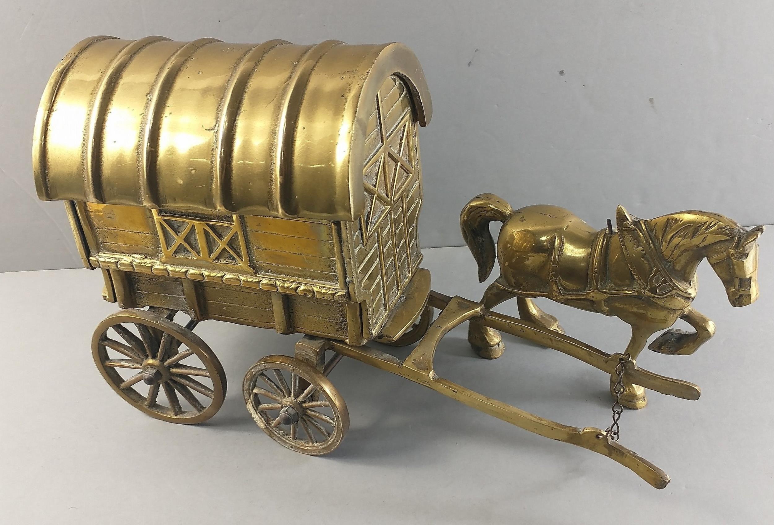 A large heavyweight vintage brass gypsy wagon and horse. Horse measures 23cm approx, wagon (with traces) approx