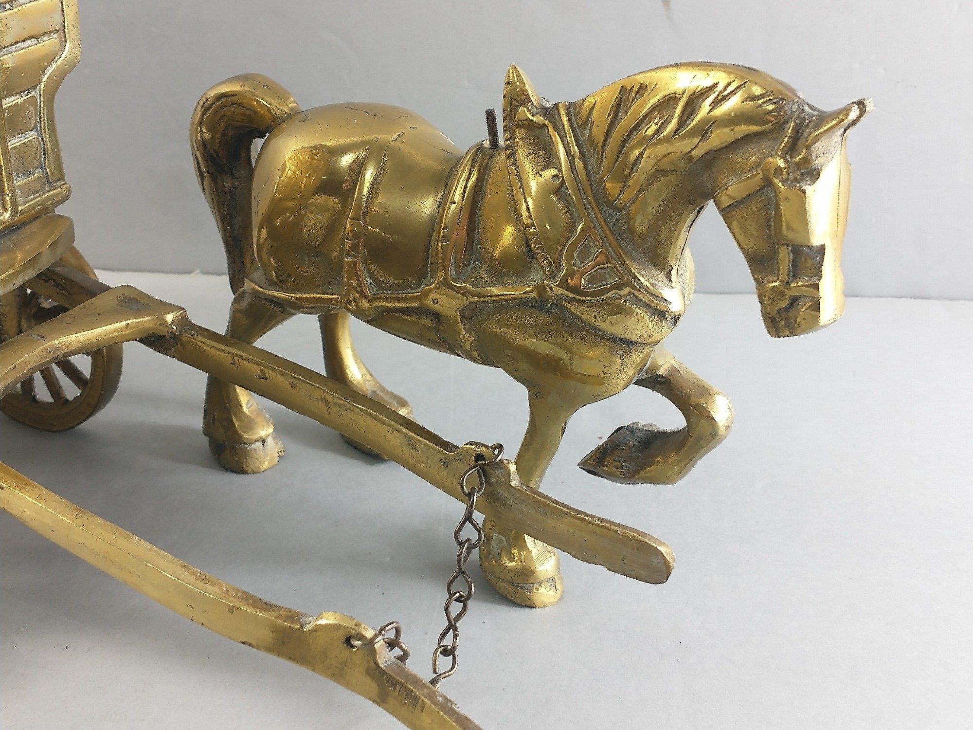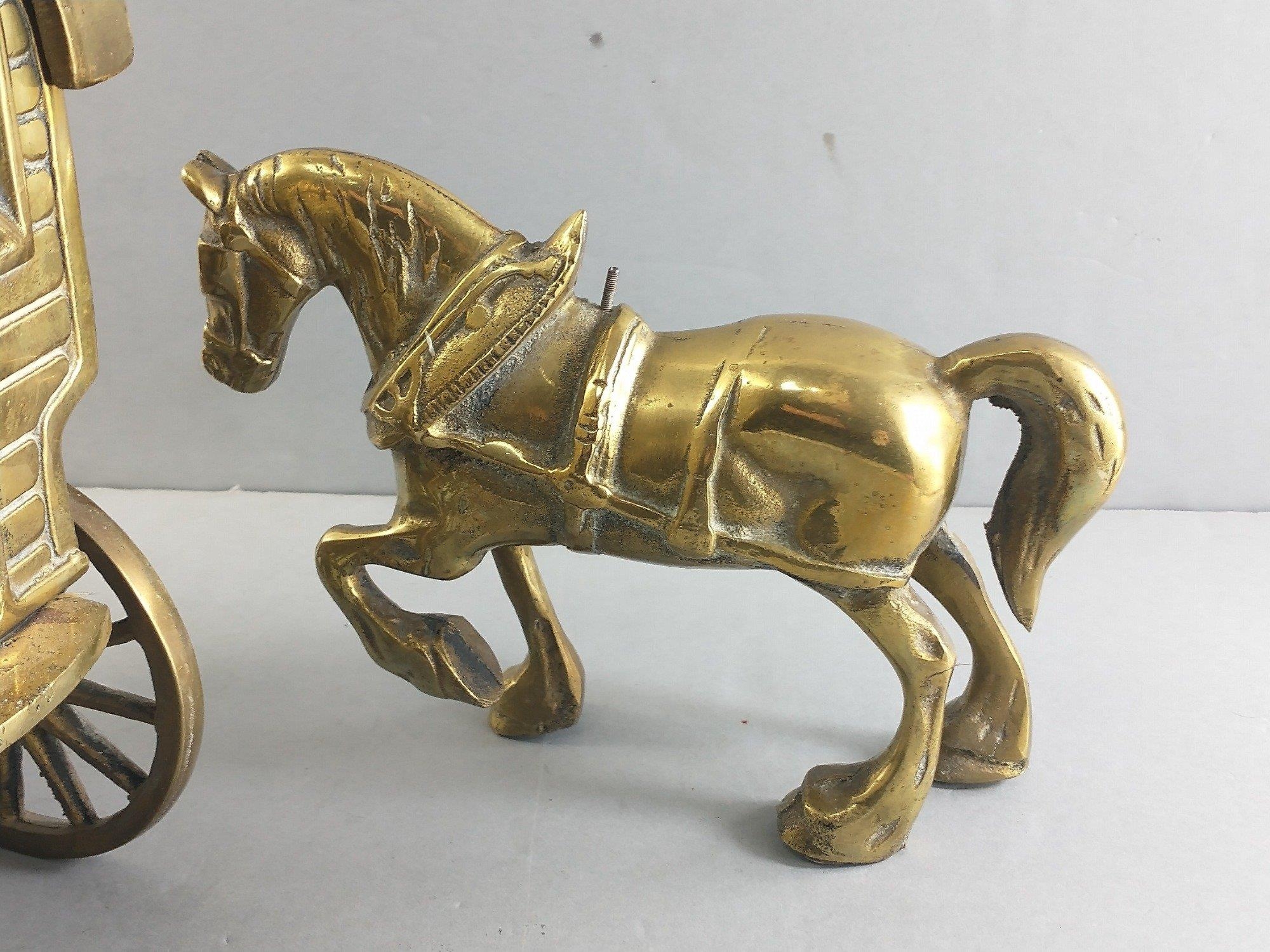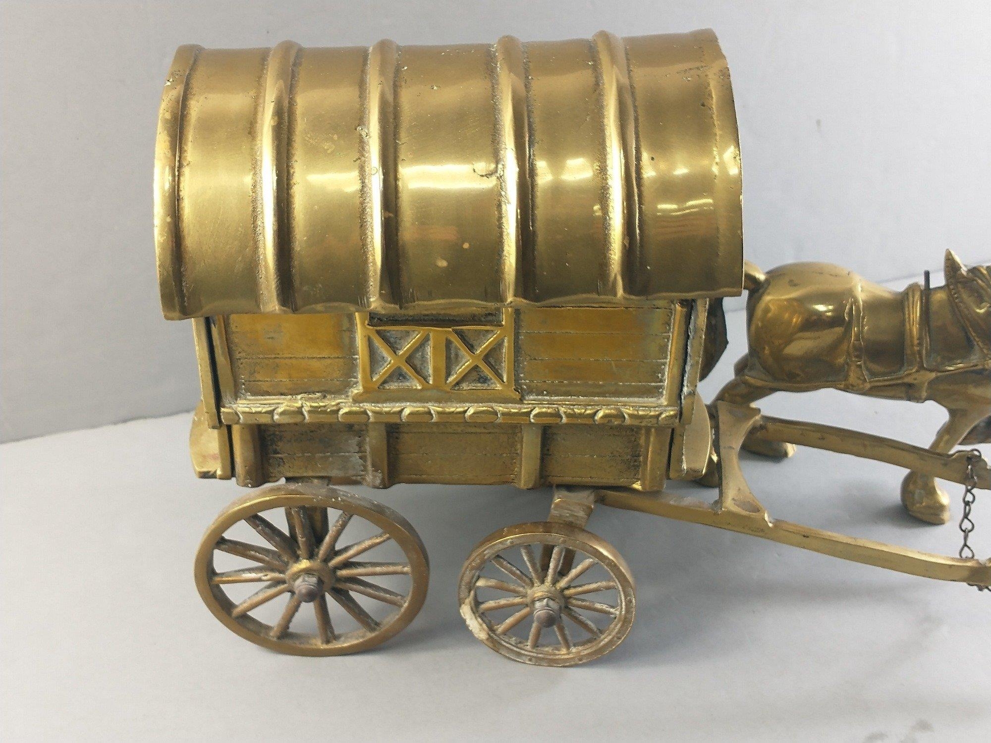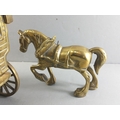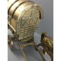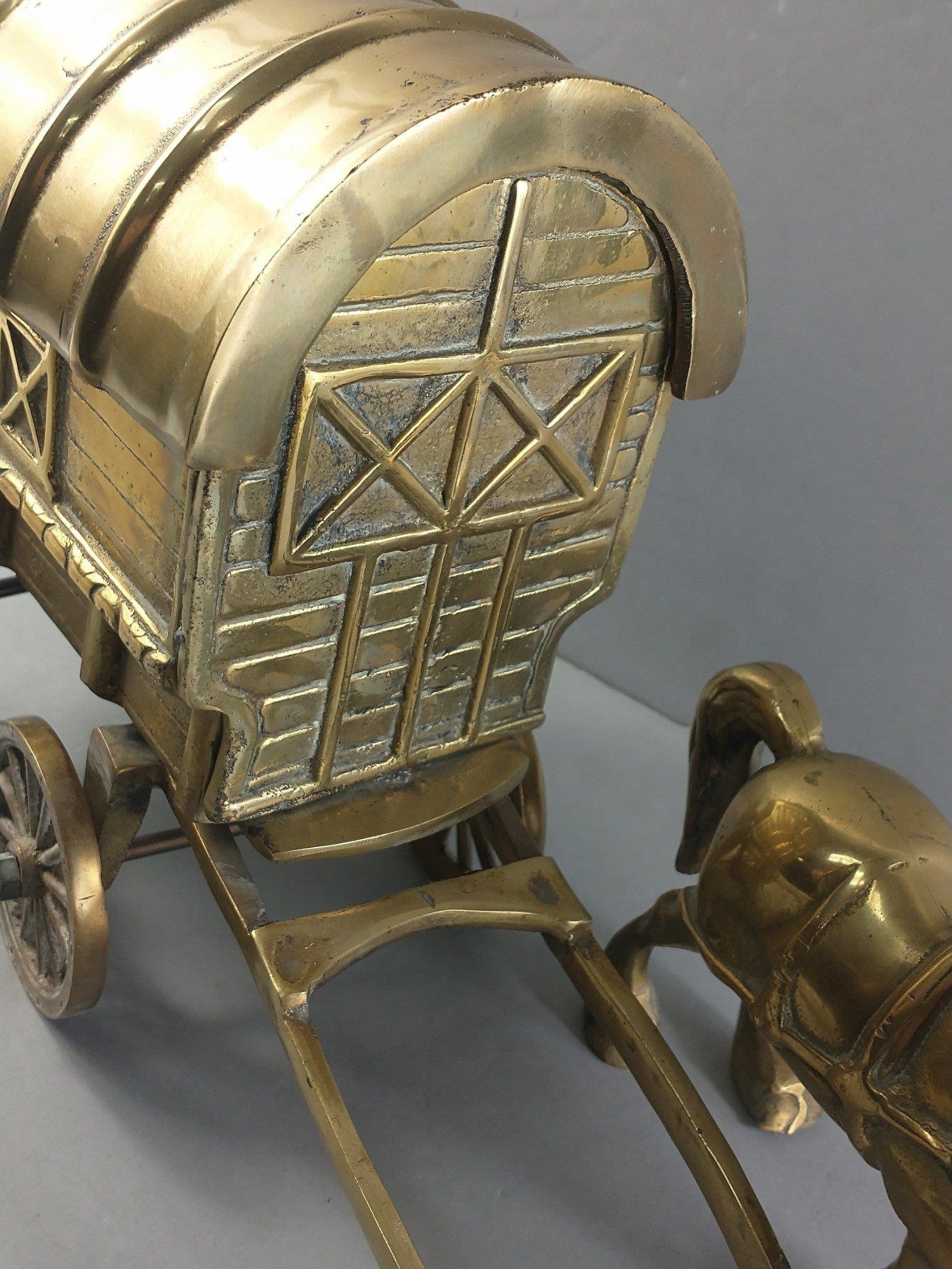 A large heavyweight vintage brass gypsy wagon and horse. Horse measures 23cm approx, wagon (with traces) approx