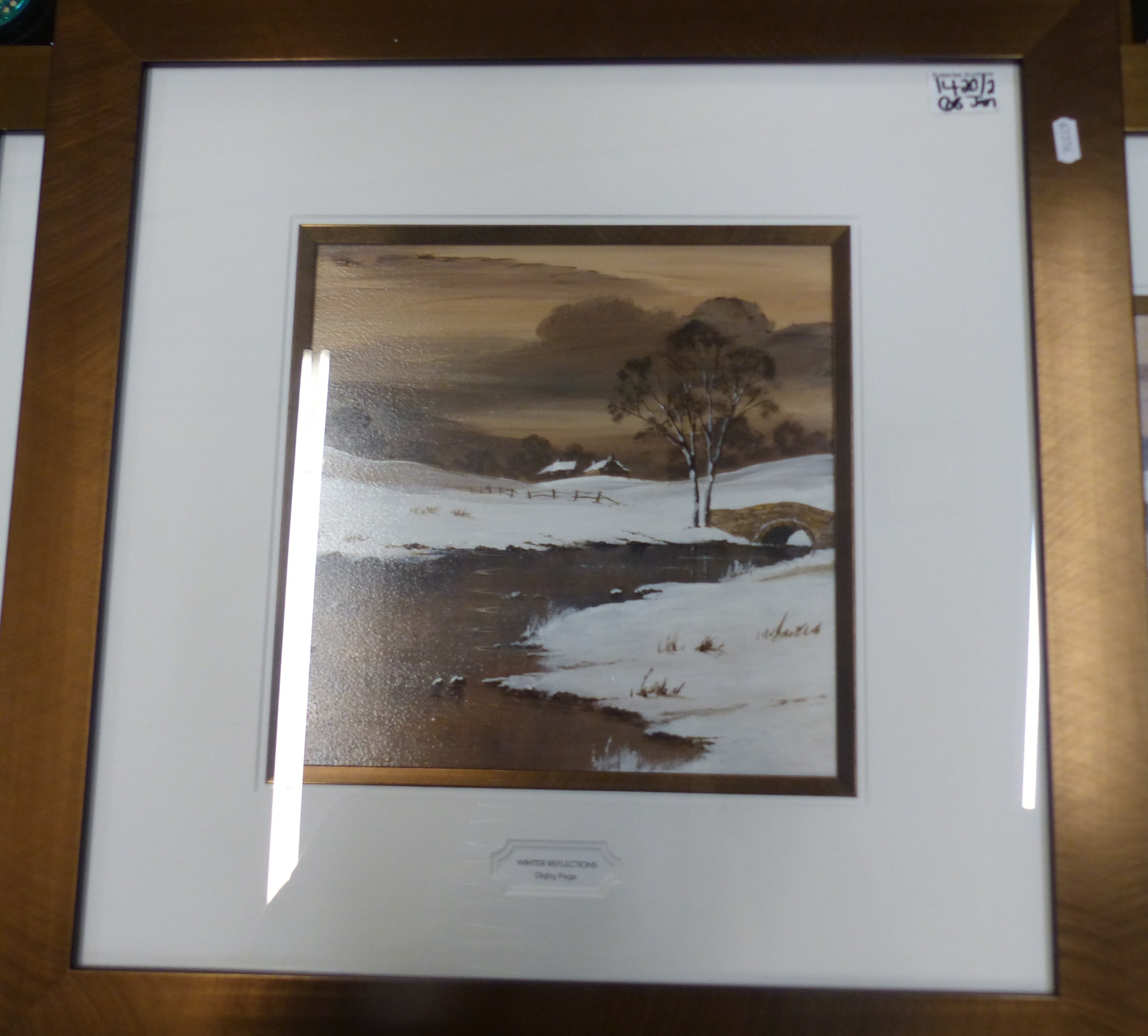 Two framed paintings of Winter Landscapes, mounted behind glass 'Winter Reflections' & First Snow Of Winter by Digby Page. Largest: 56cm x 90cm (2)