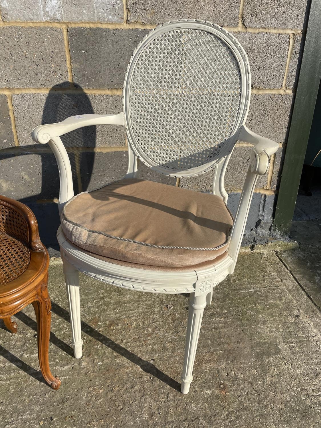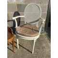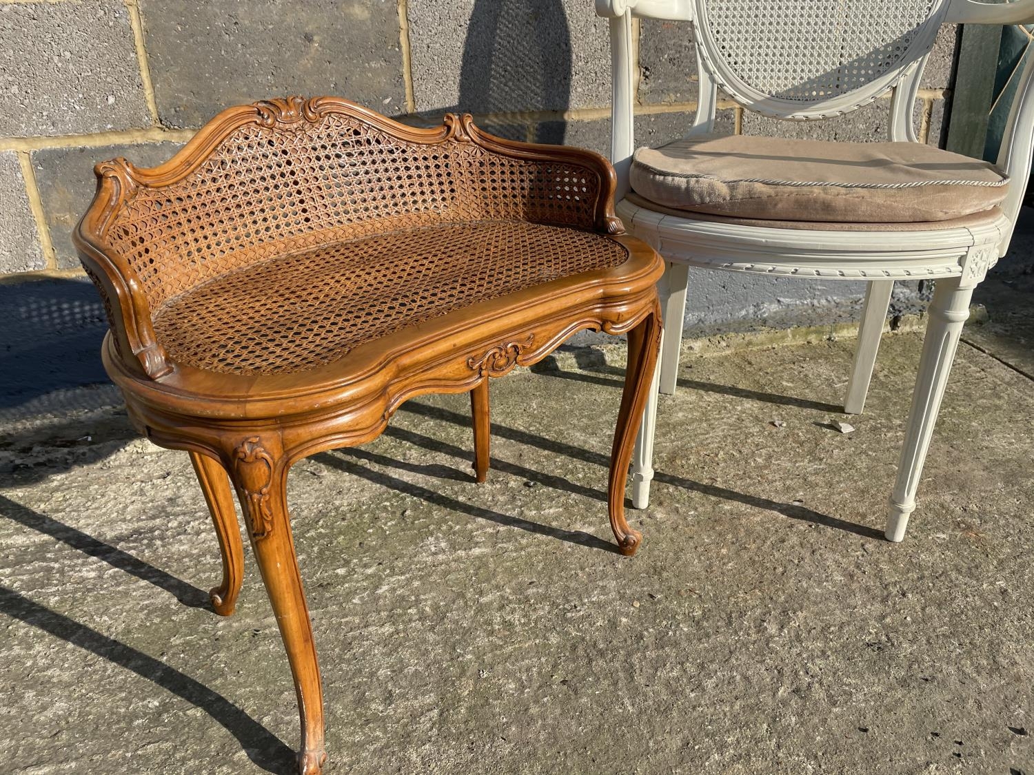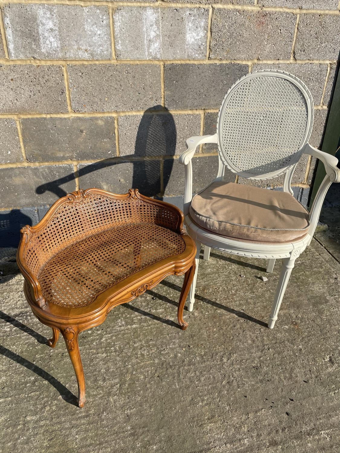 A white painted French style bedroom chair together with begere stool