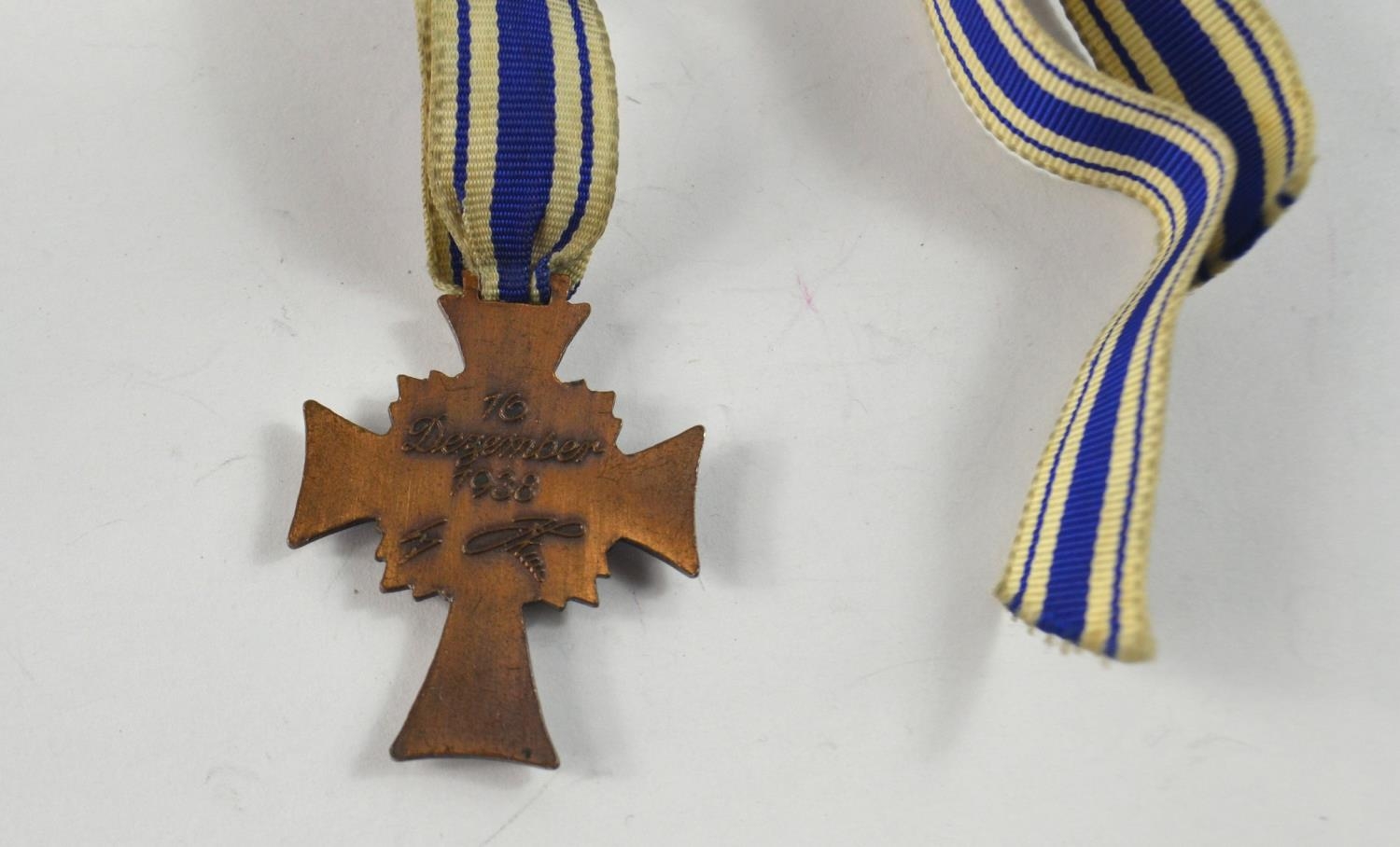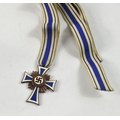 NAZI Motherhood WW2 across with its original ribbon 16th December 1938 inscribed verso