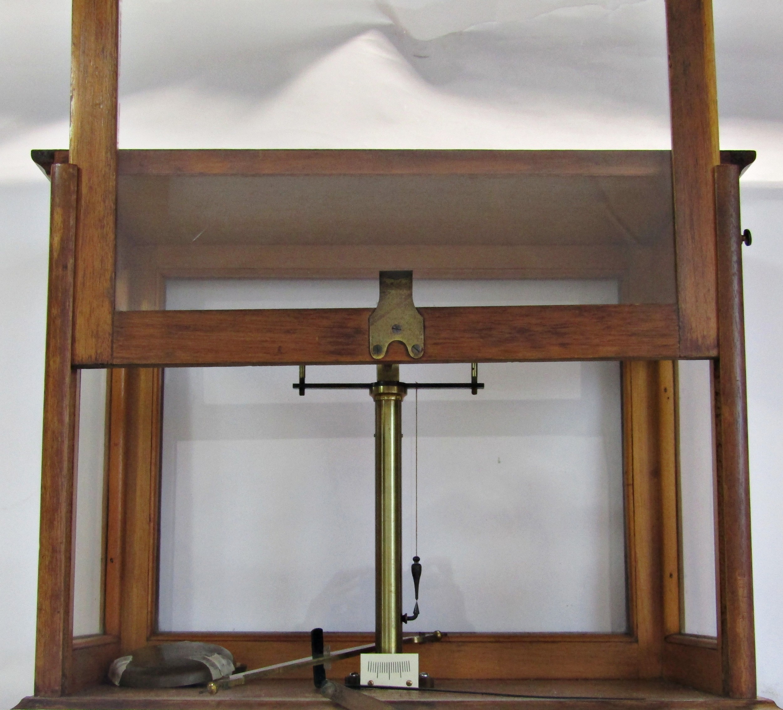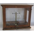 A mahogany Chemists scale with brass scale and a ratcheted glazed front door