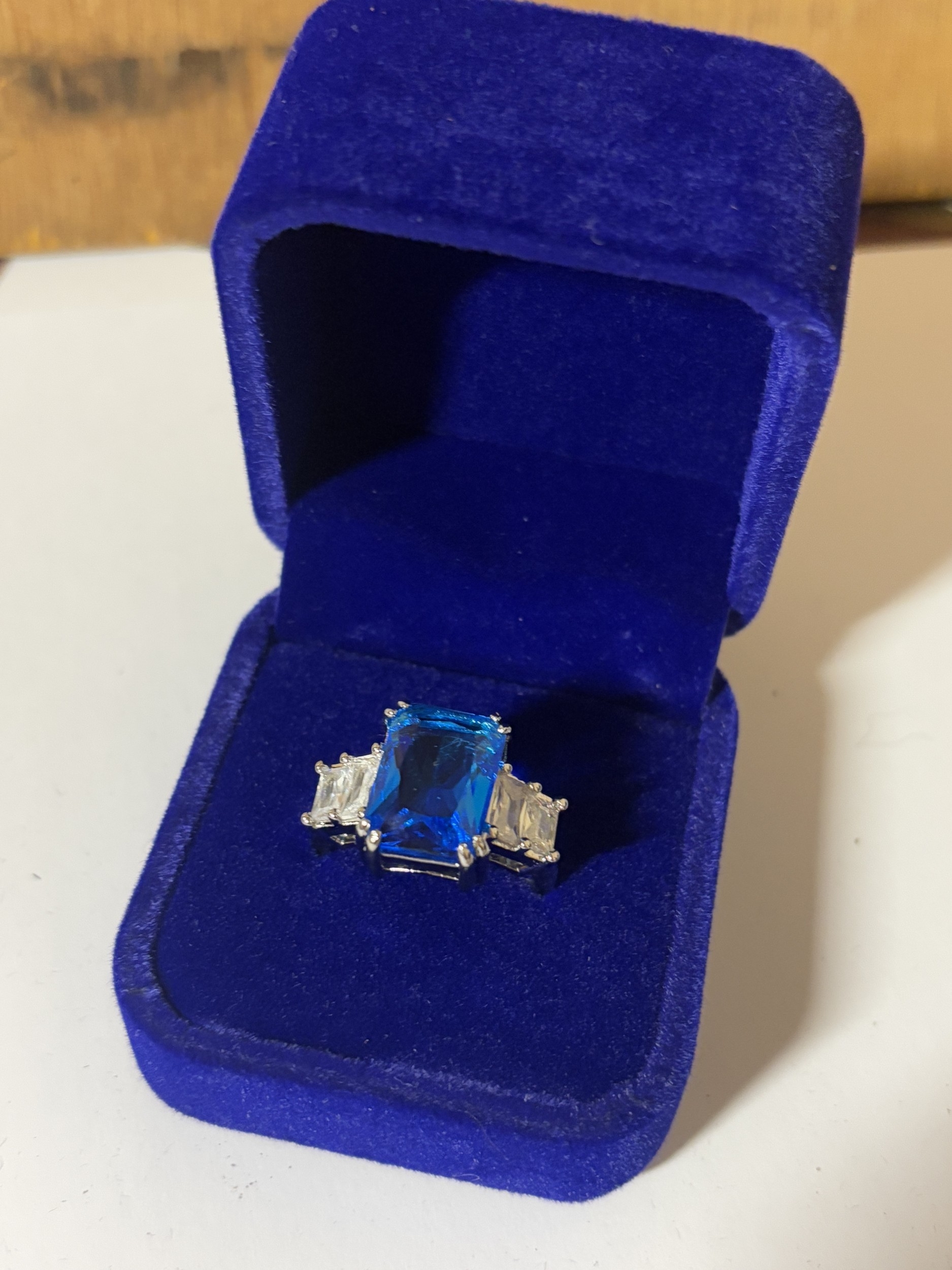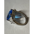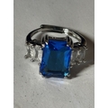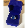 A MARKED 925 LARGE BLUESTONE RING SIZE S IN A PRESENTATION BOX