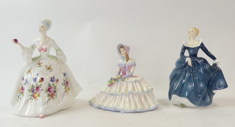 Royal Doulton Lady Figurines to include:- Fragrance HN2334, Daydreams HN1731(chip to hat noted) Diana HN2468. Tallest:-20cm (3)