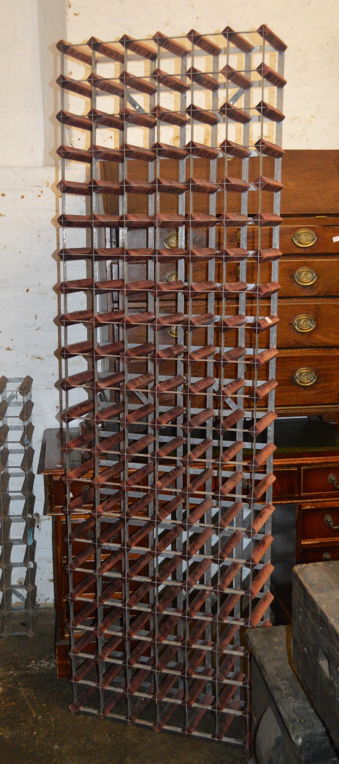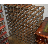 Large modern metal and wooden wine rack (126 bottles), 208 x 61.5cm