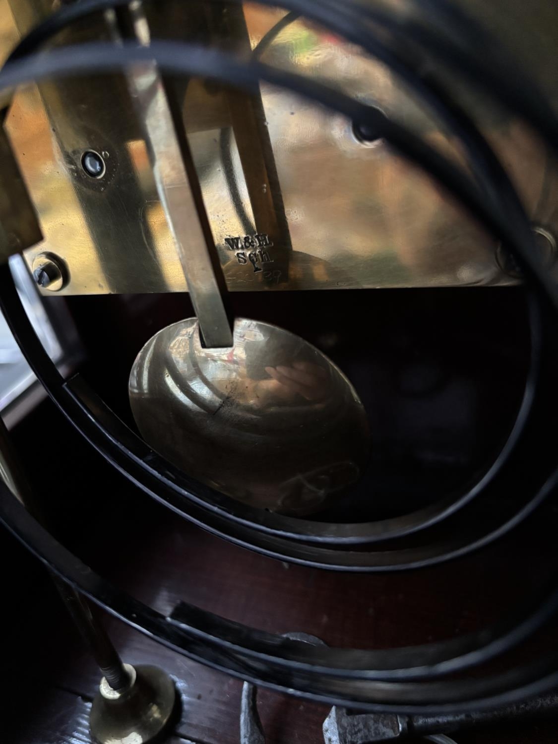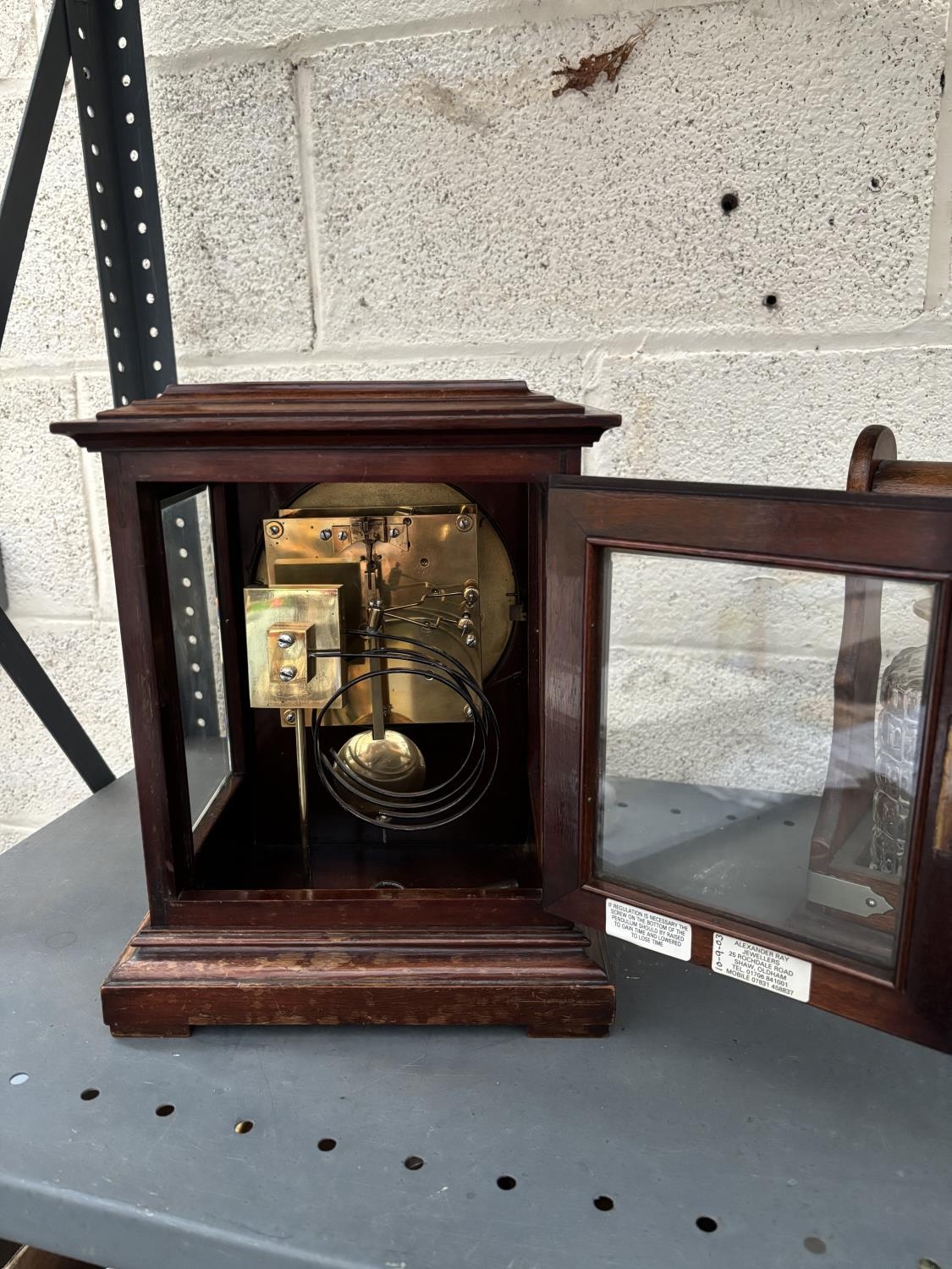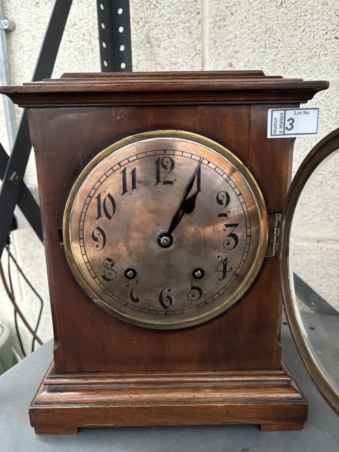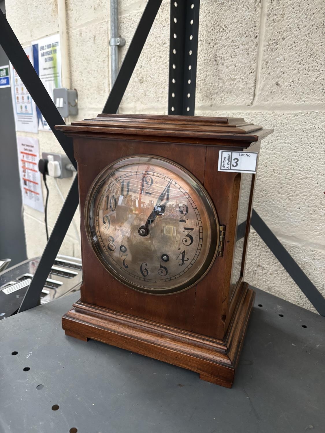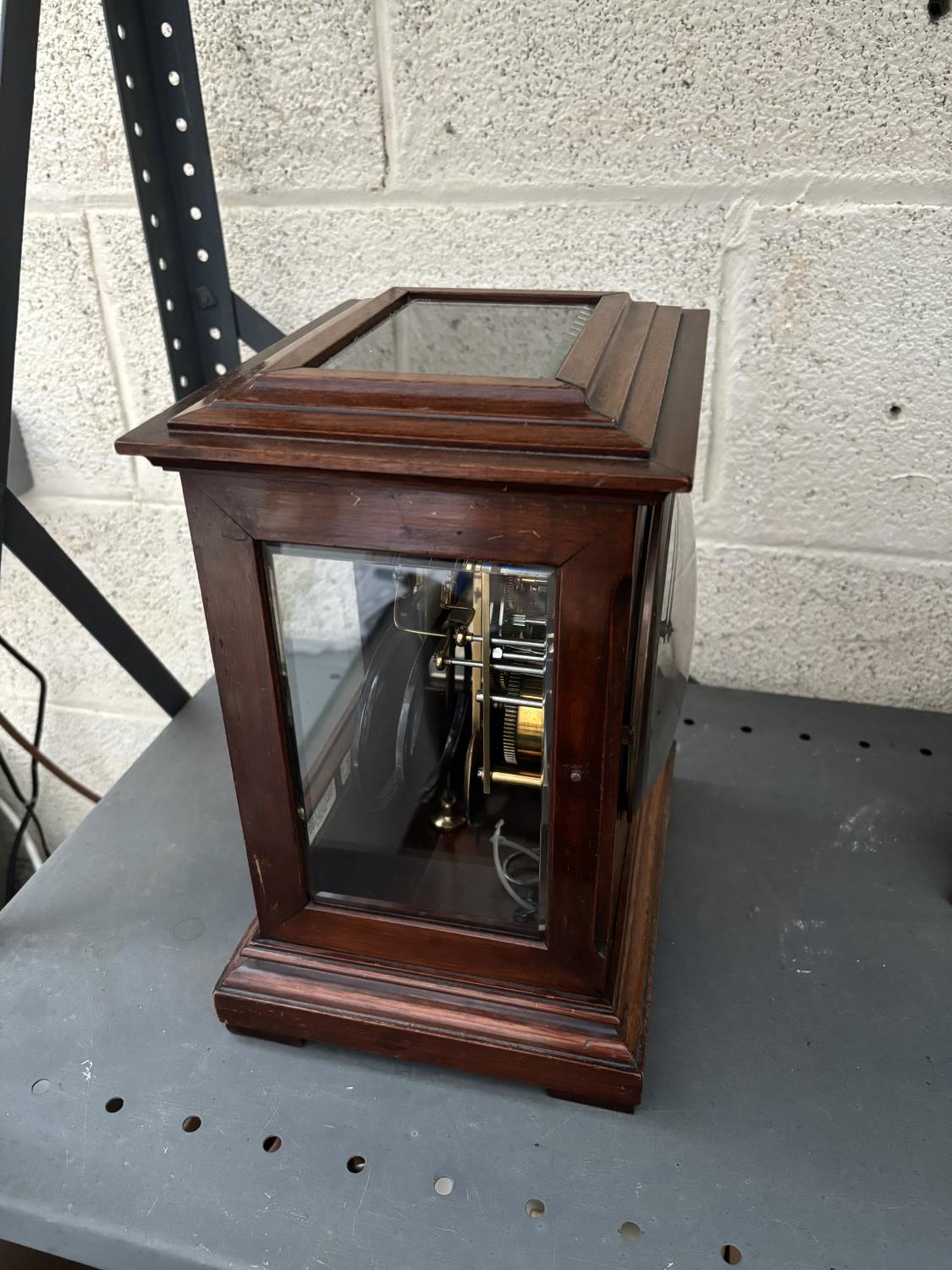 W & H Son mantle clock featuring glazed side and top panels (key included)