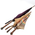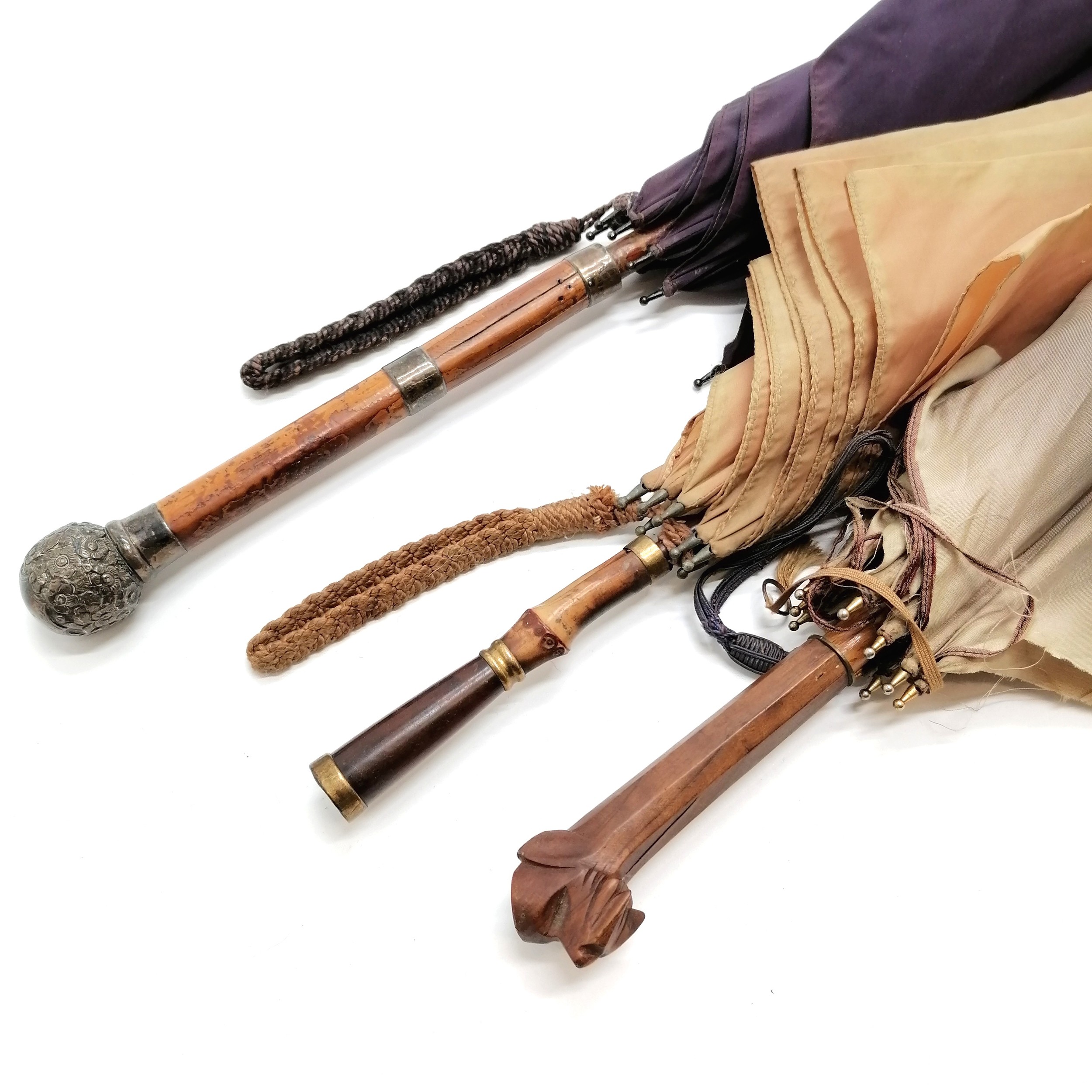 3 vintage umberellas longest 93cm has 1929 silver mounts, includes a hand carved dogs head handled umberella - all in used condition