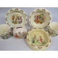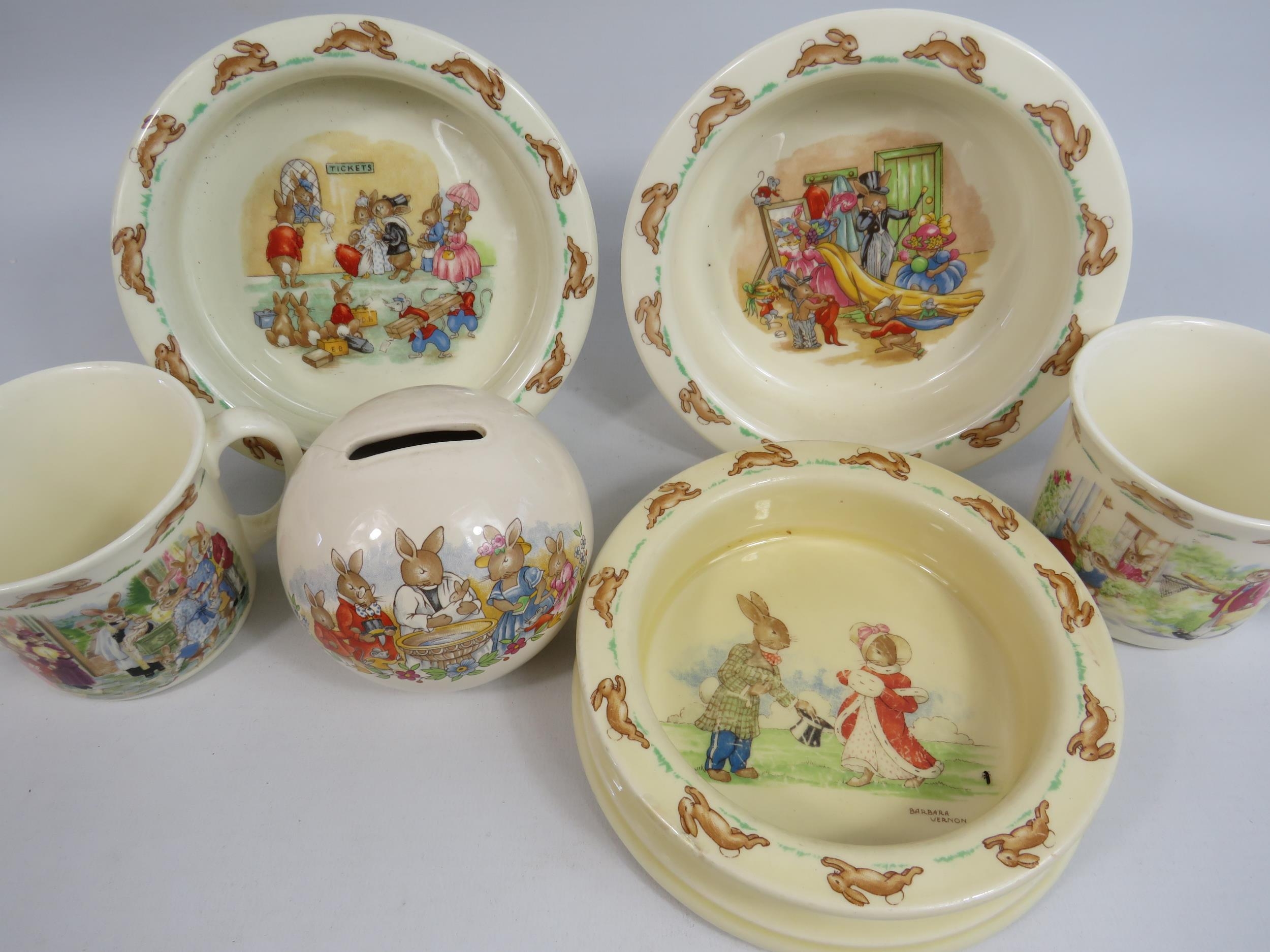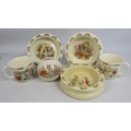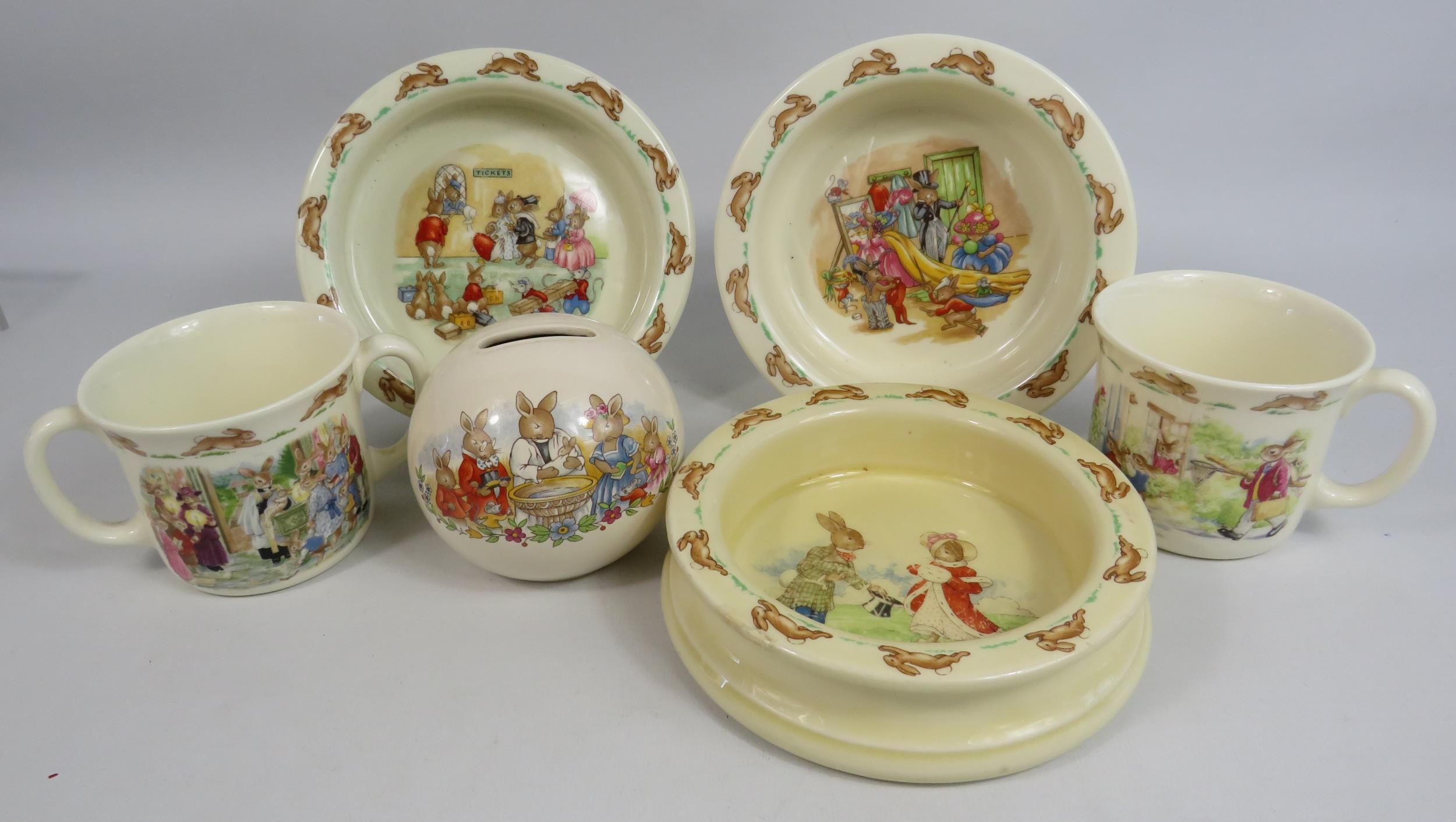 6 Pieces of Royal Doulton Bunnykins Ceramics (1 has a hairline).