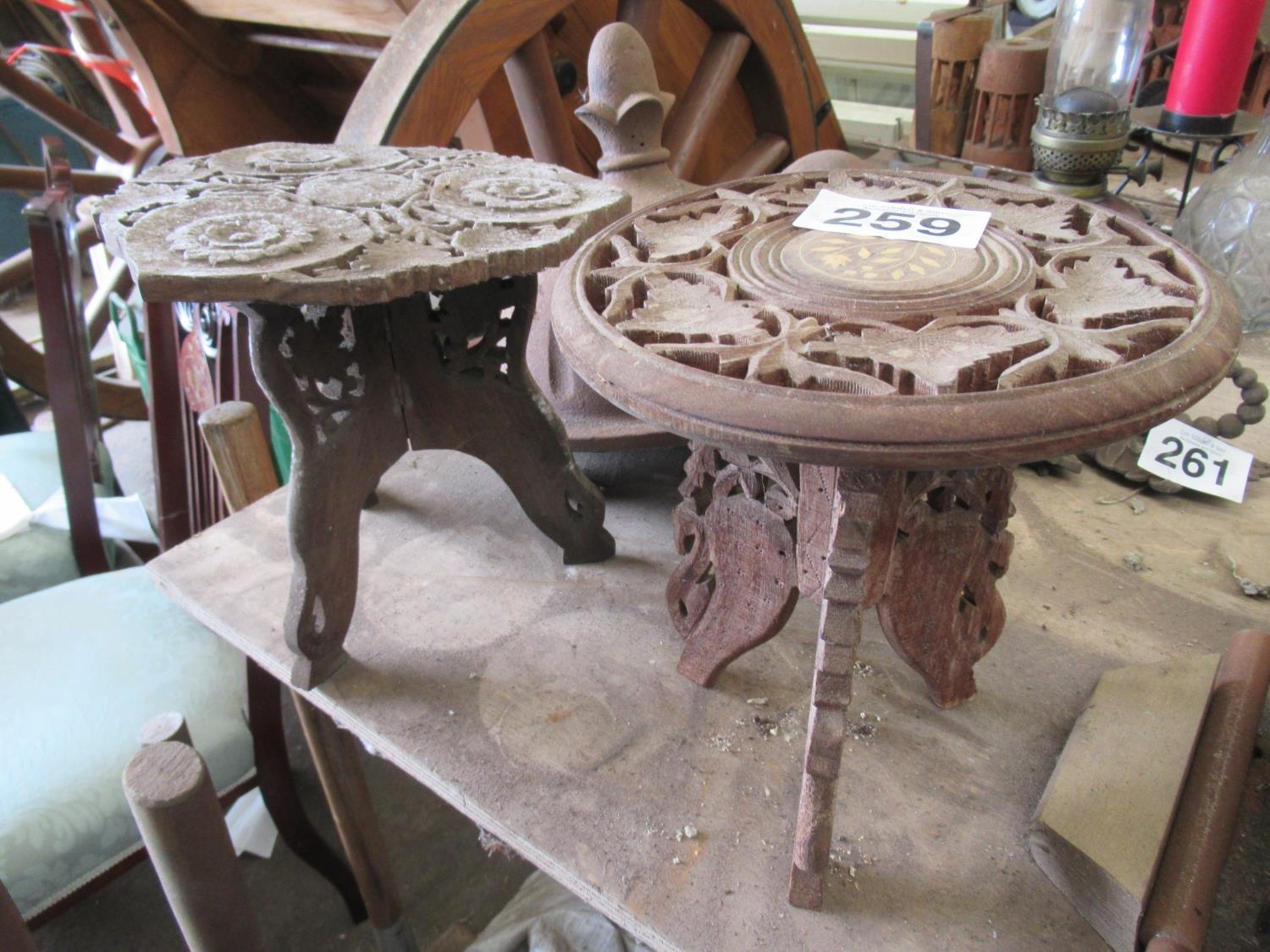 2 carved wooden plant holders.